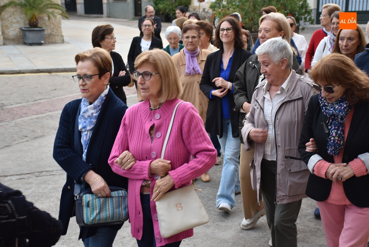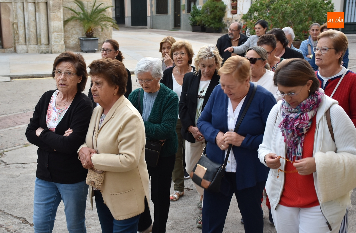 El punto de encuentro de todas esas fieles en la mañana del lunes fue la Iglesia Parroquial, donde con gran puntualidad les dio la bienvenida el párroco, Tomás Muñoz Porras, para iniciar el rezo de los Misterios Gozosos. Como en los dos años previos, el primero de los Misterios se rezó en el interior del templo, antes de abrirse la puerta principal para continuar por las calles.