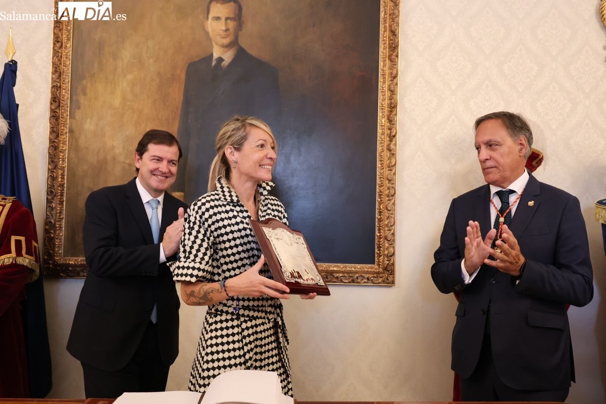 Veo a nuestros jóvenes con más oportunidades. Y a ellos, y en especial a las mujeres y a las niñas, quiero dedicarles mis últimas palabras: ¡aprovechad el privilegio de formaros en una ciudad con una tradición intelectual única y rodeados de talento investigador y científico! Tenemos la suerte de tener una comunidad científica de altísimo nivel y de referencia mundial. Os animo a mantener la curiosidad y la pasión por aprender, a no tener miedo a equivocaros y a buscar siempre nuevos retos. Salamanca os ofrece ahora más que nunca el entorno y los recursos para crecer, para que nunca dejéis de soñar en grande, porque el verdadero avance comienza con la valentía de dar el primer paso y creer en sí mismo.