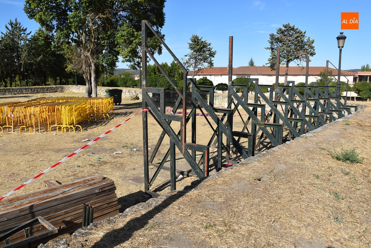 Por otro lado, en el borde superior del foso ha comenzado el montaje de una primera grada desde la cual se podrán seguir los eventos que albergará el foso durante la Feria (el mencionado Concurso de Apartado de la Vaca, el Concurso de Doma Vaquera, o las exhibiciones de la noche del viernes y de la tarde del domingo).
