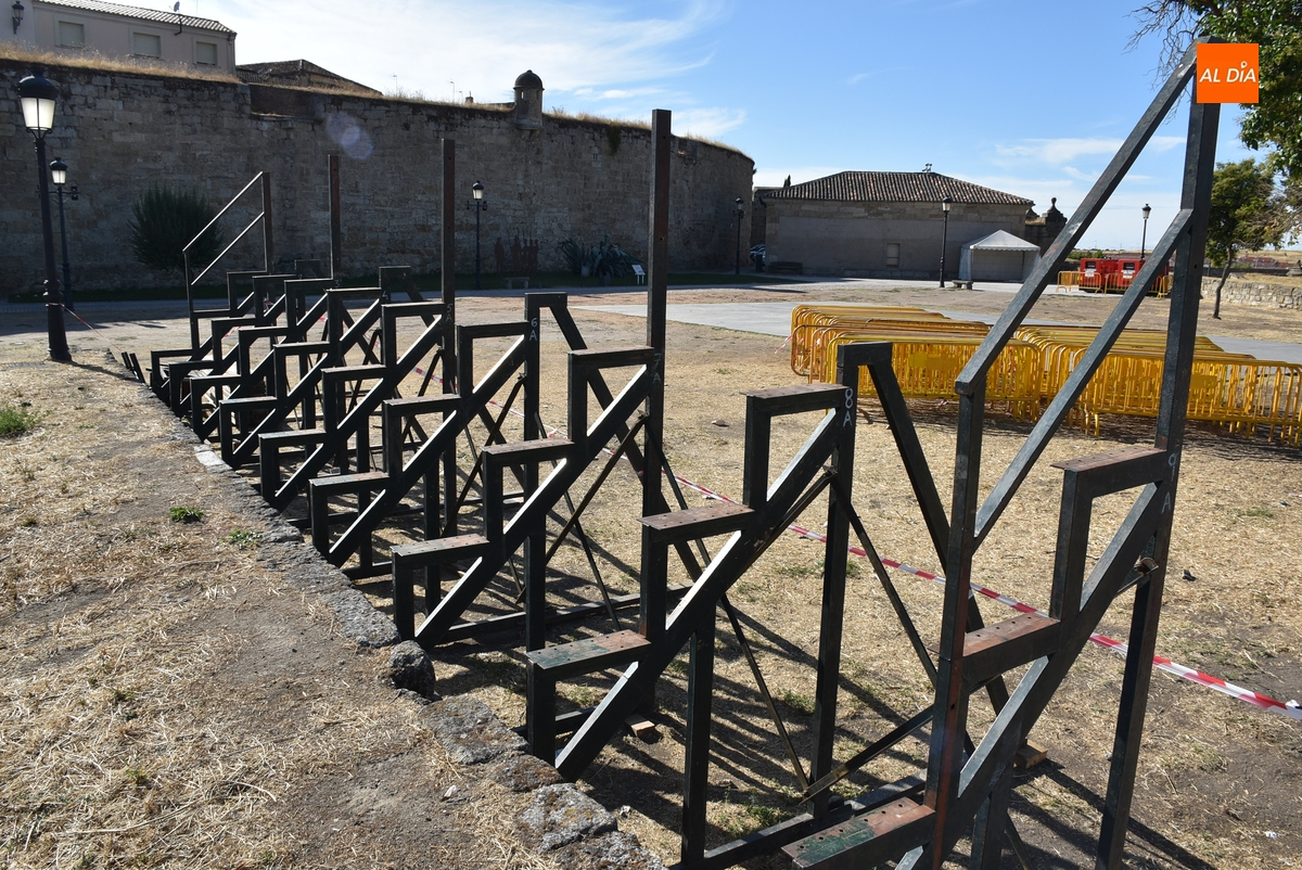 Varias agujas han sido llevadas hasta el foso y ha comenzado el montaje de la primera grada