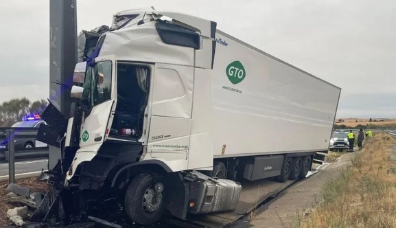 El siniestro se ha producido en el kilómetro 346 de la citada vía, en sentido Gijón, cuando, por causas que se desconocen, un camión se ha salido de la calzada y ha terminado colisionando contra un poste.