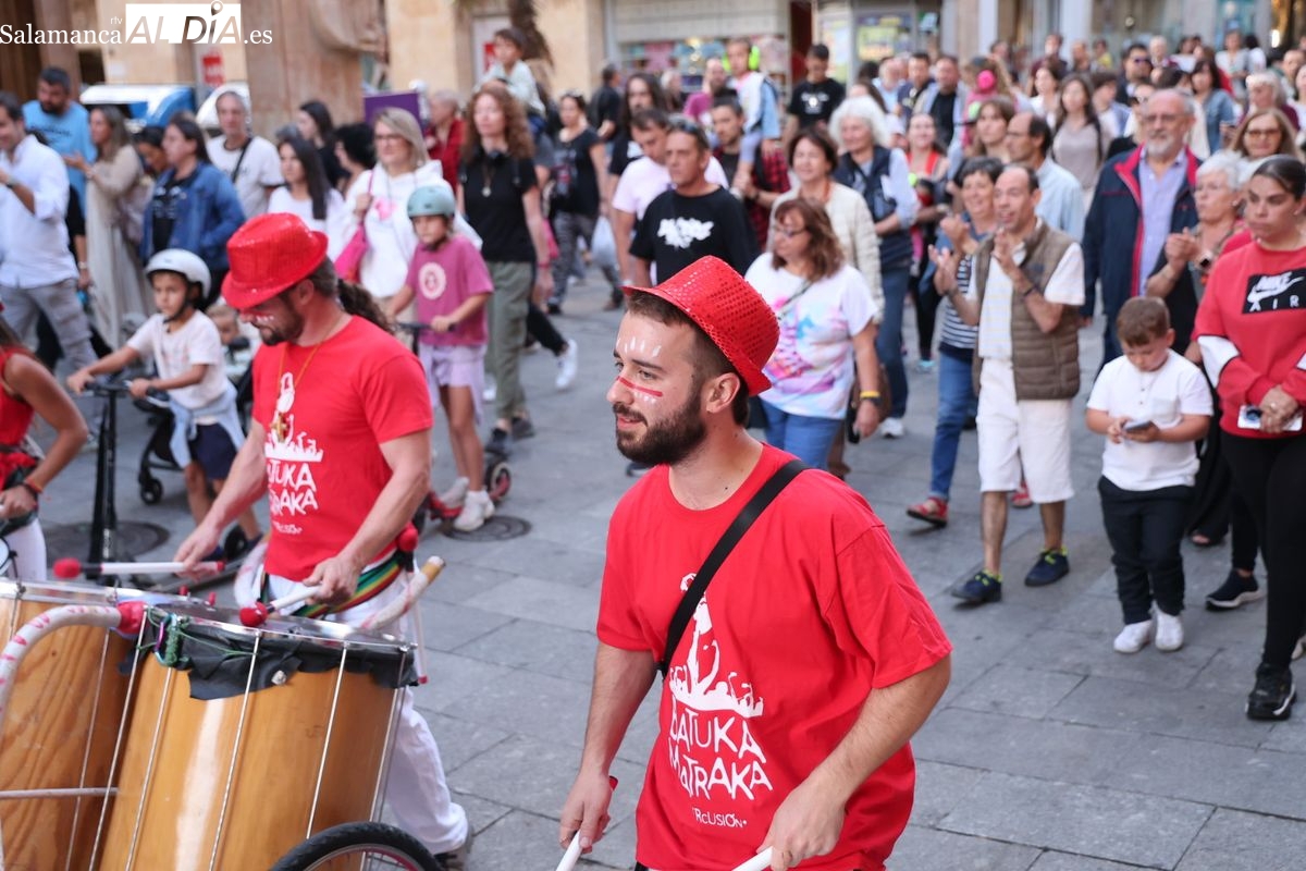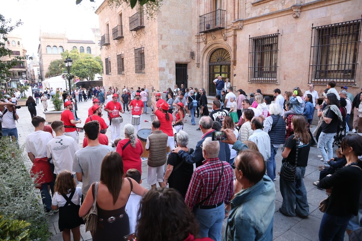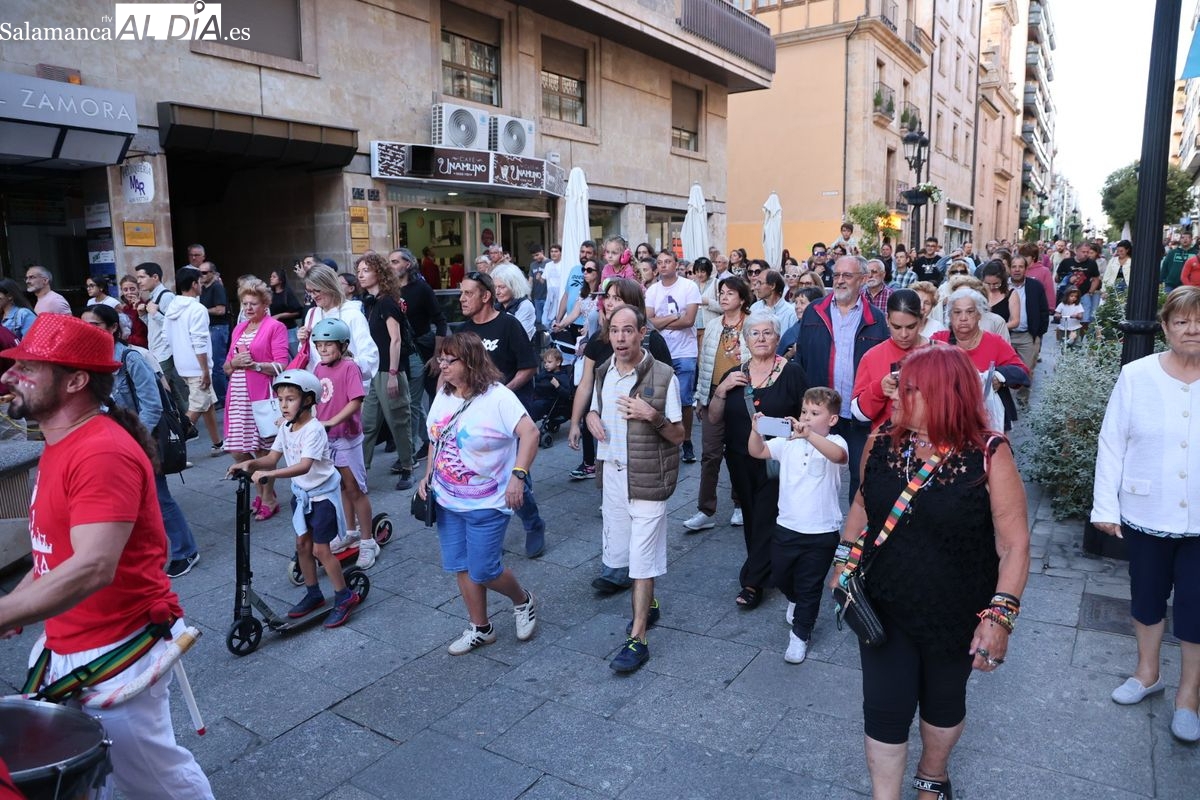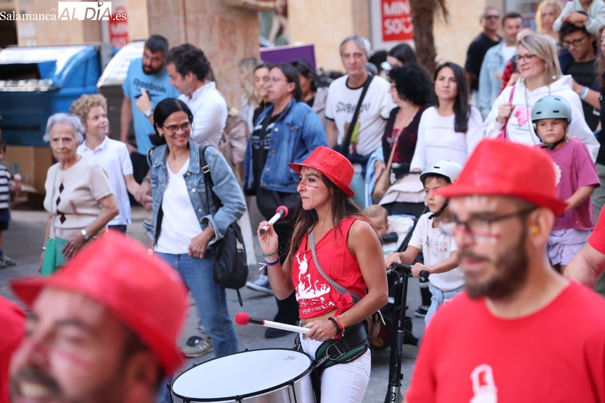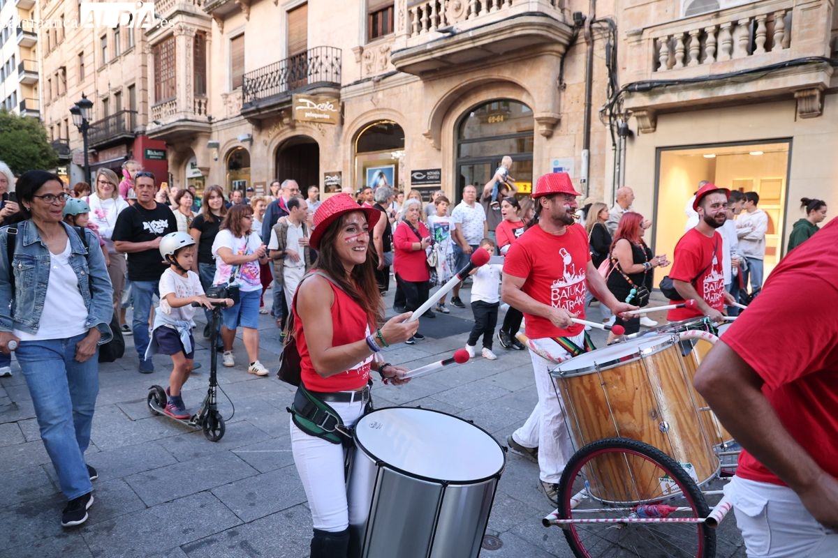 El ritmo y la energía de los tambores ha tomado las calles del centro de Salamanca este martes. La batucada Batukamatraka ha protagonizado un vibrante pasacalles con un recorrido que partirá desde la plaza del Liceo para continuar por la calle Toro, la calle Zamora y la Plaza Mayor, finalizando de nuevo en el punto de origen.