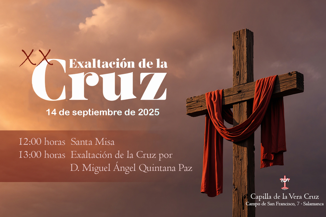 Posteriormente, a las 13:00 horas, el hermano cofrade Miguel Ángel Quintana Paz pronunciará la XXª Exaltación de la Cruz. Quintana Paz, doctor en Filosofía por la Universidad de Salamanca y actual director académico del Instituto Superior de Sociología, Economía y Política en Madrid, será presentado por el periodista Josué Cárdenas.