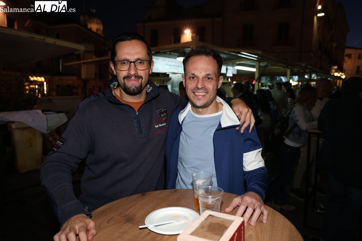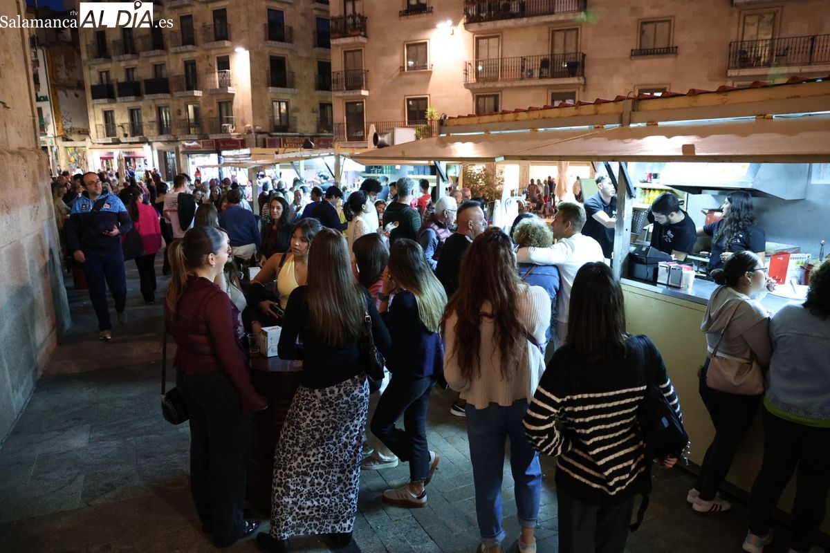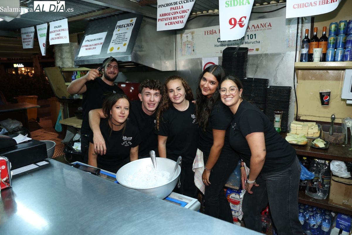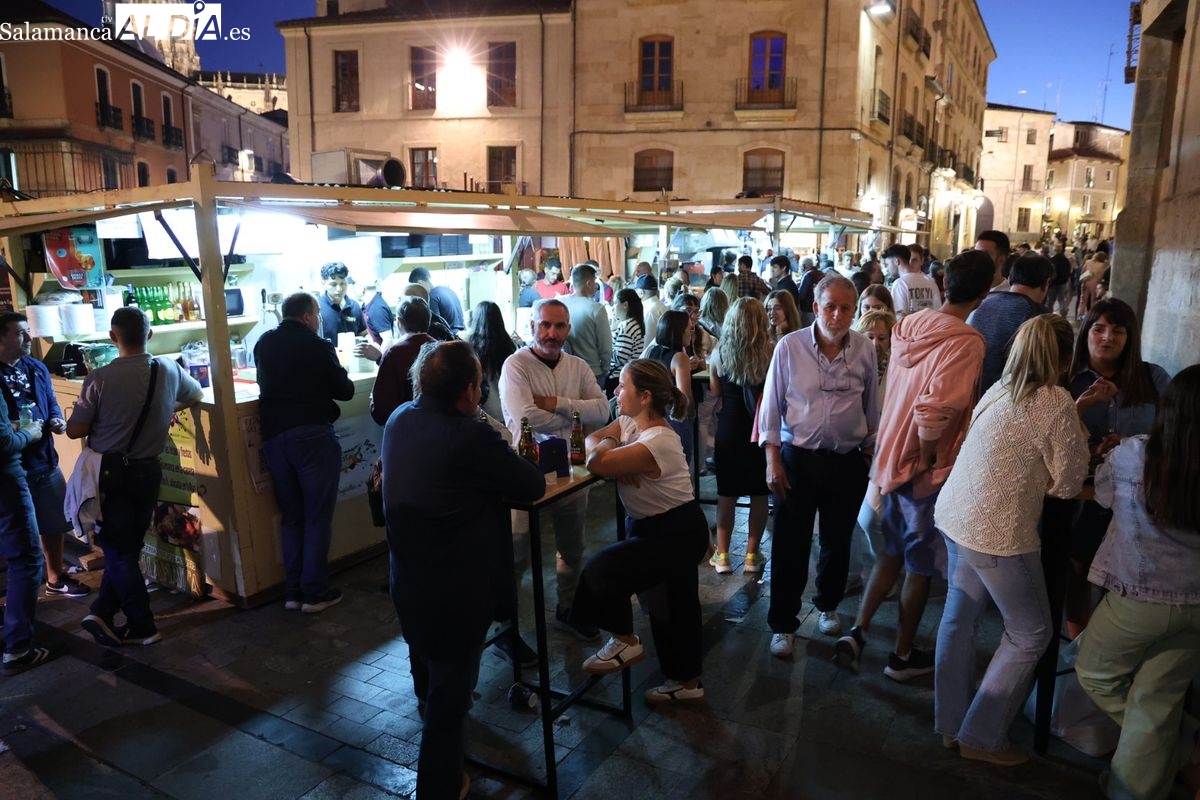 La Rúa, una de las zonas que cuenta con casetas de diversos establecimientos por la Fería de Día, acoge buen ambiente de salmantinos y visitantes que disfrutan de esta gran tradición. Como cada año, el pincho de feria acompañado de una bebida por un precio cerrado de 3,50 euros.