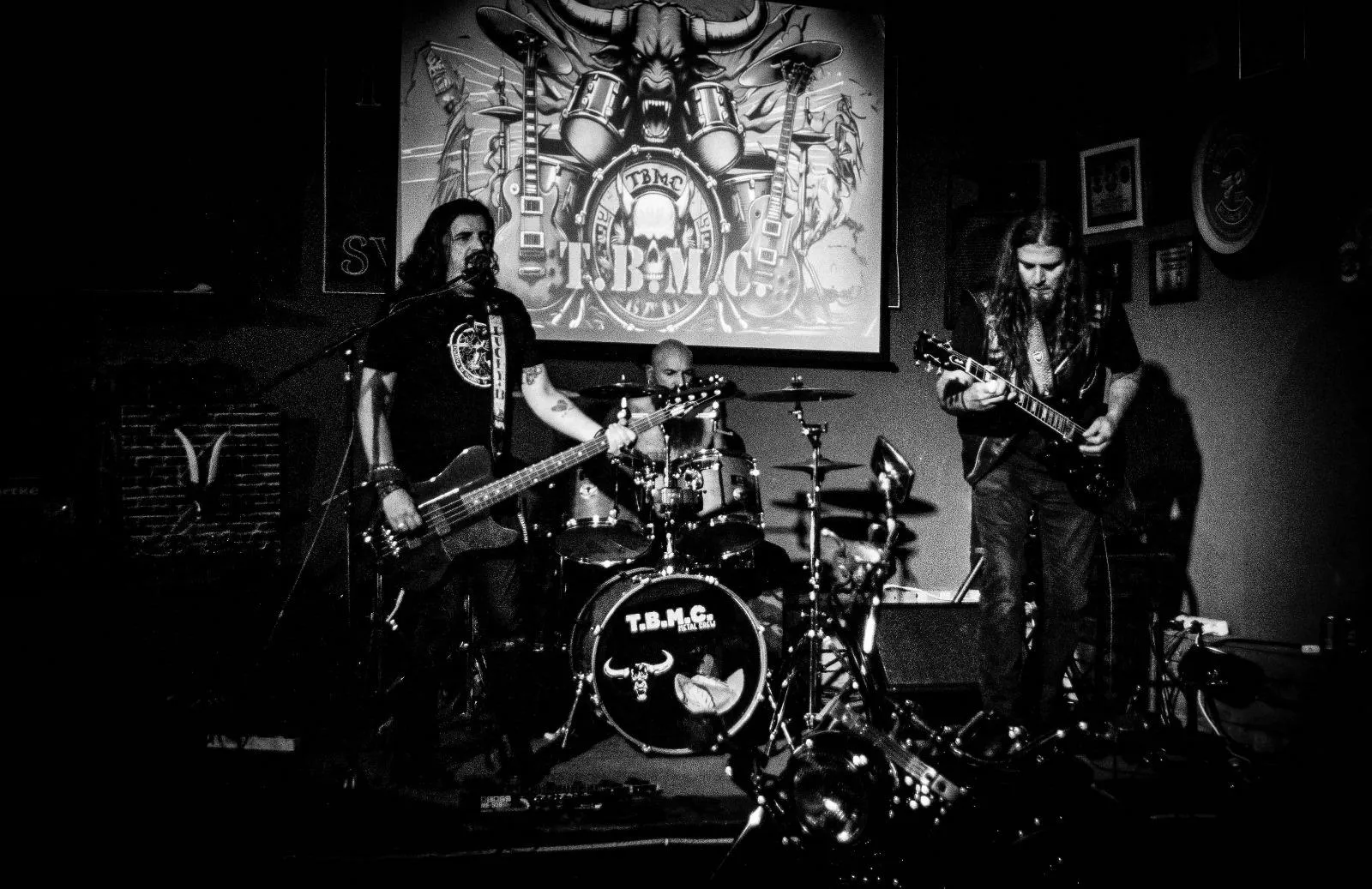 TBMC surgió hace un par de años como una idea sencilla entre algunos miembros de Toros Bravos MC. Al principio no era más que juntarnos de vez en cuando para ensayar, disfrutar de la música y rendir tributo a los artistas que admiramos. Detrás del nombre también hay un guiño: TBMC responde a Talegazo Brutal Metal Crew, una manera de hacer coincidir las siglas con las de nuestro club, que fue el lugar donde nació el proyecto y donde seguimos ensayando hoy en día.