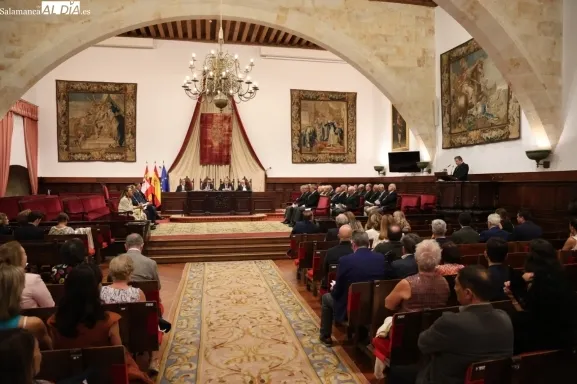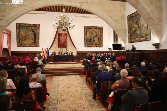 El Paraninfo del Edificio de las Escuelas Mayores de la Universidad de Salamanca fue el escenario, en la tarde de este jueves, del solemne acto de ingreso del profesor titular Juan Francisco Blanco Blanco en la Real Academia de Medicina de Salamanca. La ceremonia, que dio comienzo a las 19:00 horas, estuvo presidida por el rector de la USAL, Juan Manuel Corchado.