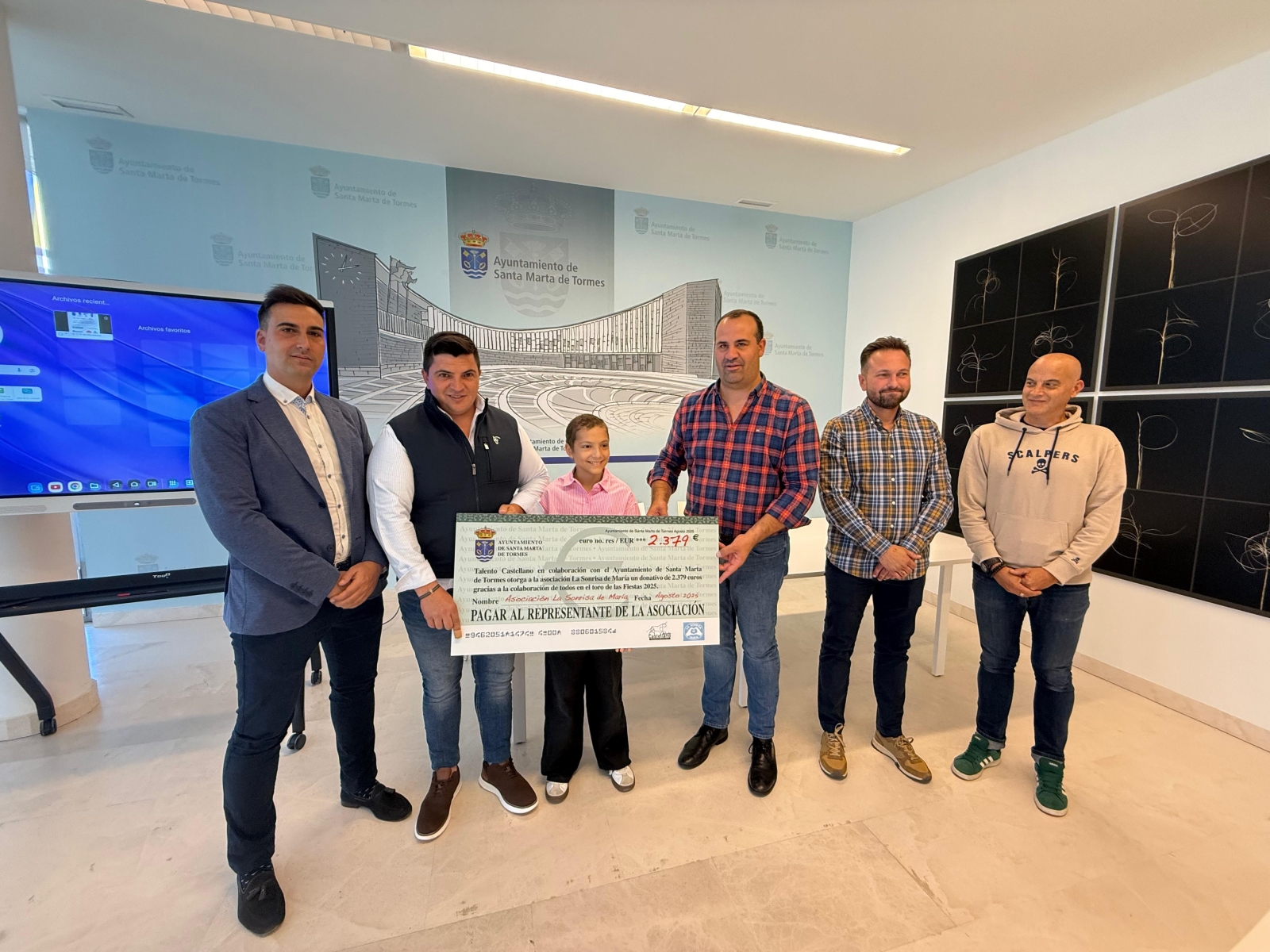 El Ayuntamiento de Santa Marta de Tormes ha formalizado la entrega de la recaudación obtenida durante el evento benéfico 'El Toro de las Fiestas'. La cantidad total, que asciende a 2.379 euros, ha sido destinada íntegramente a la Asociación La Sonrisa de María.