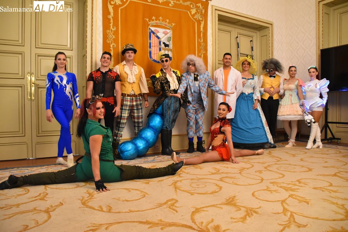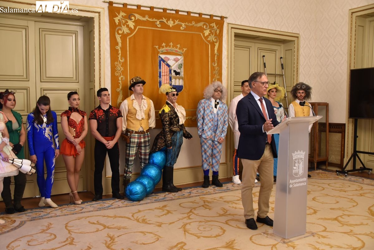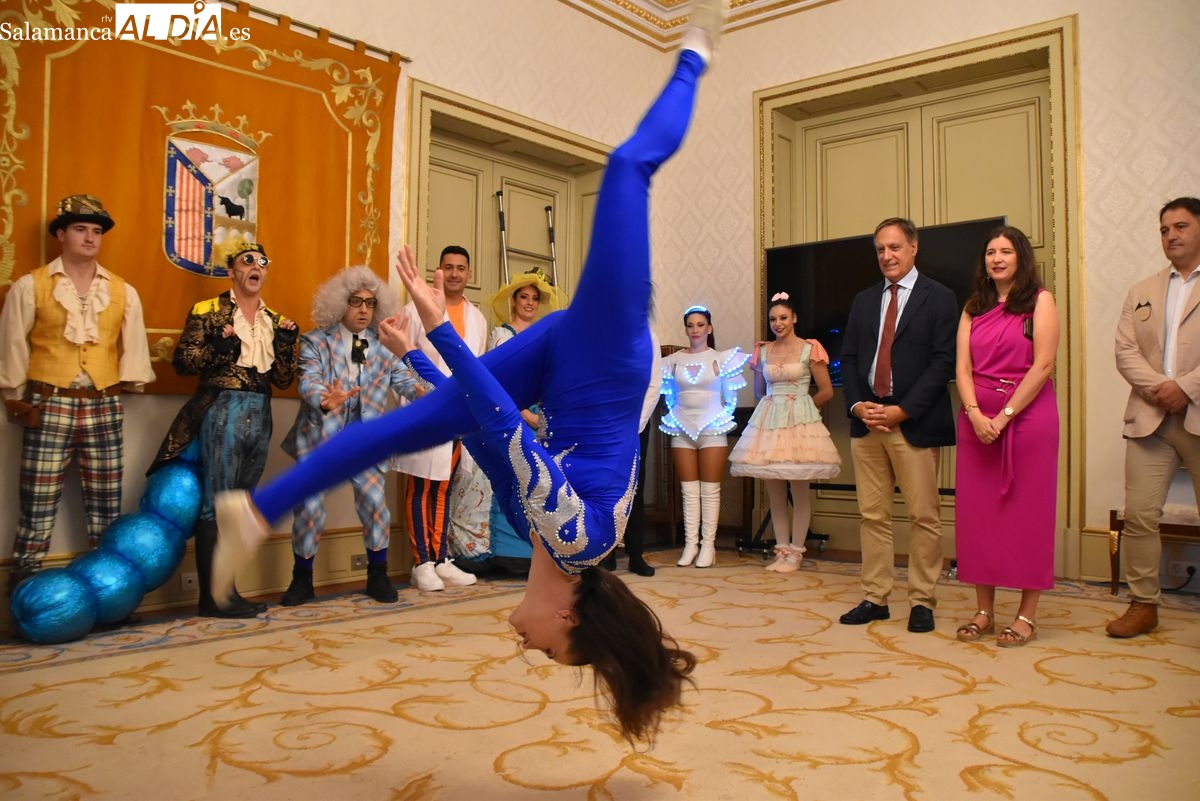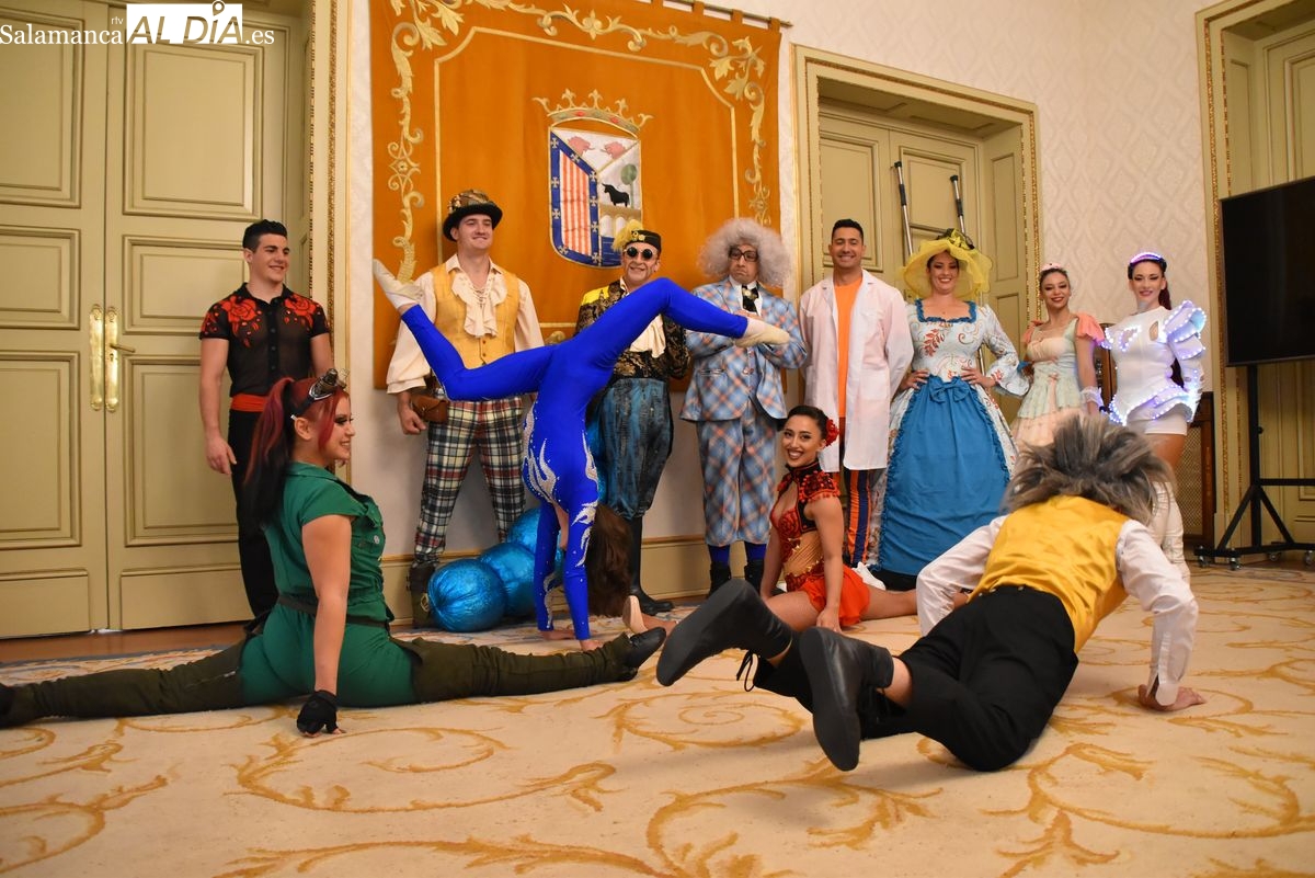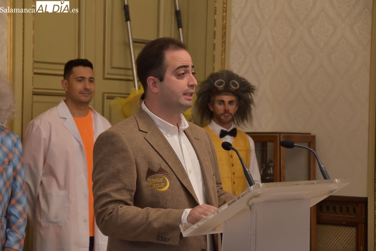 La presentación del evento contó con la presencia del alcalde de Salamanca, Carlos García Carbayo; el director gerente de Stellar Circus, Ramón Sacristán; y el director técnico, José Ángel García, quienes estuvieron acompañados por artistas del espectáculo y representantes de las asociaciones beneficiarias.