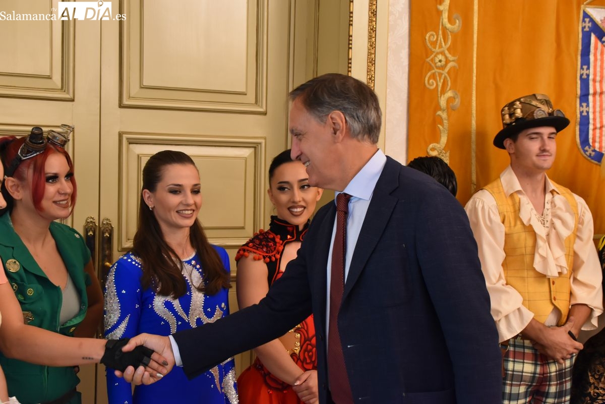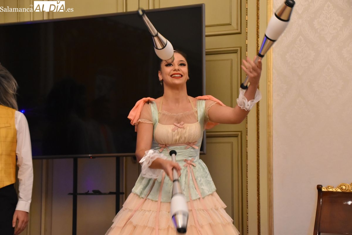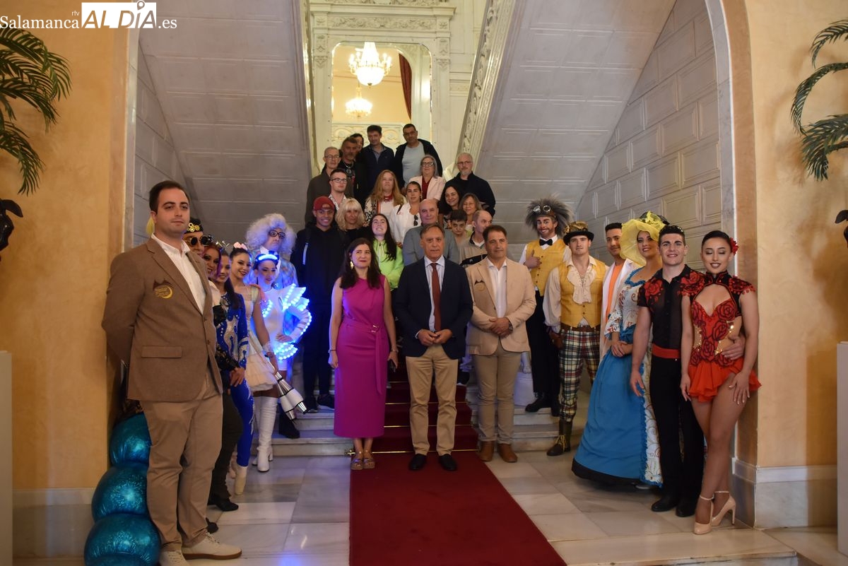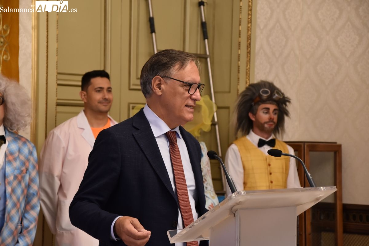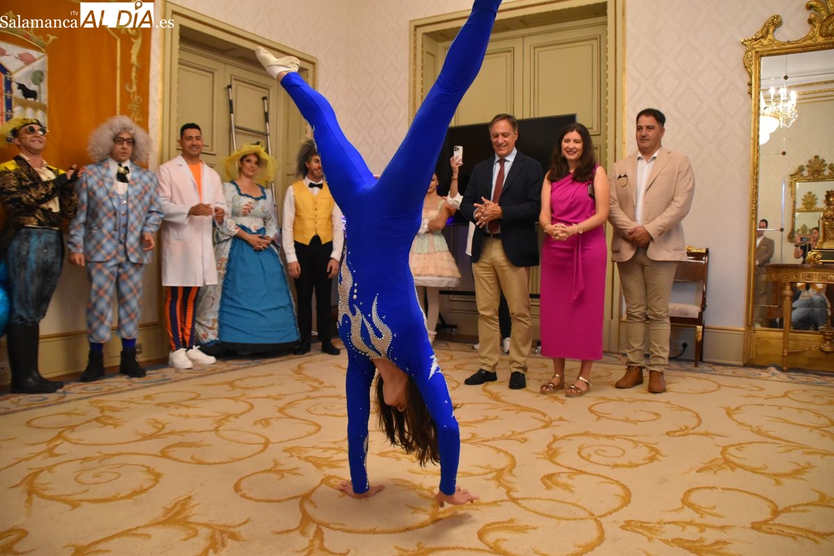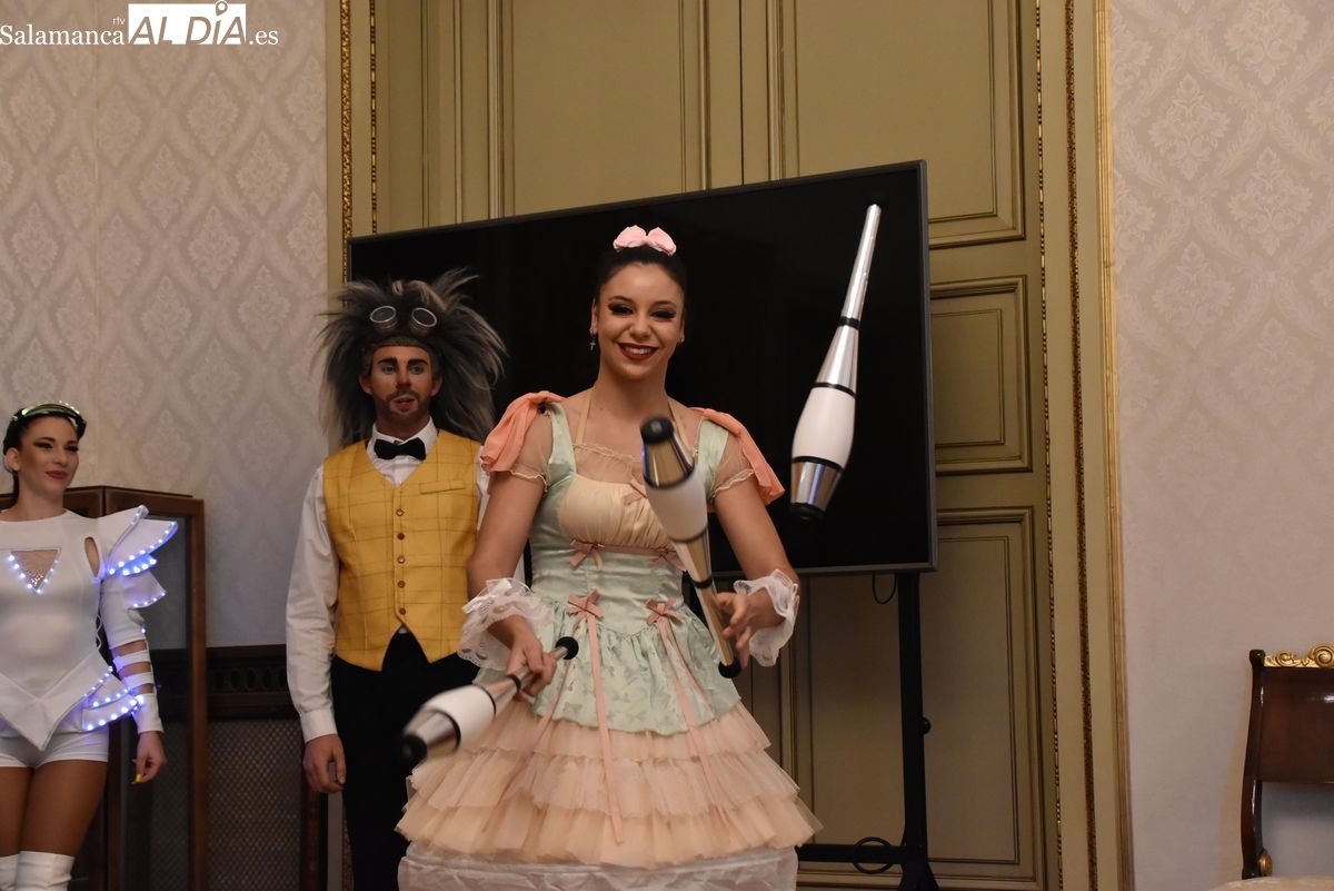 La presentación del evento contó con la presencia del alcalde de Salamanca, Carlos García Carbayo; el director gerente de Stellar Circus, Ramón Sacristán; y el director técnico, José Ángel García, quienes estuvieron acompañados por artistas del espectáculo y representantes de las asociaciones beneficiarias.