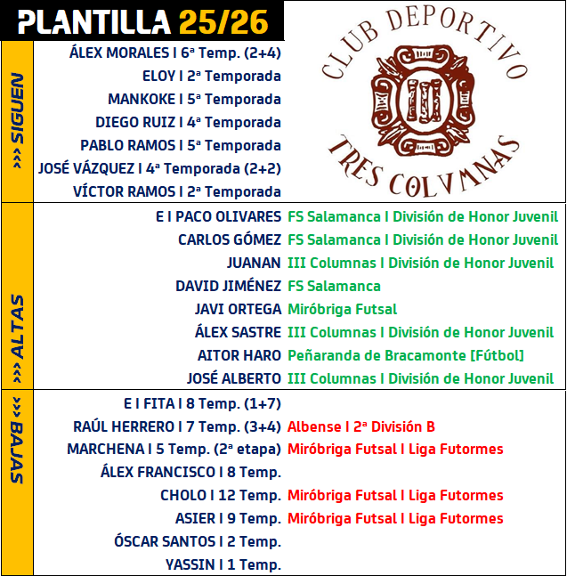 Ese III Columnas de la temporada pasada se parece ‘poco’ al de este nuevo curso, ya que durante el verano ha experimentado una profunda revolución, comenzando por el banquillo, donde Rafael Boyero ‘Fita’ deja paso tras siete temporadas a Paco Olivares, responsable durante los tres últimos años del Juvenil de División de Honor del FS Salamanca.