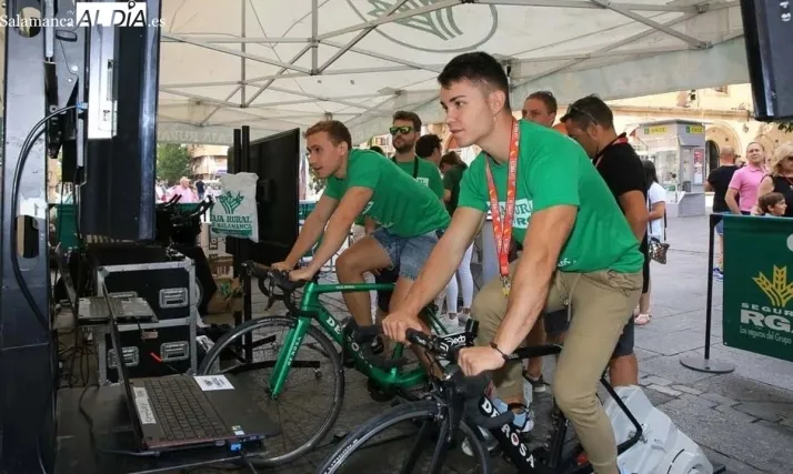Caja Rural instalará bicicletas solidarias en la Plaza Mayor de Guijuelo con motivo de la llegada de La Vuelta. La entidad donará 2 euros a la Asociación Española Contra el Cáncer por cada kilómetro que los participantes pedaleen a partir de las 16:00 horas de este viernes.
