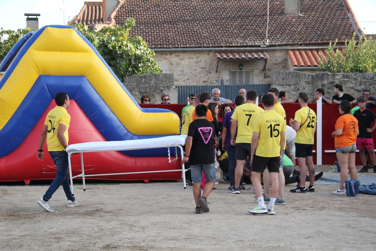 Seis equipos se enfrentaron en las distintas pruebas de habilidad y humor, pero la tarde dejó un buen susto cuando uno de los participantes del equipo amarillo sufrió una caída. Tras quejarse de un fuerte dolor en la espalda, fue atendido y posteriormente traslado en ambulancia al Centro de Salud de Lumbrales para una valoración más exhaustiva. Afortunadamente, el incidente no frenó el excelente ambiente festivo y el buen humor que reinó durante toda la competición.
