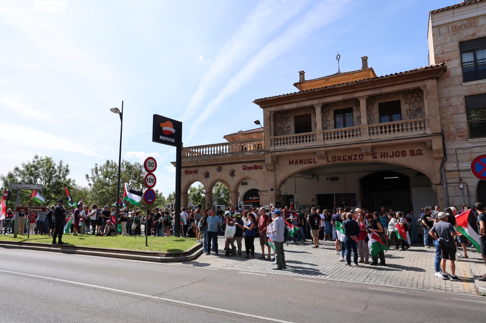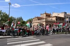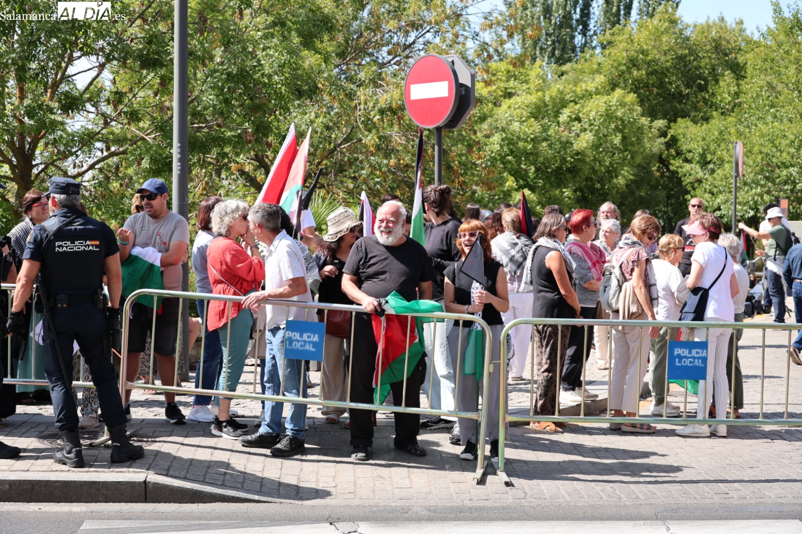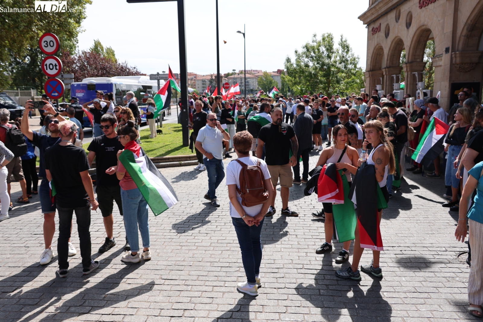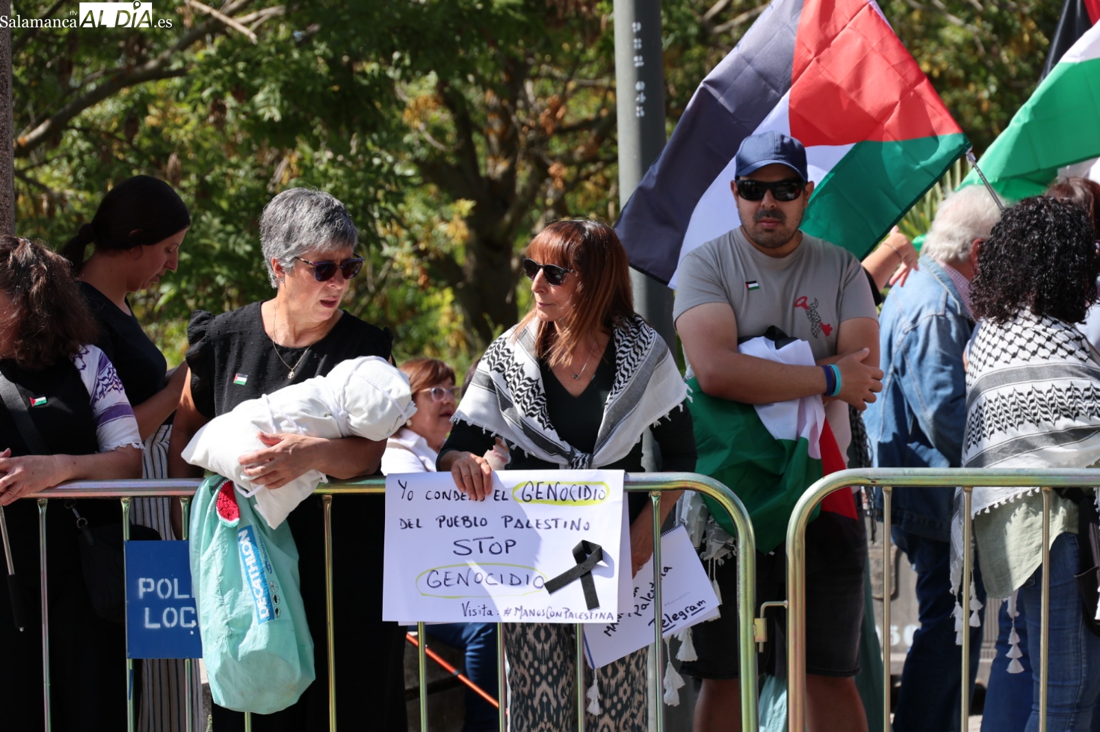 Un grupo de manifestantes pro-Palestina se ha concentrado en la calle Reyes Católicos, a la altura de la gasolinera, a la espera del paso del pelotón de La Vuelta Ciclista a España 2025. La protesta se ha desarrollado en un ambiente reivindicativo, bajo la mirada de un importante dispositivo de seguridad que se ha desplegado para garantizar tanto la seguridad de los ciclistas como la de los asistentes.