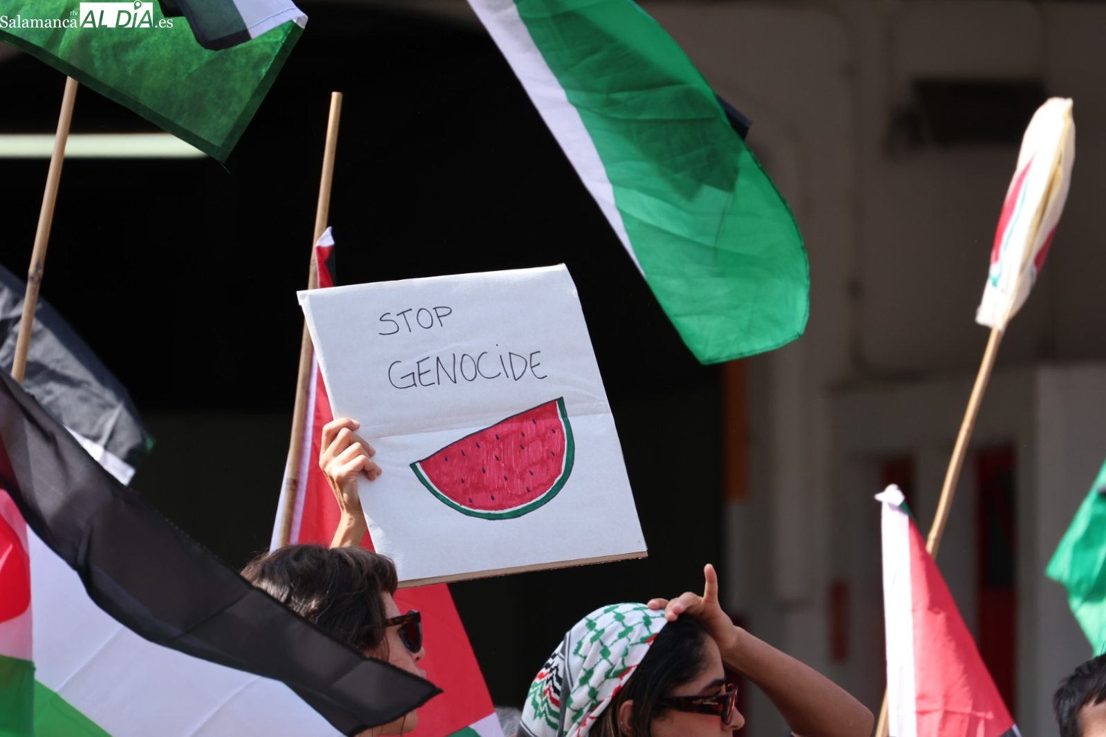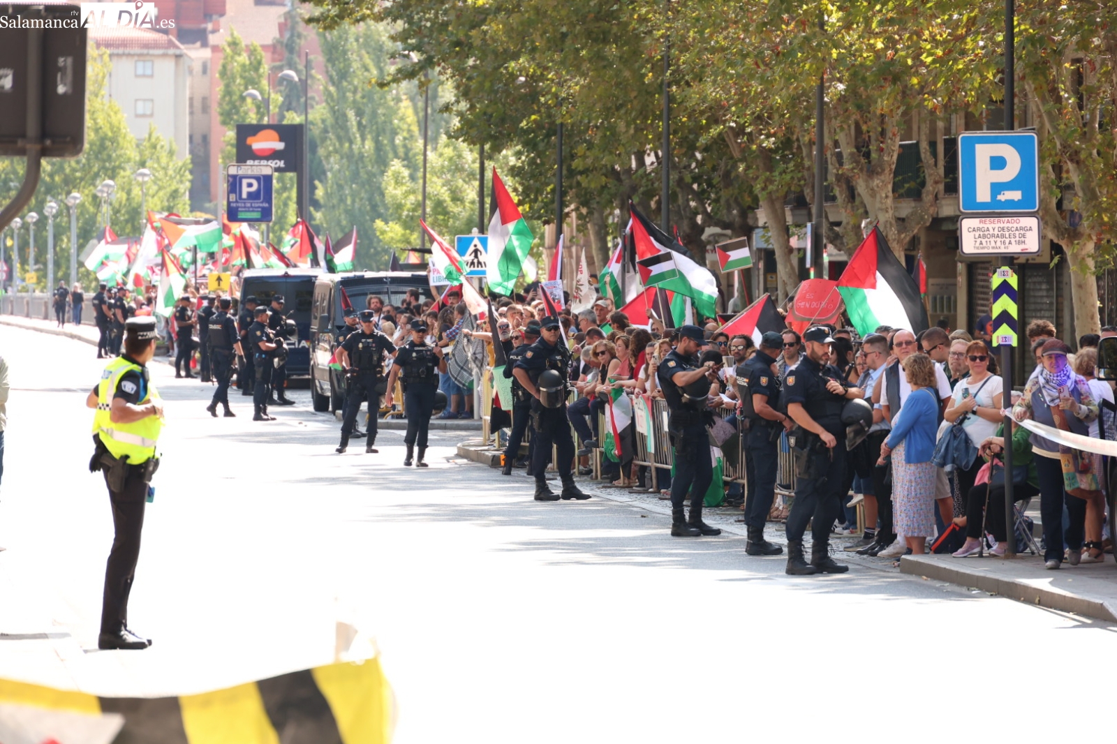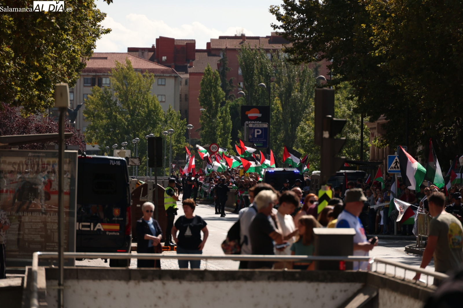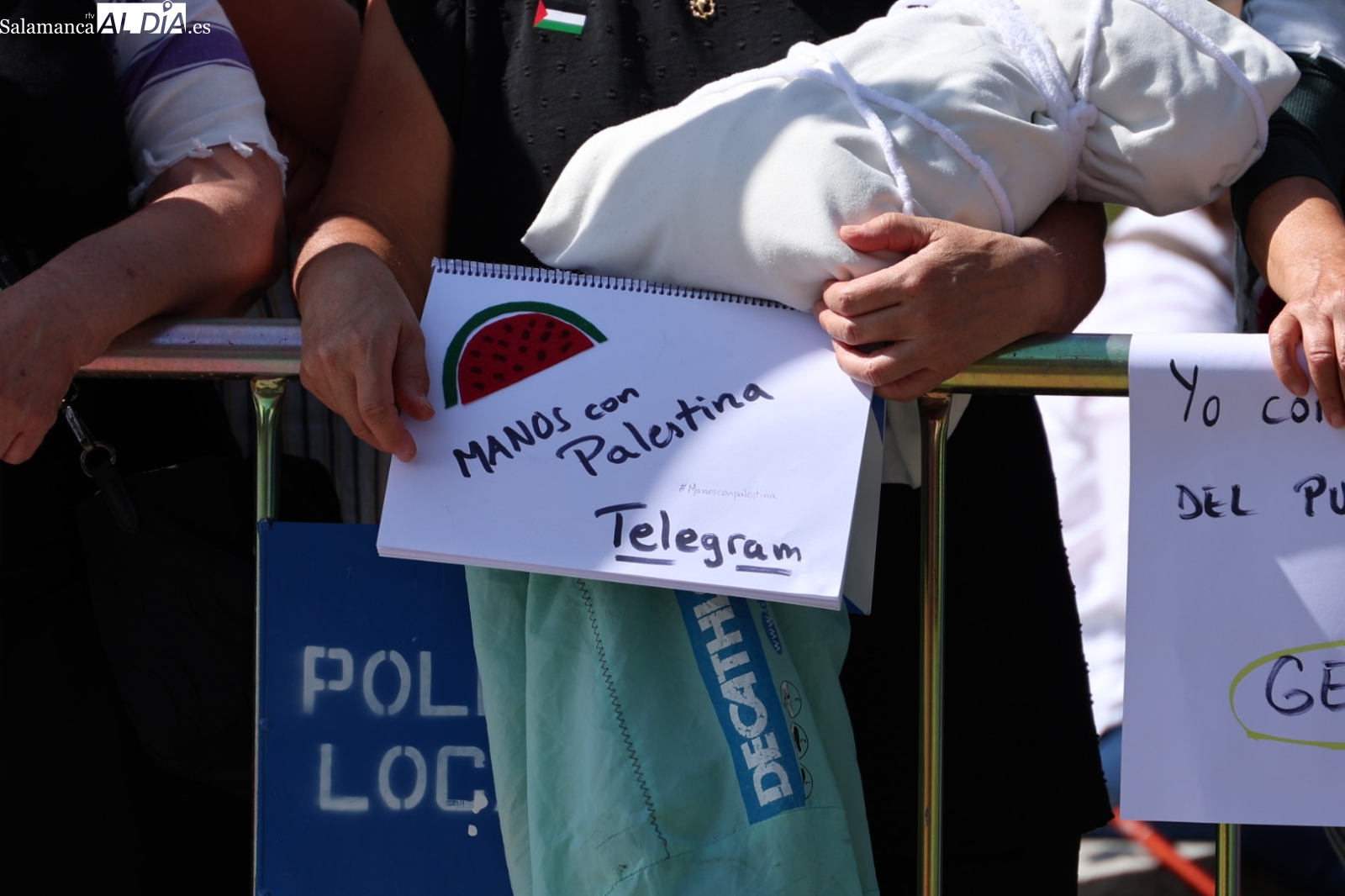 Los participantes han portado pancartas y consignas en apoyo al pueblo palestino, aprovechando la visibilidad que ha generado el evento deportivo. Mientras tanto, agentes de la Policía Nacional y efectivos de seguridad local han mantenido el control de la situación, regulando los accesos y vigilando de cerca la marcha del pelotón.