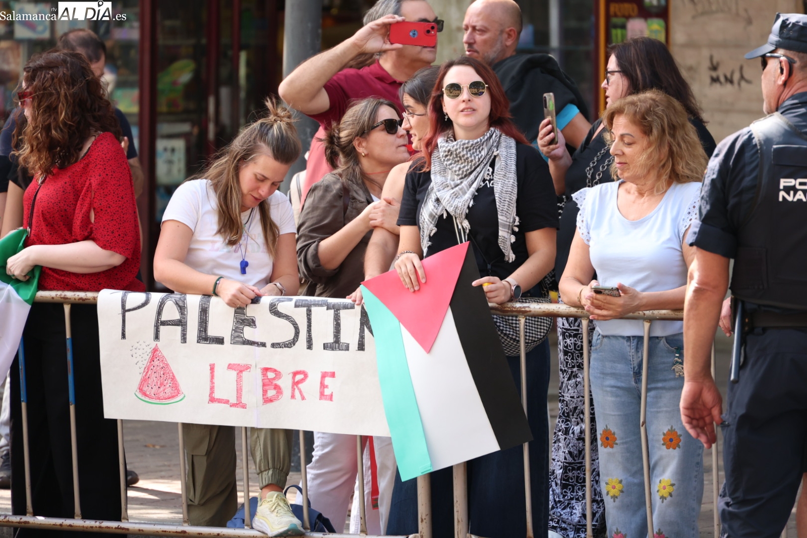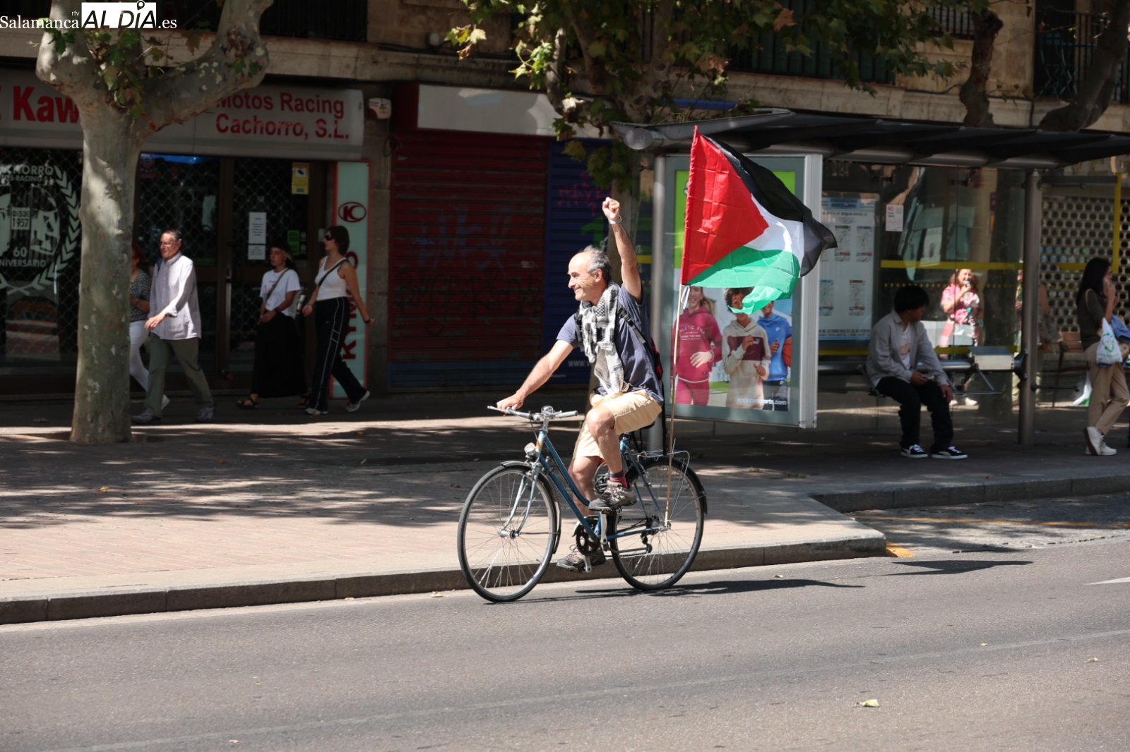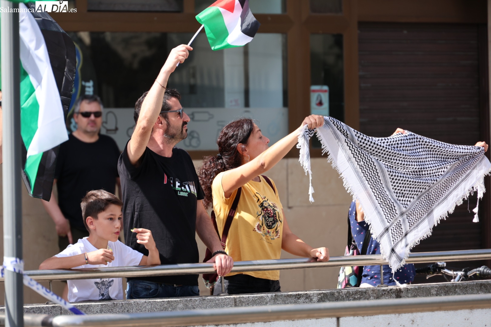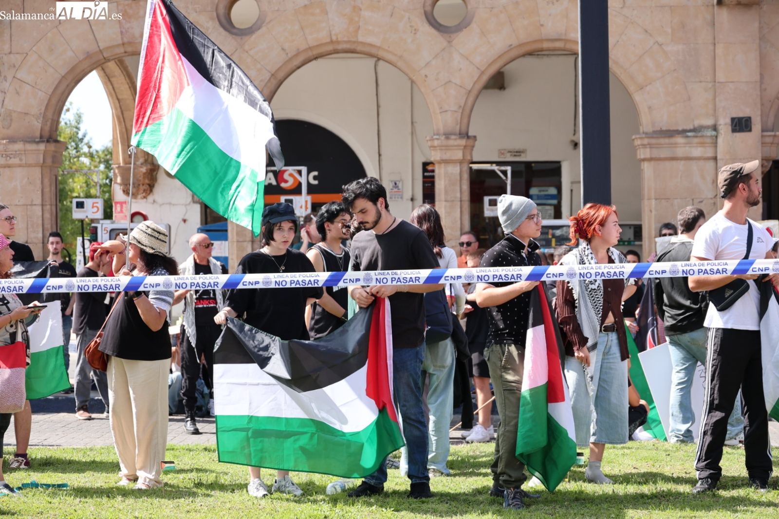 Los participantes han portado pancartas y consignas en apoyo al pueblo palestino, aprovechando la visibilidad que ha generado el evento deportivo. Mientras tanto, agentes de la Policía Nacional y efectivos de seguridad local han mantenido el control de la situación, regulando los accesos y vigilando de cerca la marcha del pelotón.
