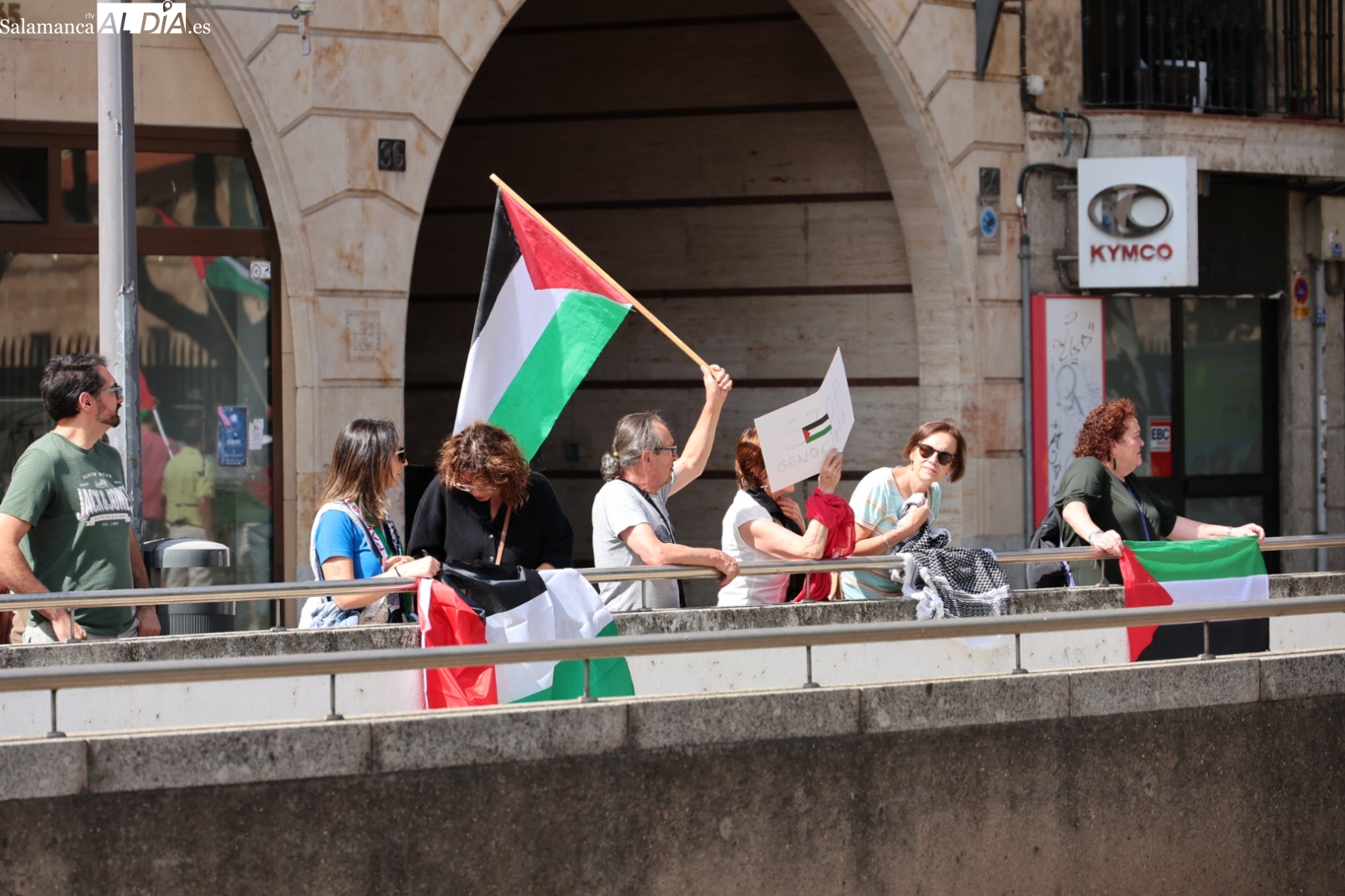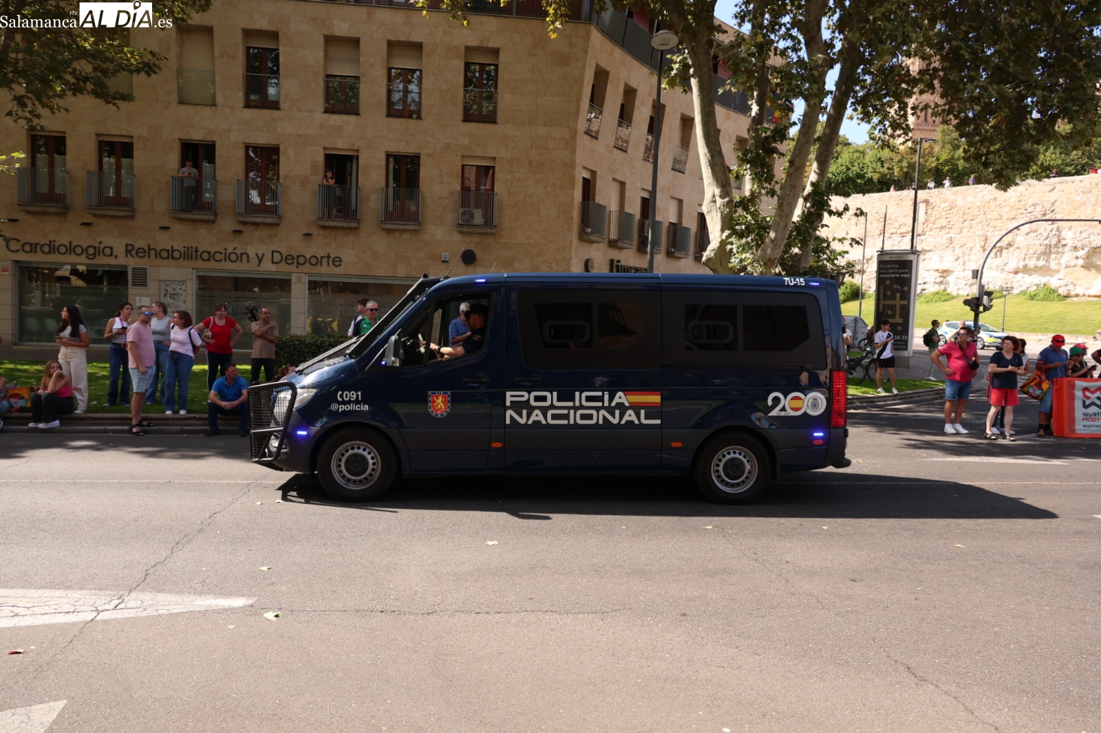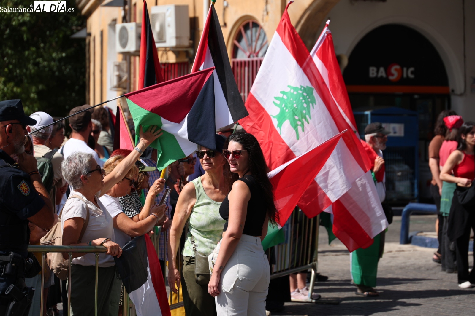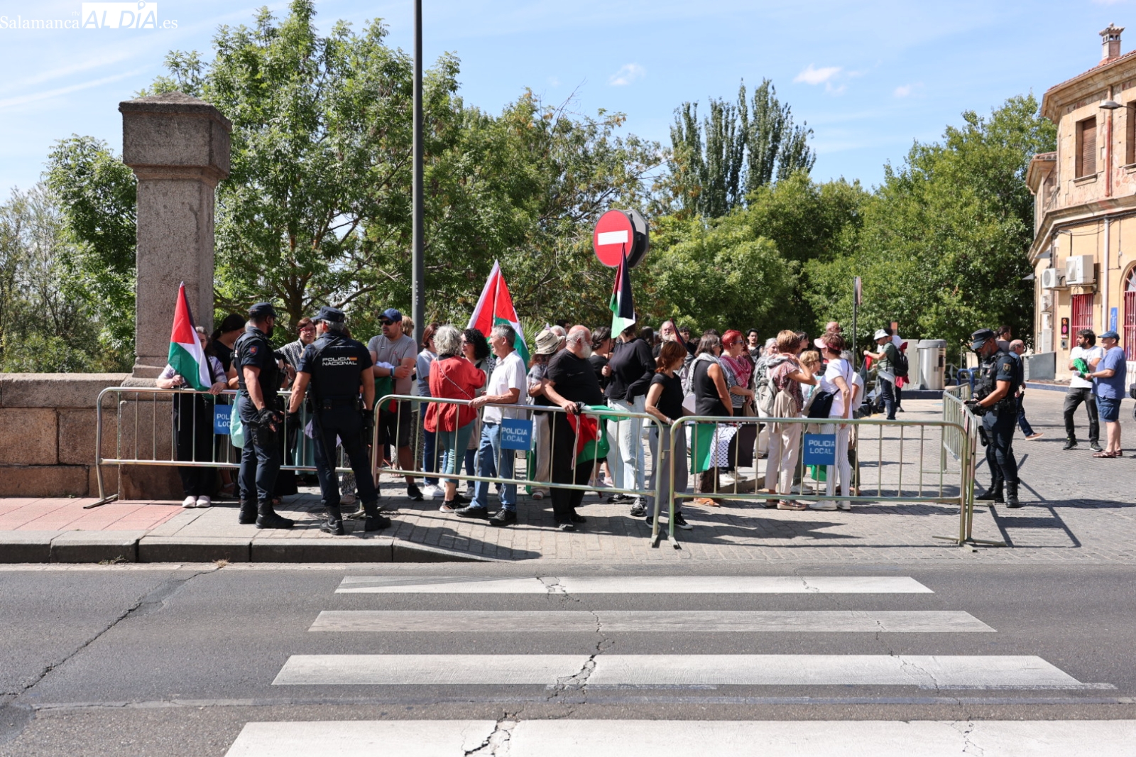 Los participantes han portado pancartas y consignas en apoyo al pueblo palestino, aprovechando la visibilidad que ha generado el evento deportivo. Mientras tanto, agentes de la Policía Nacional y efectivos de seguridad local han mantenido el control de la situación, regulando los accesos y vigilando de cerca la marcha del pelotón.