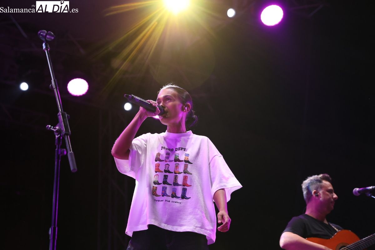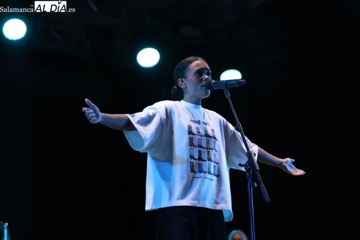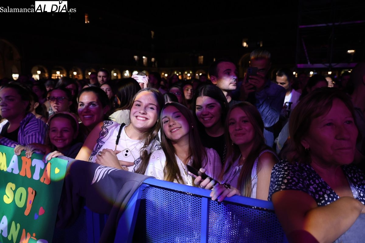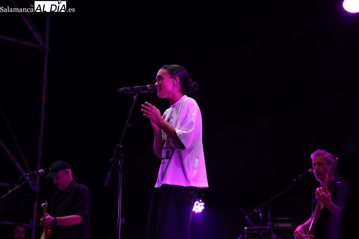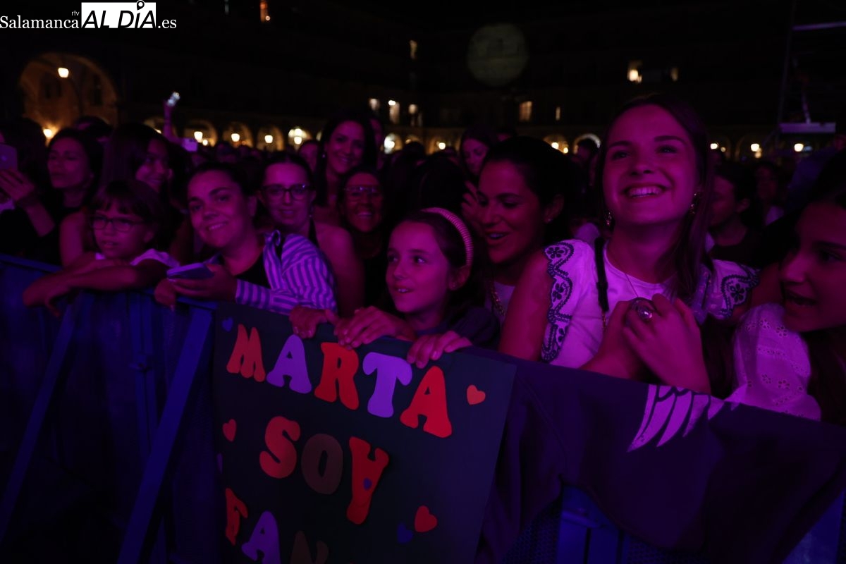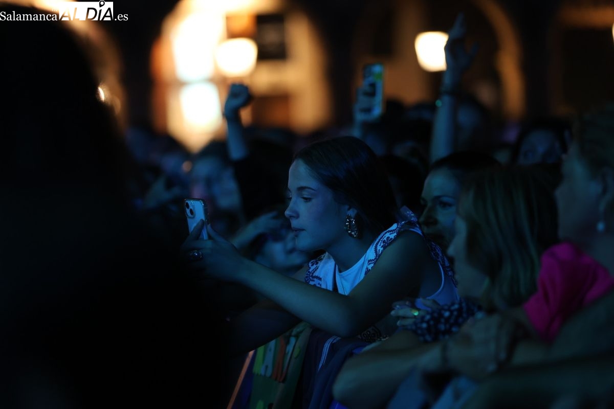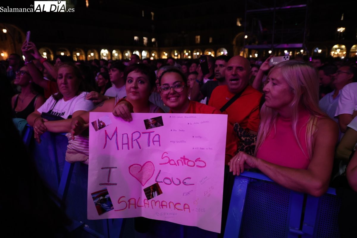La Plaza Mayor de Salamanca se ha convertido en un escenario de ensueño para el despliegue de poderío musical de Marta Santos. La cantante sevillana ofreció un concierto brillante en el que demostró una gran profesionalidad y una conexión prodigiosa con el público salmantino.