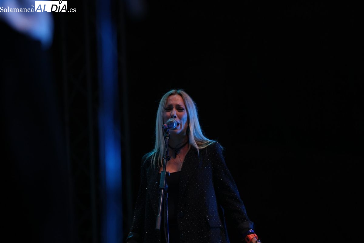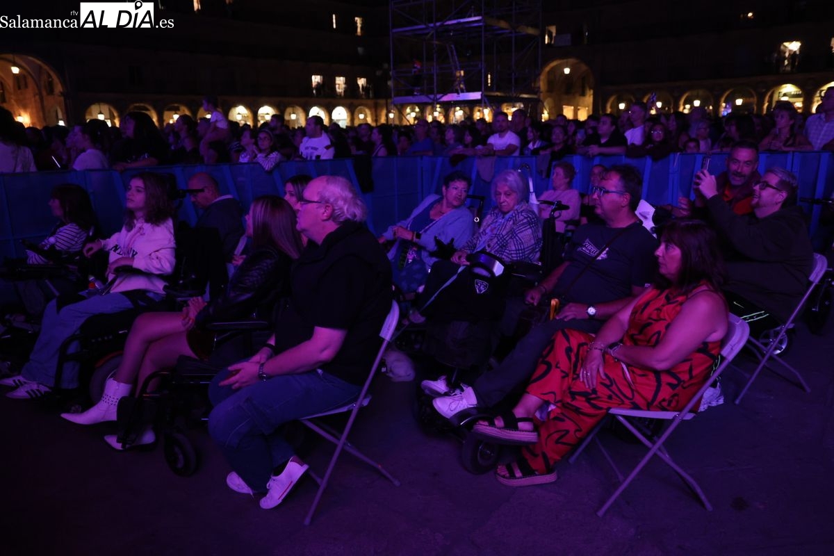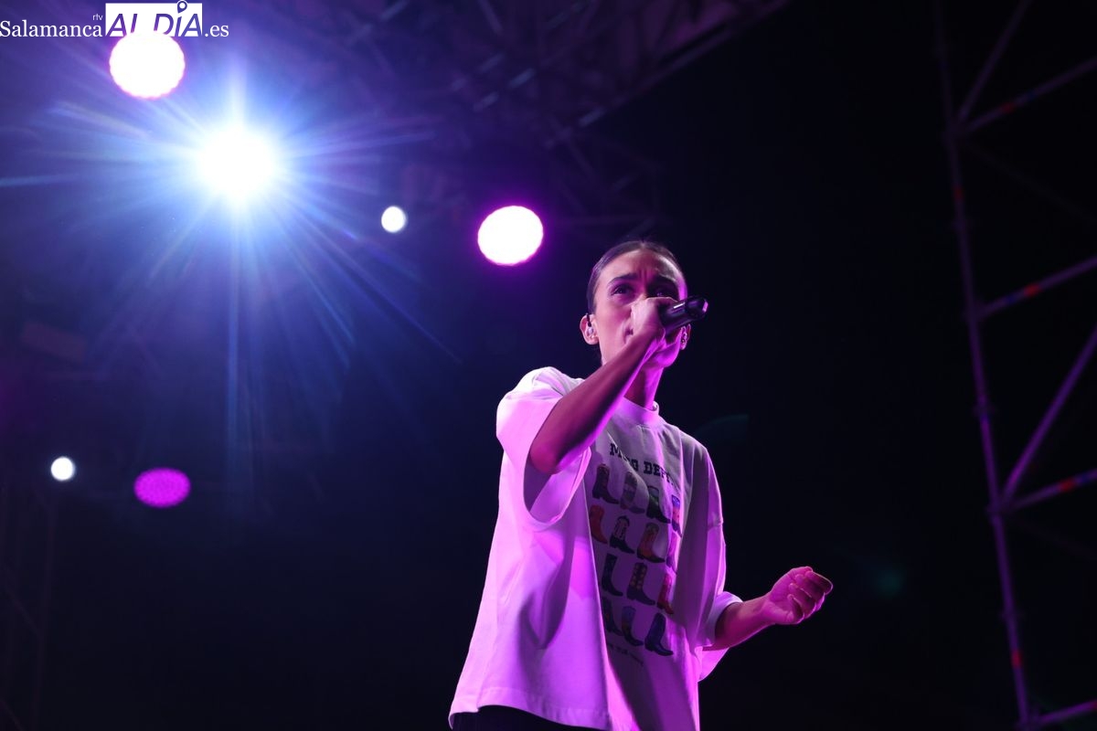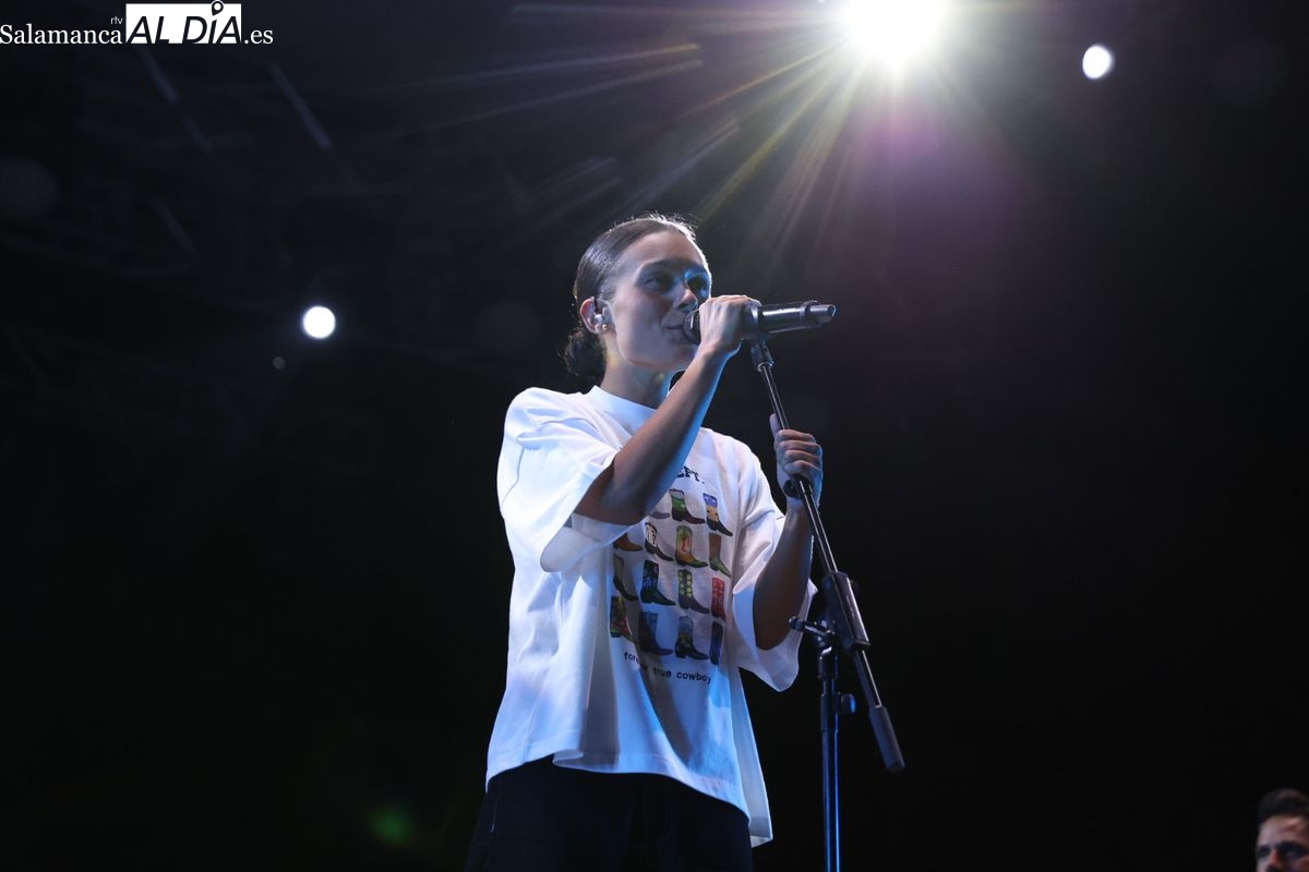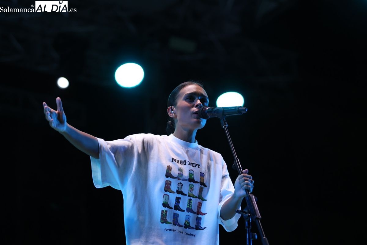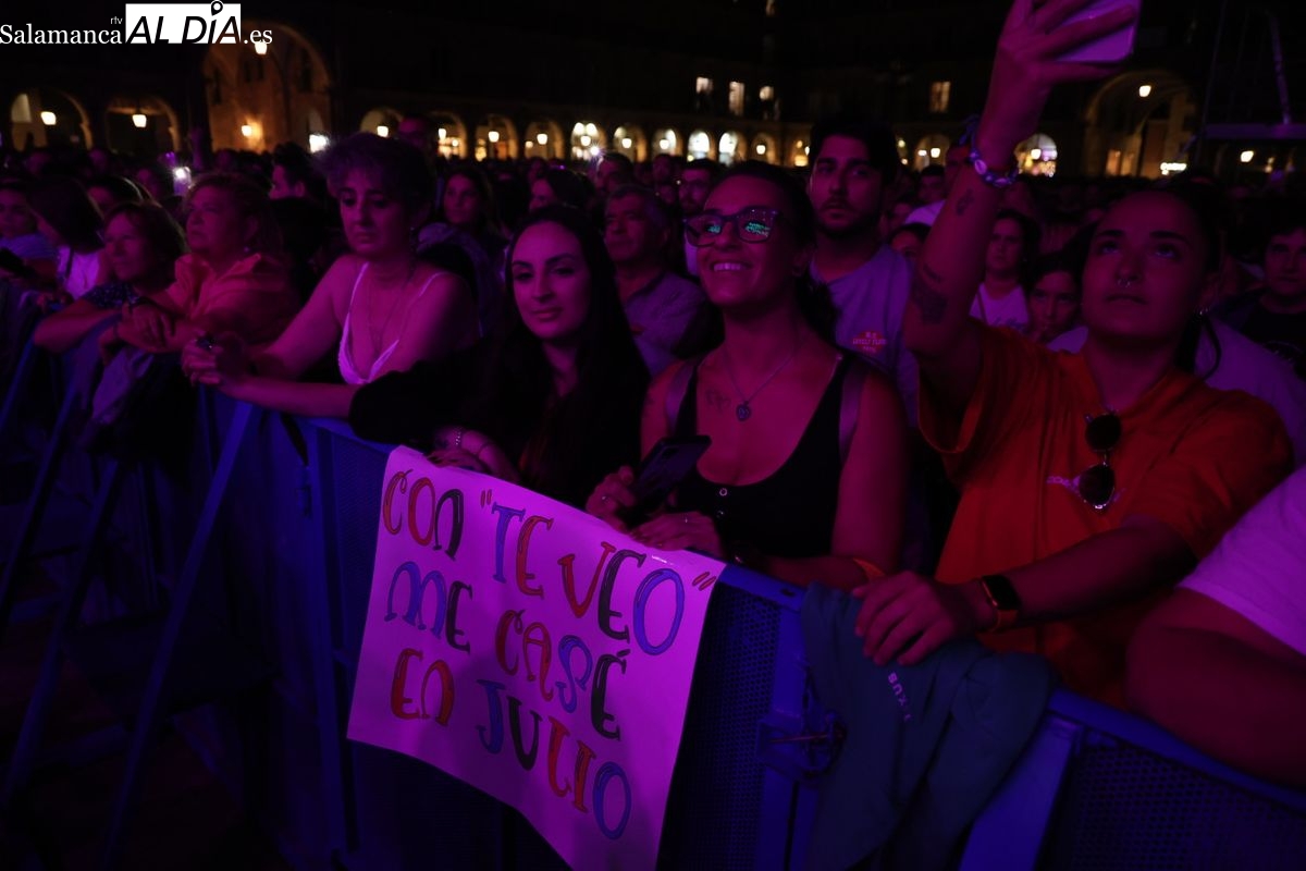 La Plaza Mayor de Salamanca se ha convertido en un escenario de ensueño para el despliegue de poderío musical de Marta Santos. La cantante sevillana ofreció un concierto brillante en el que demostró una gran profesionalidad y una conexión prodigiosa con el público salmantino.