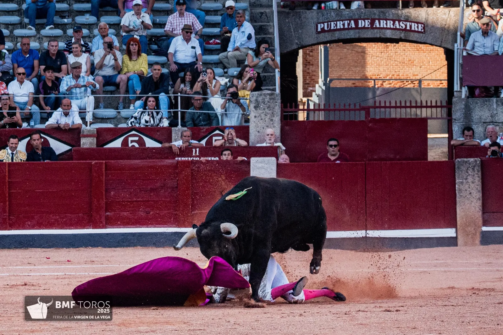 El diestro salmantino fue prendido por el cuarto toro de la tarde al recibirlo a portagayola, y su participación mañana en Madrid queda en el aire