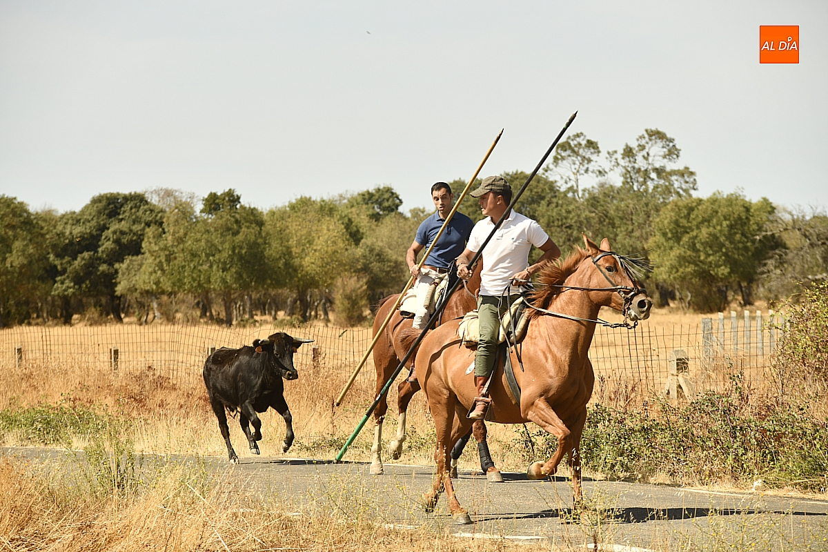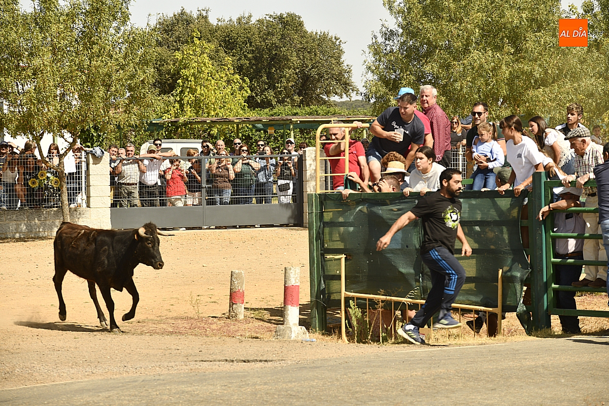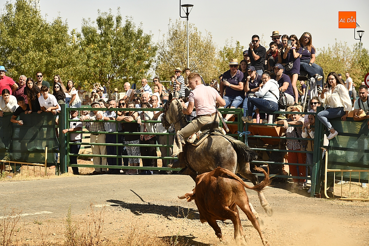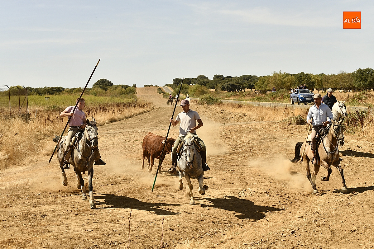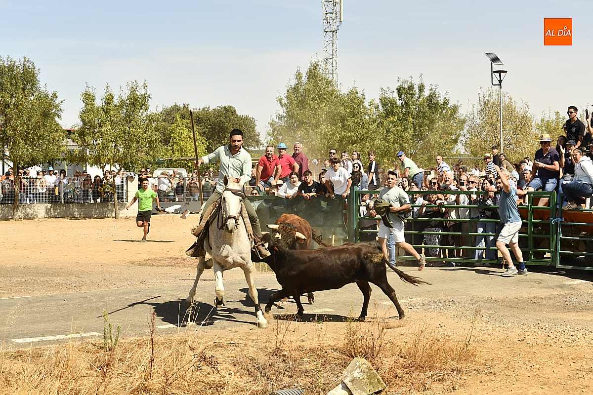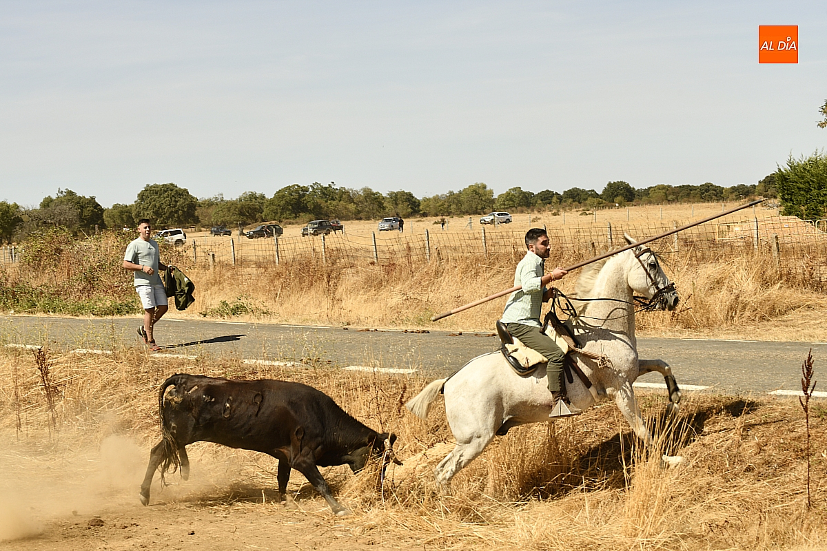 La mañana del sábado amaneció con un sol generoso y un aire todavía templado, preludio del otoño que ya asoma en los campos salmantinos. En Aldehuela de Yeltes, la jornada se presentaba marcada por la tradición: las fiestas en honor al Cristo de la Laguna, marcada por con un encierro a caballo en la mañana sabatina.