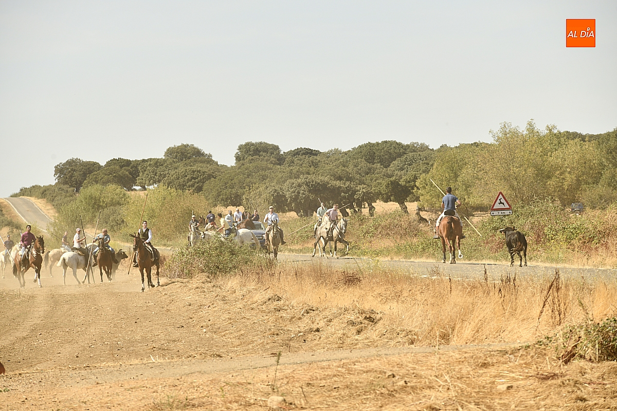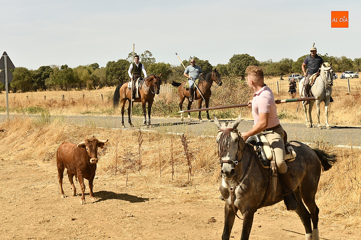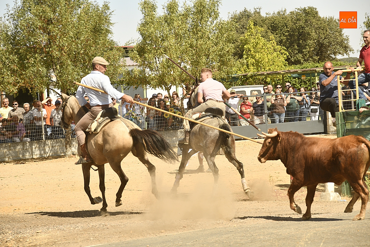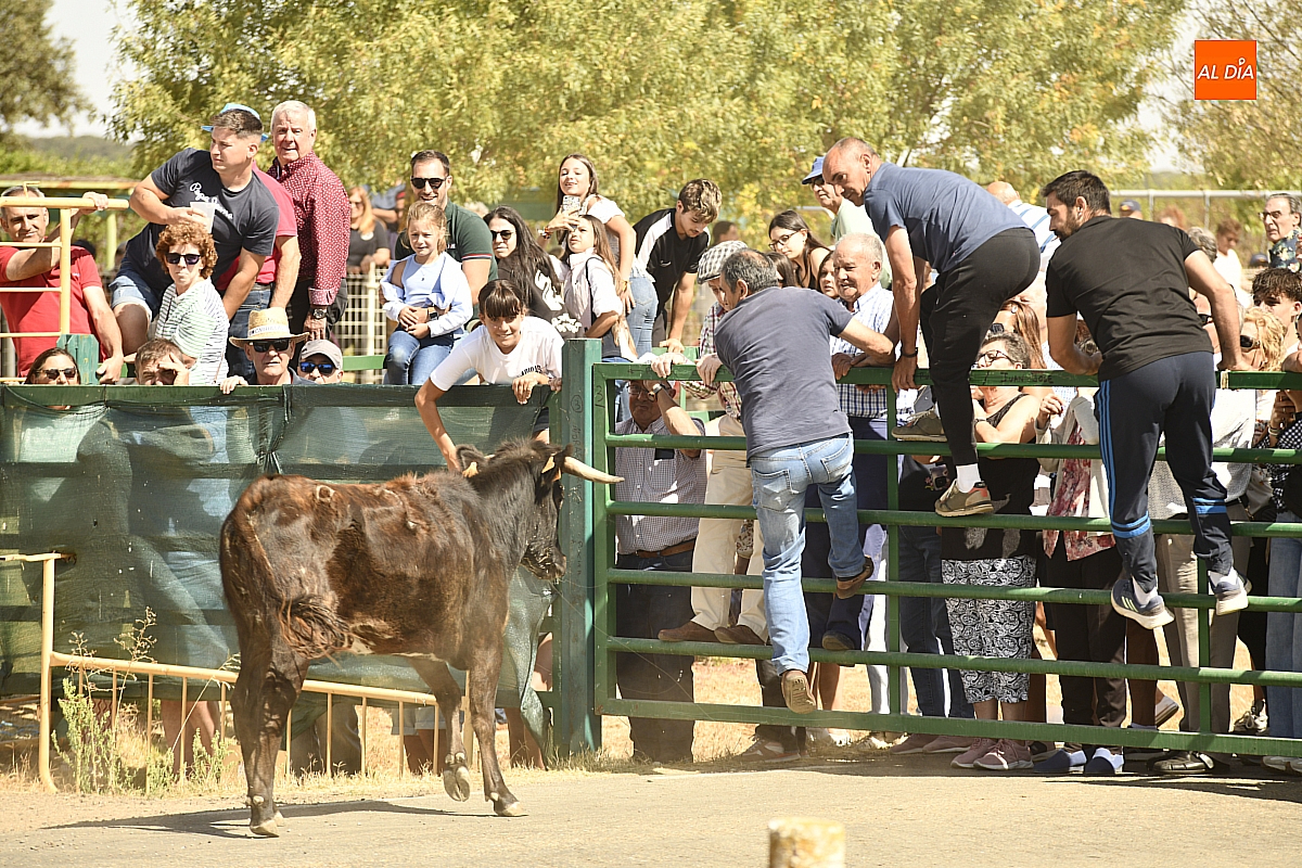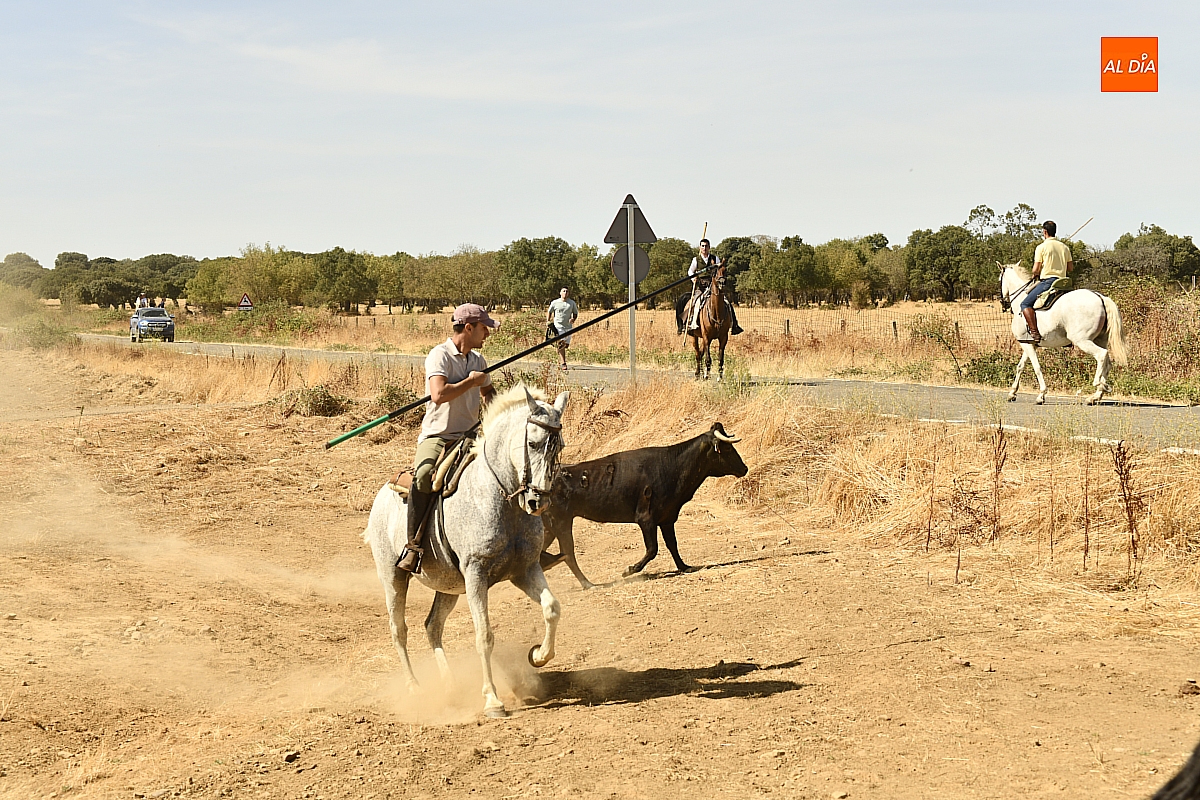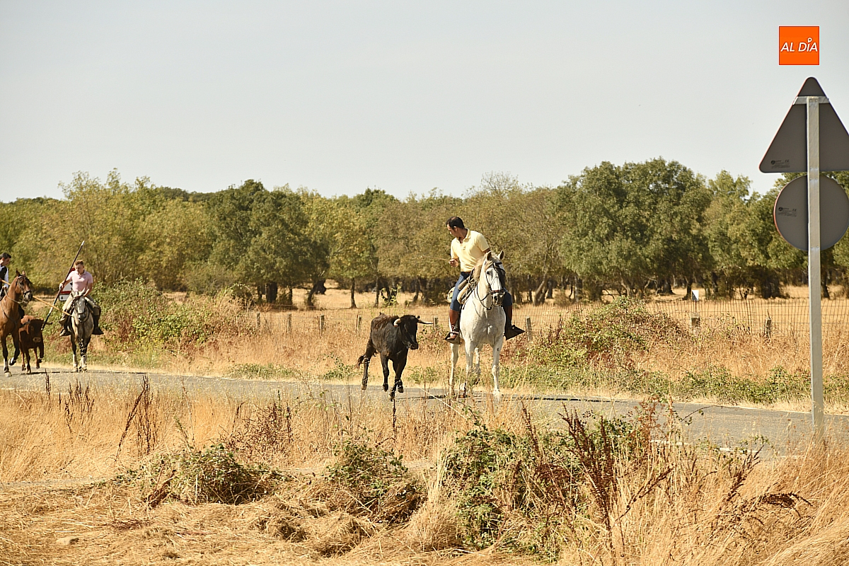 La mañana del sábado amaneció con un sol generoso y un aire todavía templado, preludio del otoño que ya asoma en los campos salmantinos. En Aldehuela de Yeltes, la jornada se presentaba marcada por la tradición: las fiestas en honor al Cristo de la Laguna, marcada por con un encierro a caballo en la mañana sabatina.