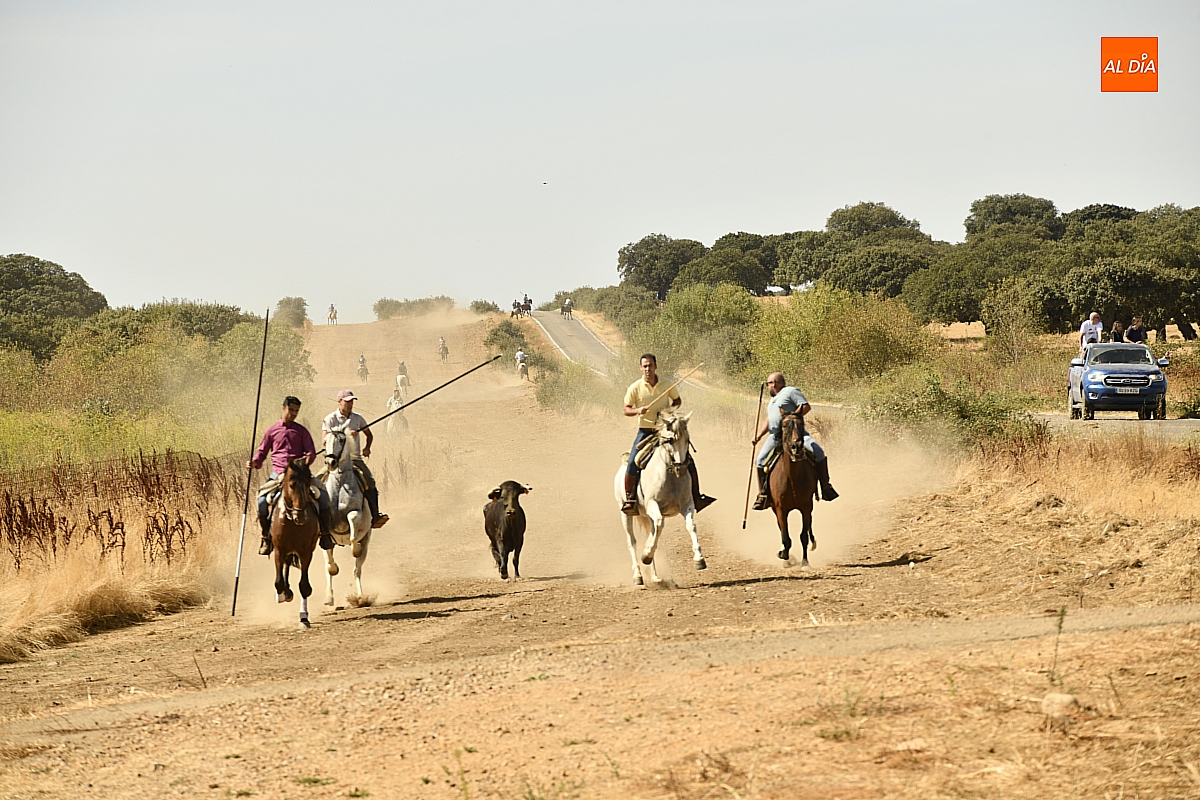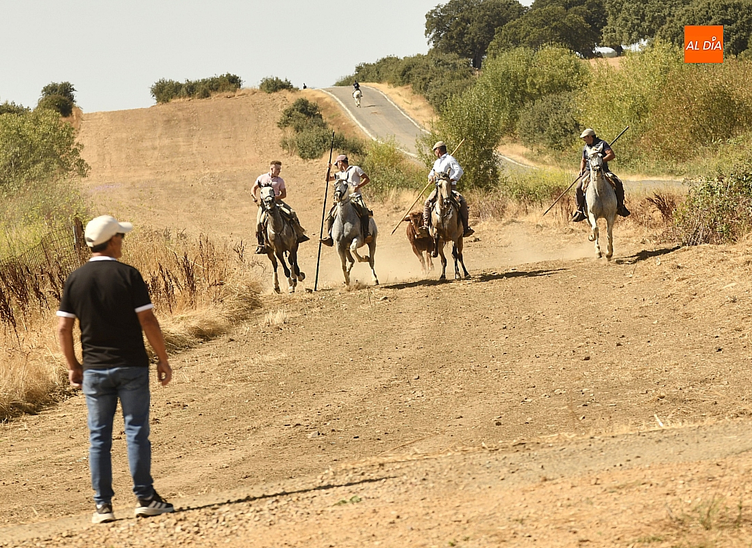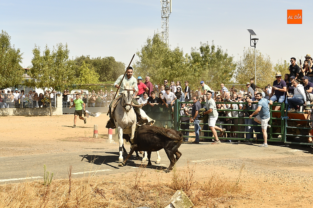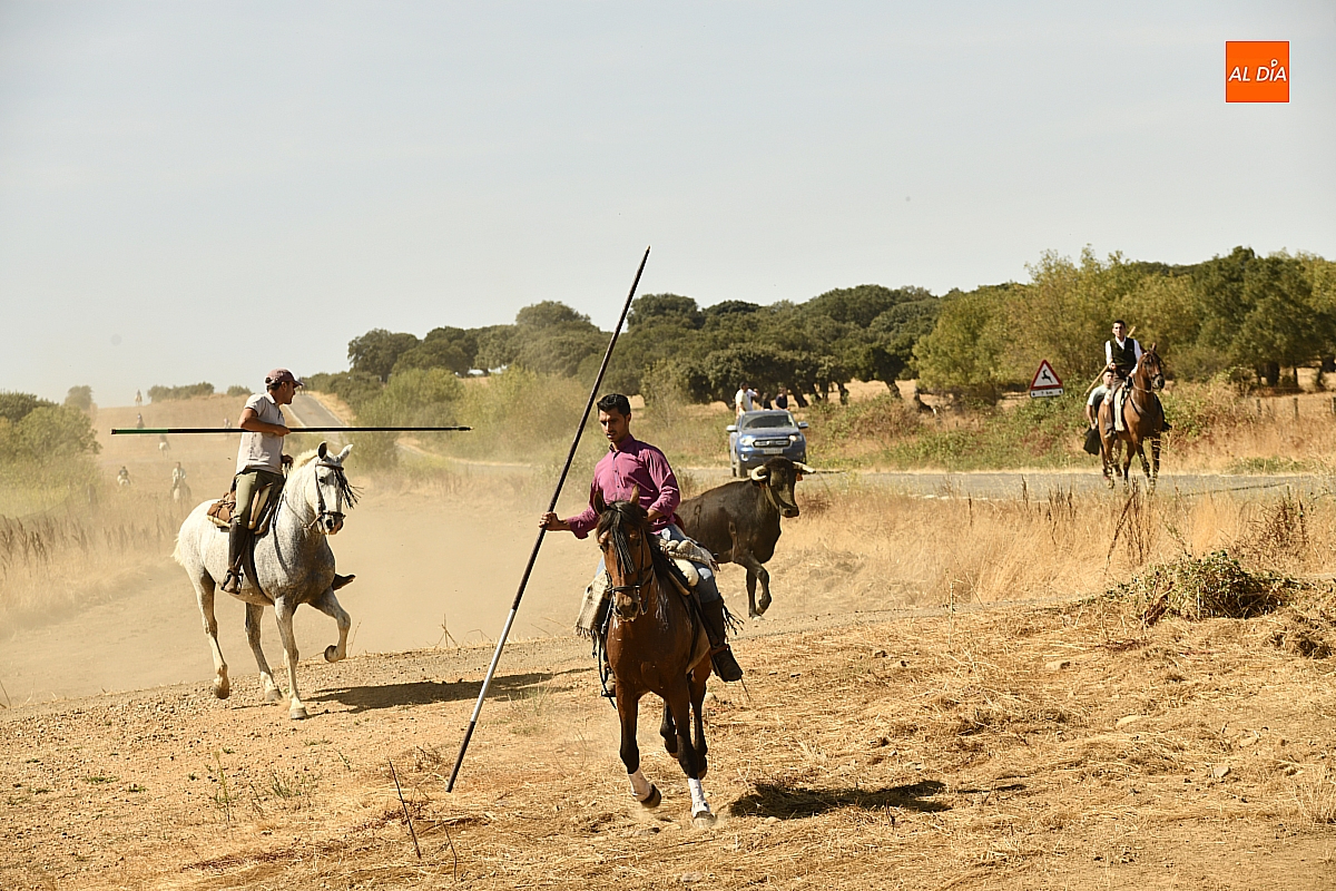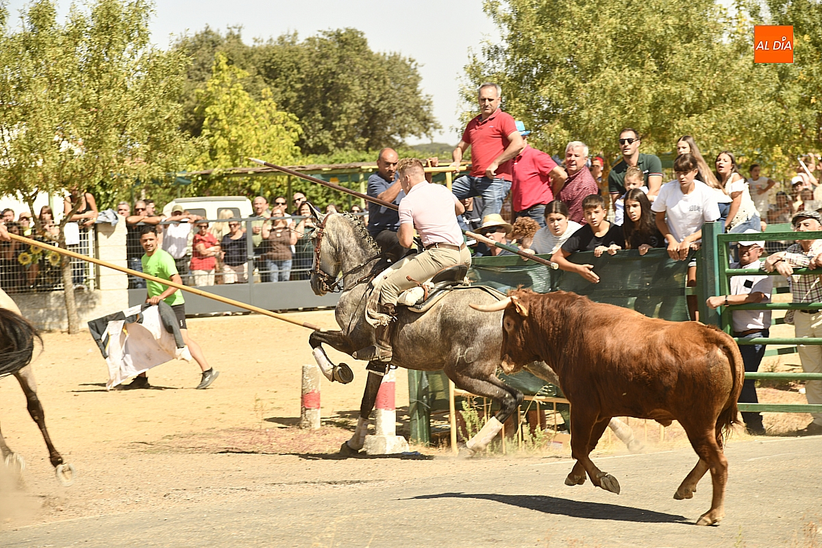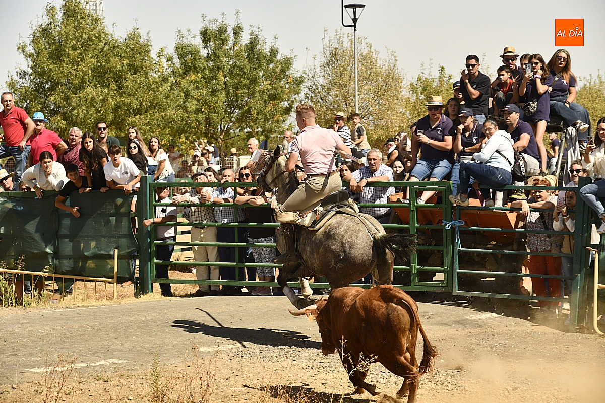 La mañana del sábado amaneció con un sol generoso y un aire todavía templado, preludio del otoño que ya asoma en los campos salmantinos. En Aldehuela de Yeltes, la jornada se presentaba marcada por la tradición: las fiestas en honor al Cristo de la Laguna, marcada por con un encierro a caballo en la mañana sabatina.