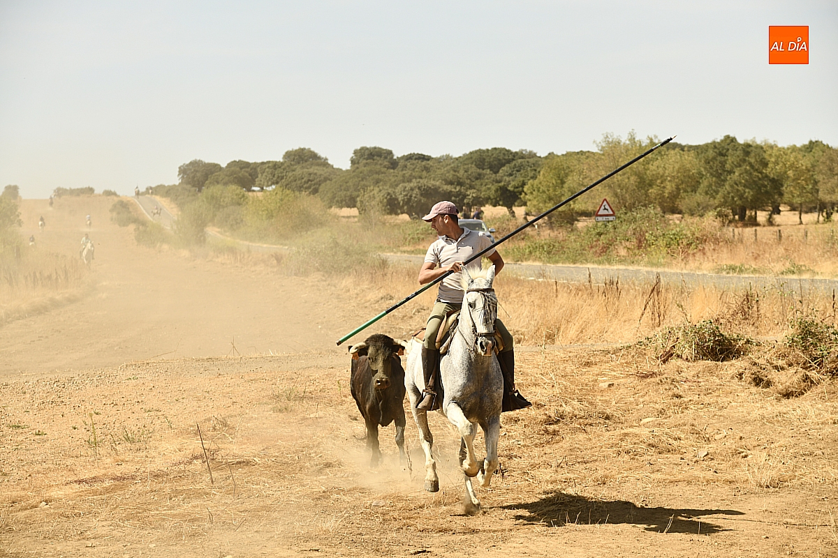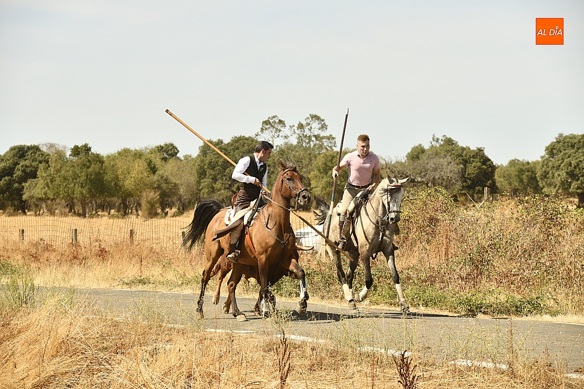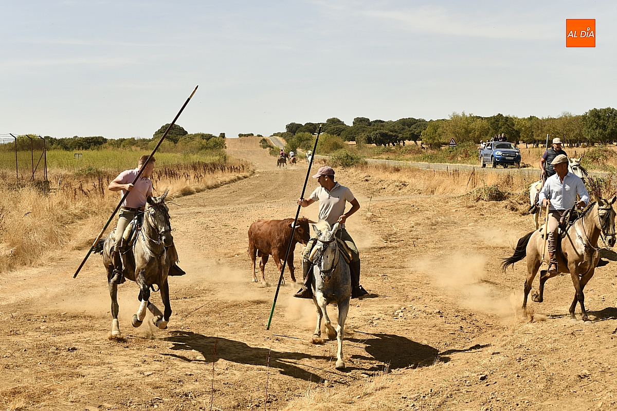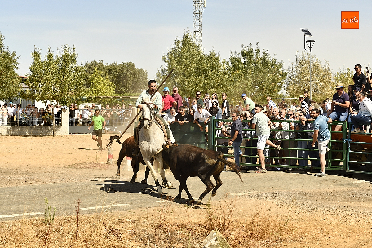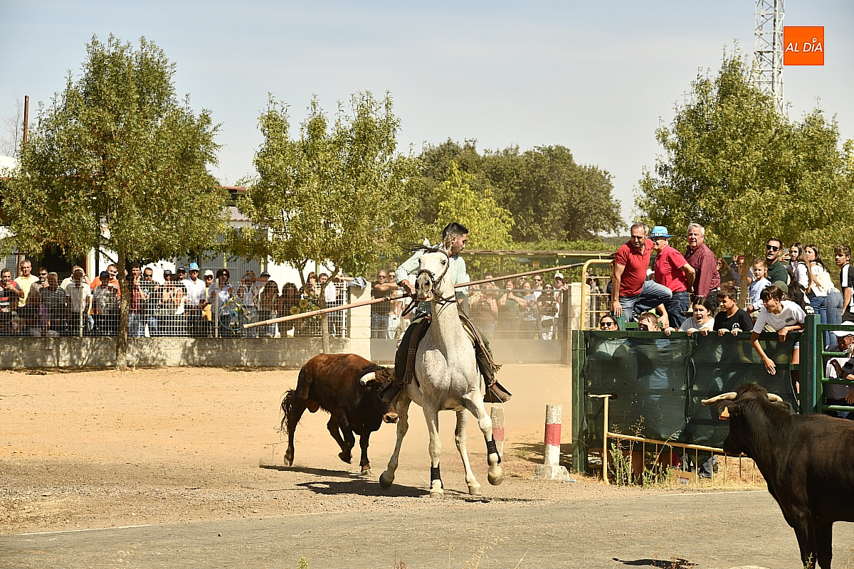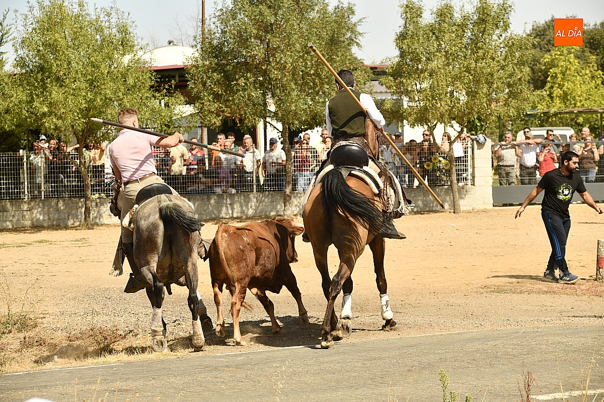 La mañana del sábado amaneció con un sol generoso y un aire todavía templado, preludio del otoño que ya asoma en los campos salmantinos. En Aldehuela de Yeltes, la jornada se presentaba marcada por la tradición: las fiestas en honor al Cristo de la Laguna, marcada por con un encierro a caballo en la mañana sabatina.