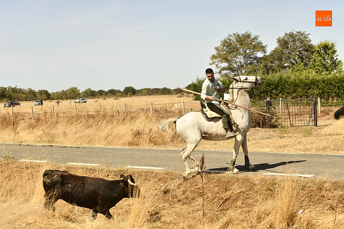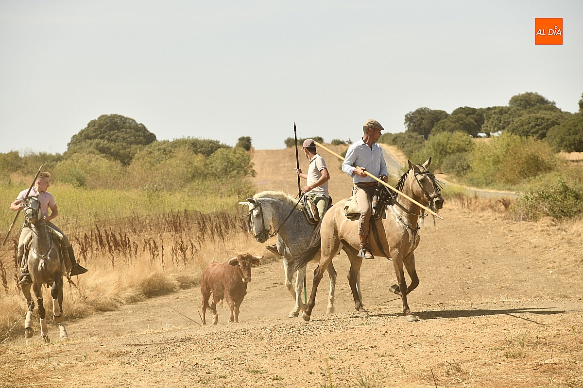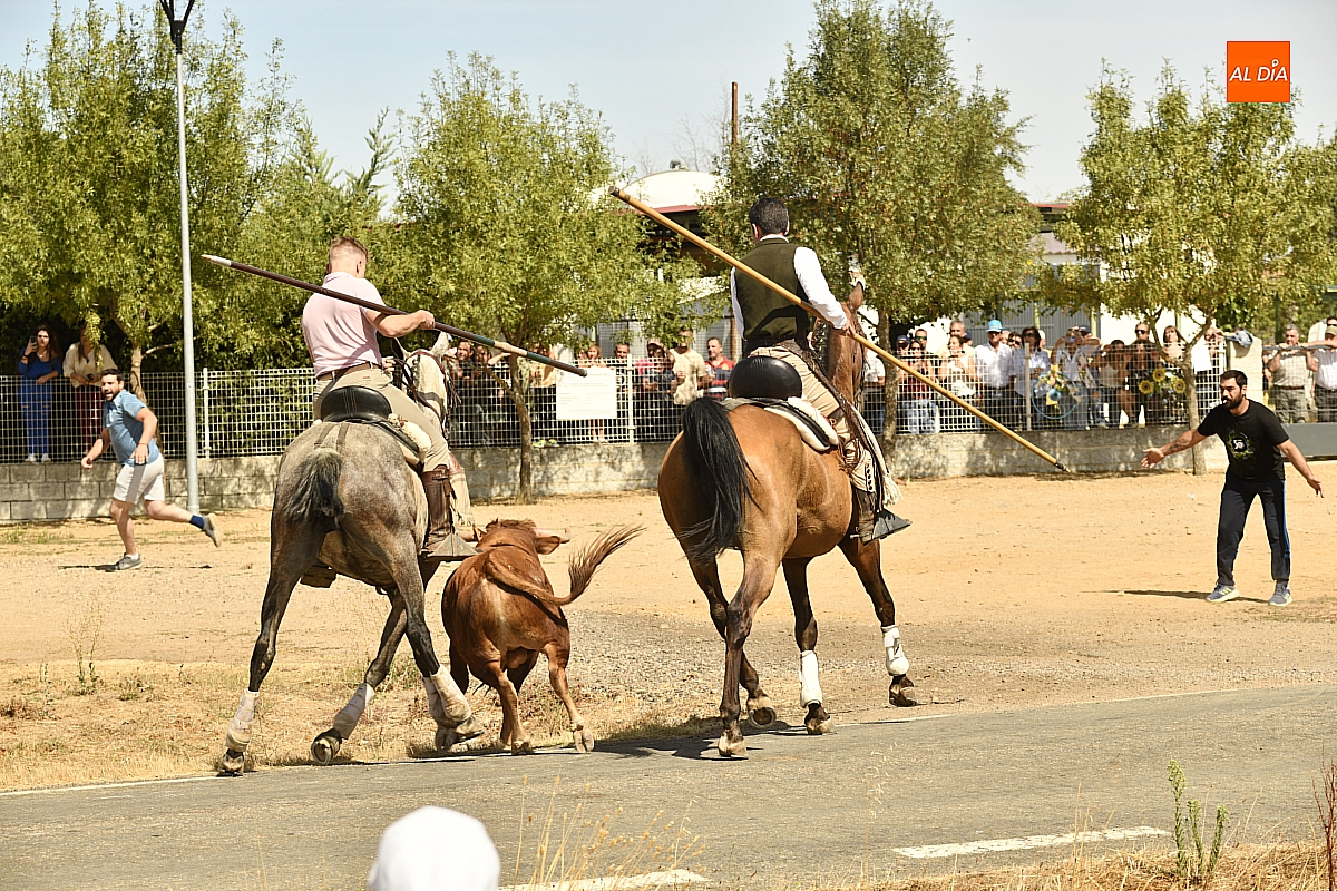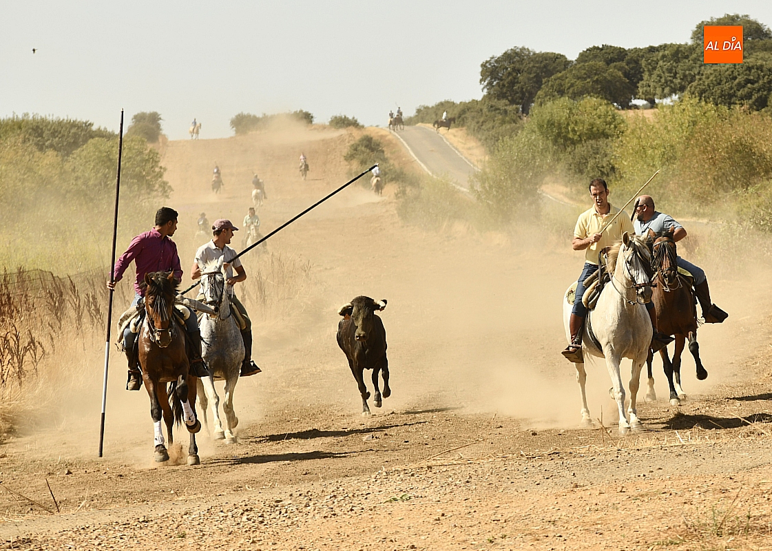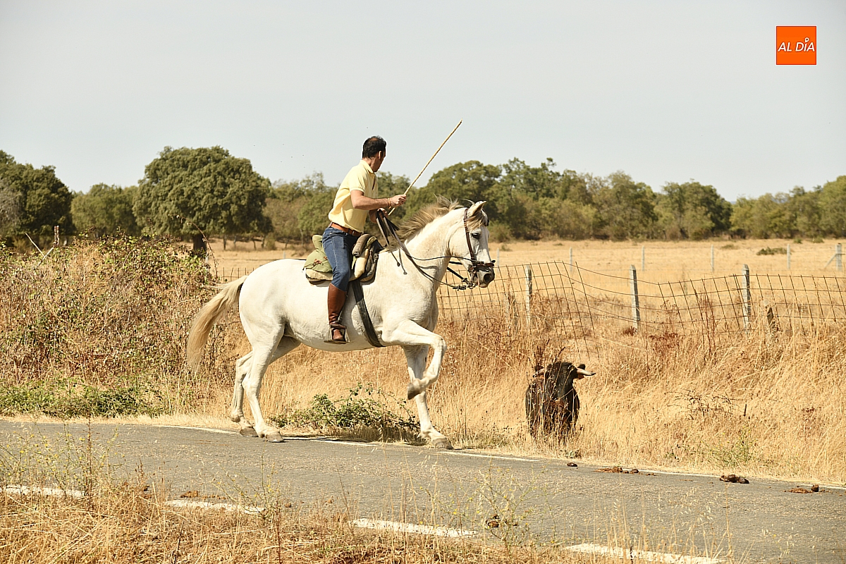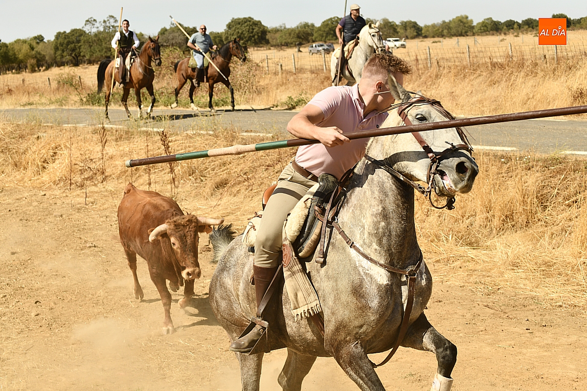 La mañana del sábado amaneció con un sol generoso y un aire todavía templado, preludio del otoño que ya asoma en los campos salmantinos. En Aldehuela de Yeltes, la jornada se presentaba marcada por la tradición: las fiestas en honor al Cristo de la Laguna, marcada por con un encierro a caballo en la mañana sabatina.