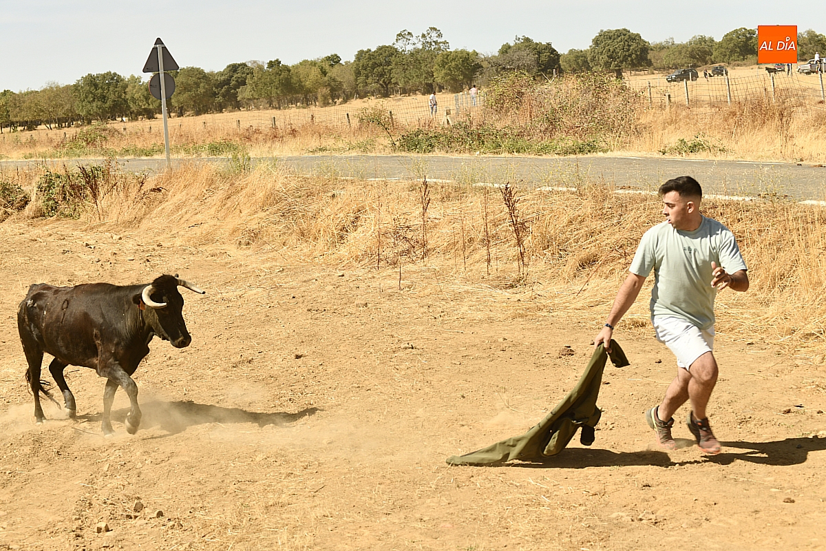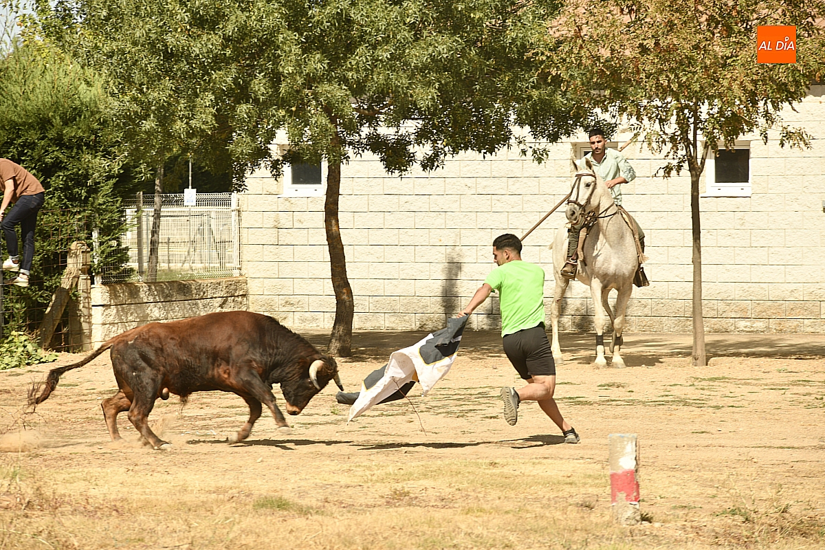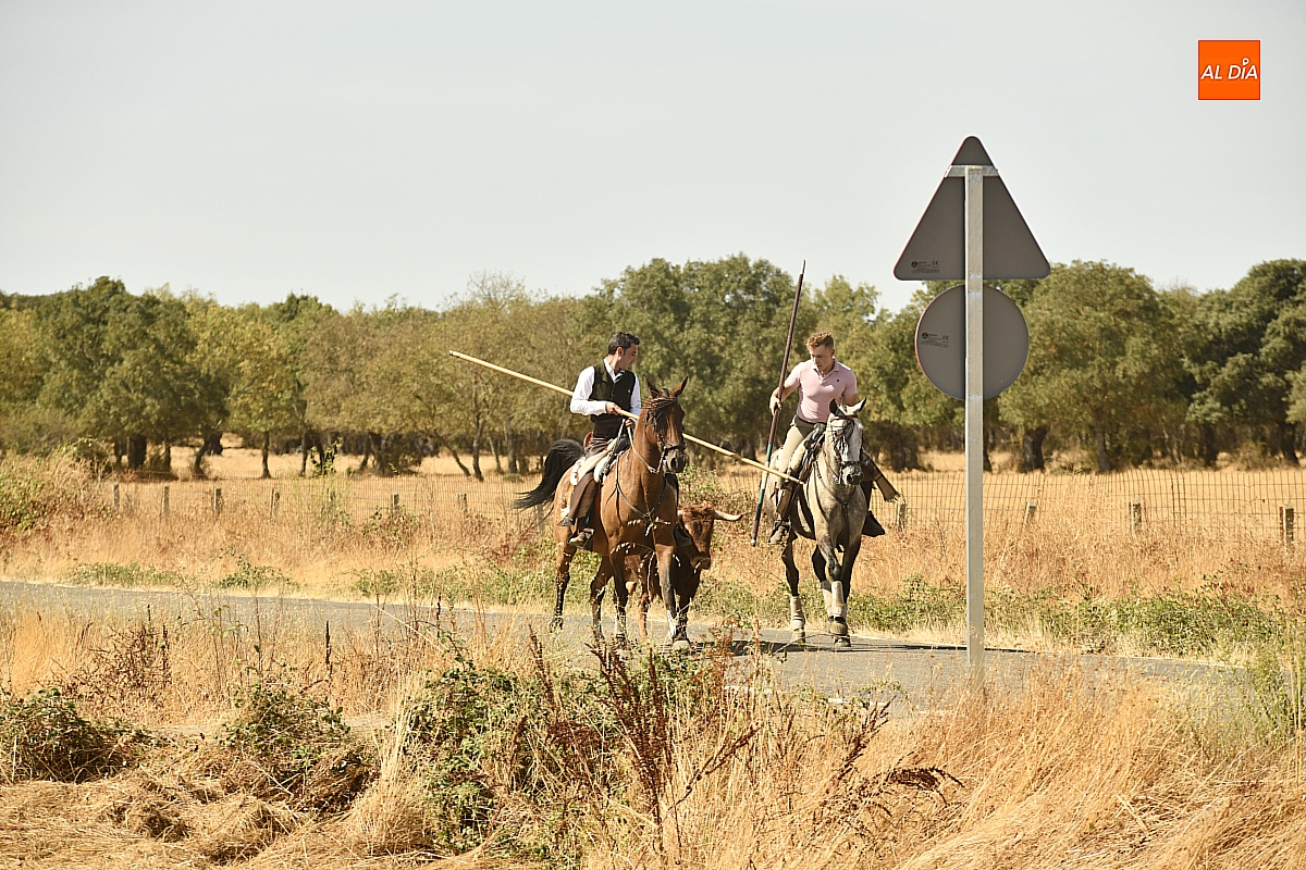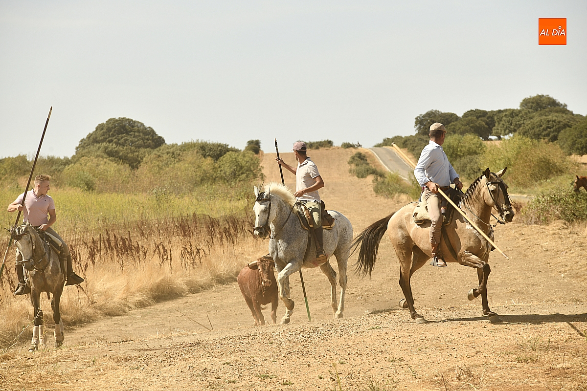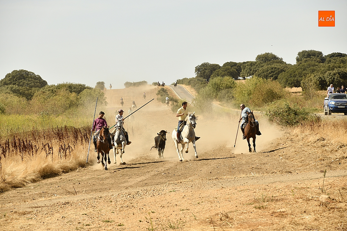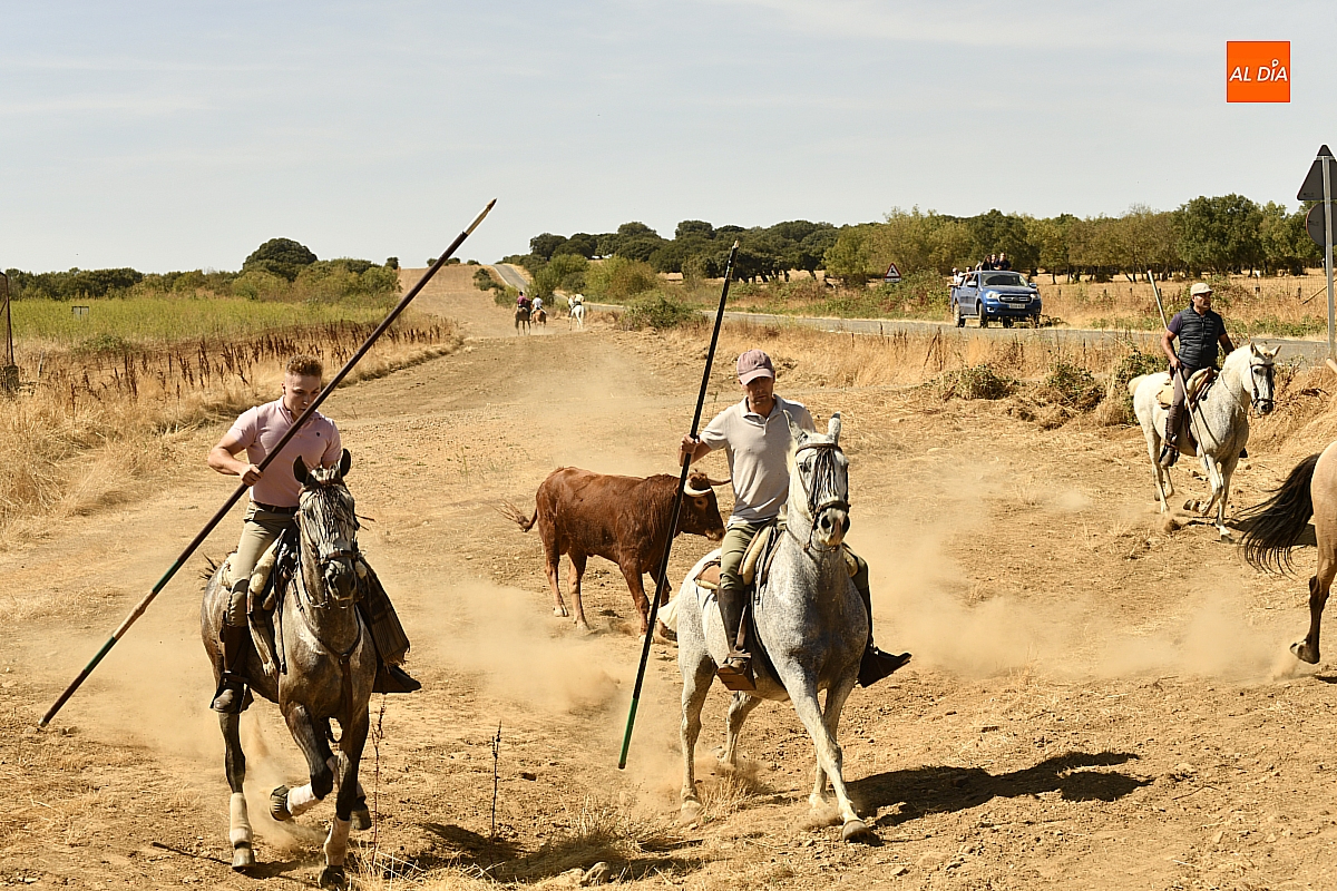 La mañana del sábado amaneció con un sol generoso y un aire todavía templado, preludio del otoño que ya asoma en los campos salmantinos. En Aldehuela de Yeltes, la jornada se presentaba marcada por la tradición: las fiestas en honor al Cristo de la Laguna, marcada por con un encierro a caballo en la mañana sabatina.