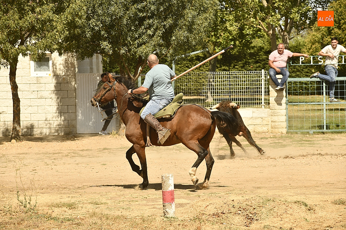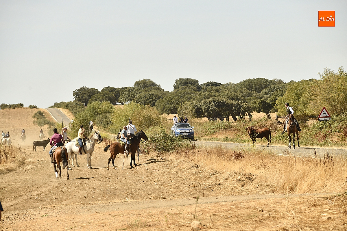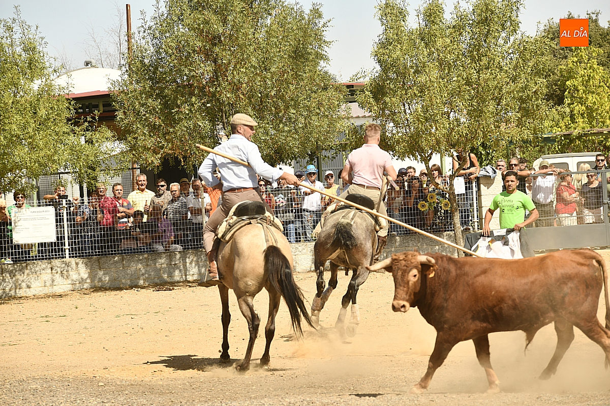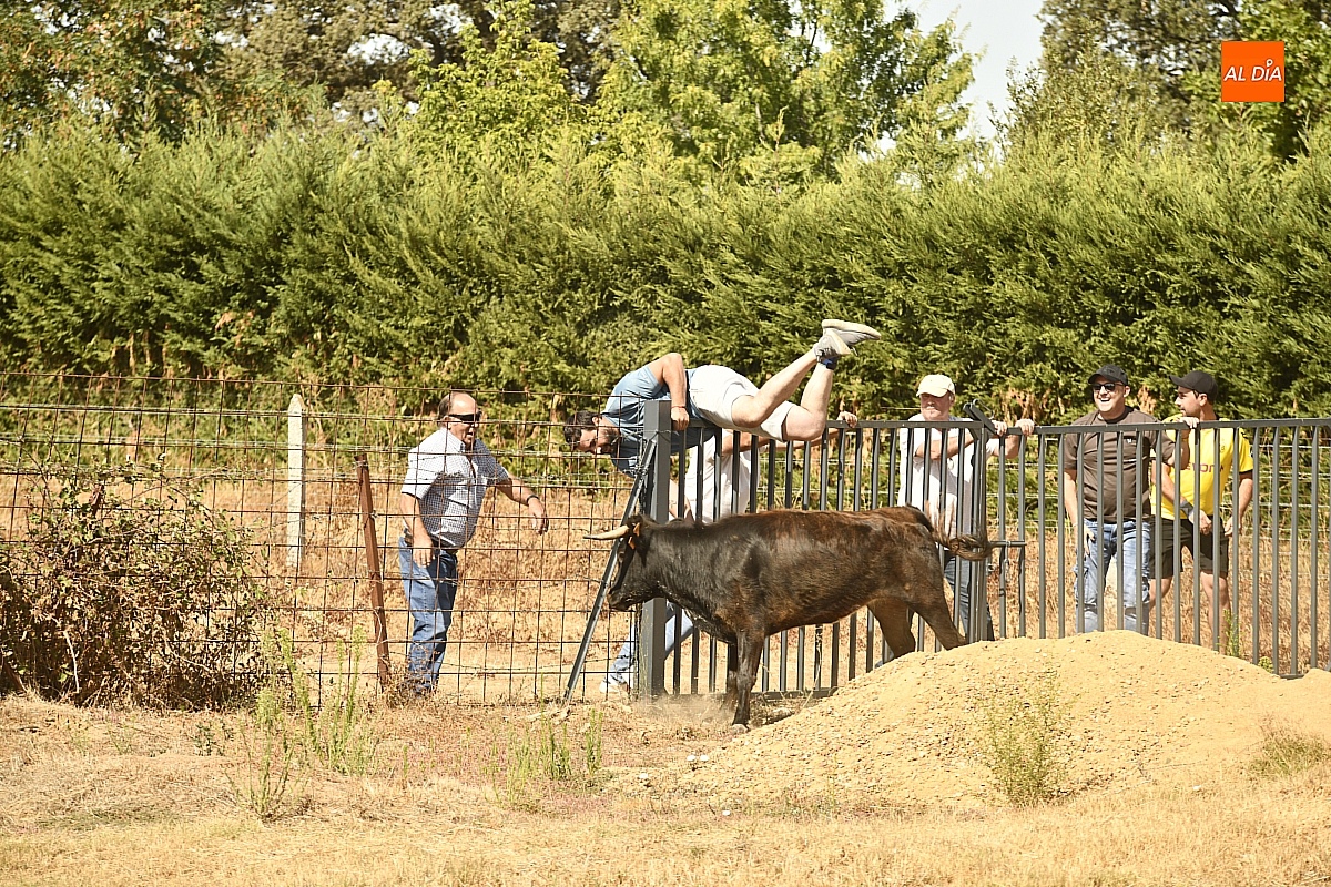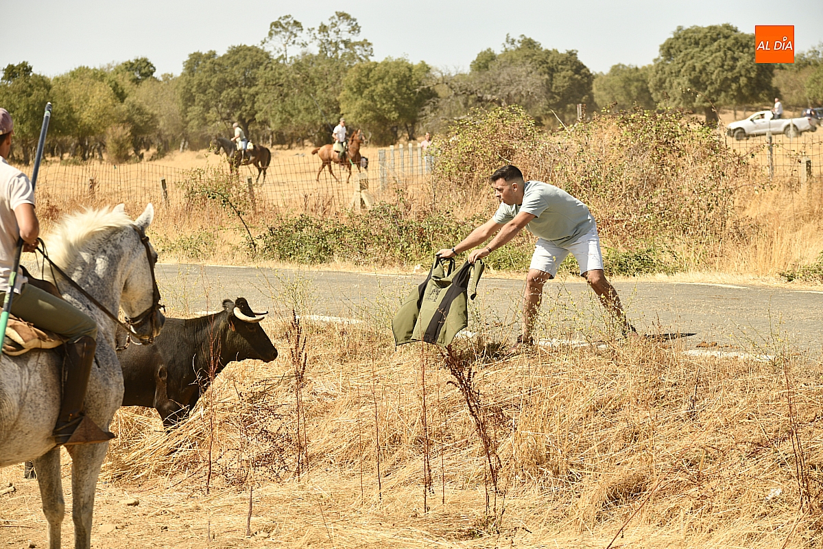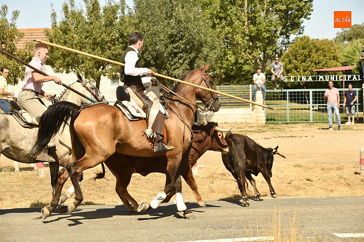 La mañana del sábado amaneció con un sol generoso y un aire todavía templado, preludio del otoño que ya asoma en los campos salmantinos. En Aldehuela de Yeltes, la jornada se presentaba marcada por la tradición: las fiestas en honor al Cristo de la Laguna, marcada por con un encierro a caballo en la mañana sabatina.