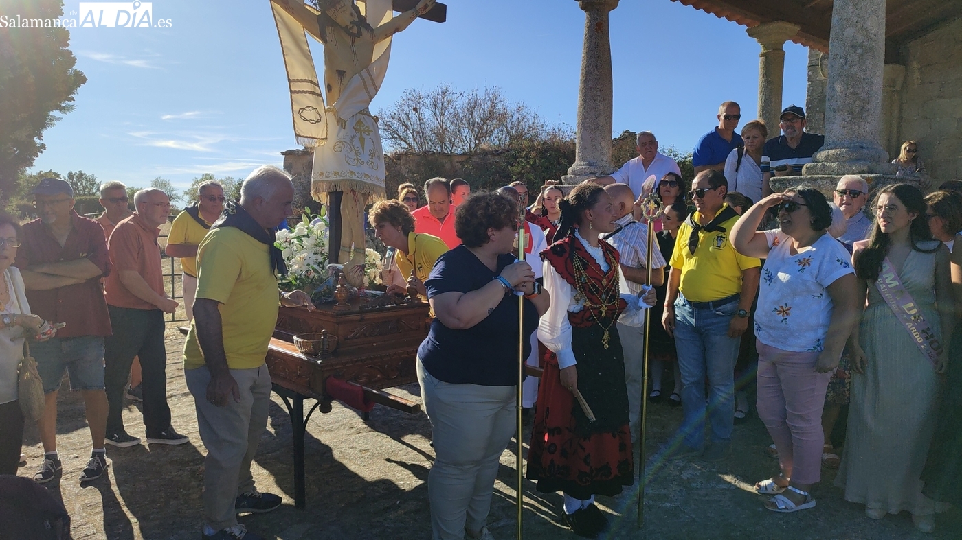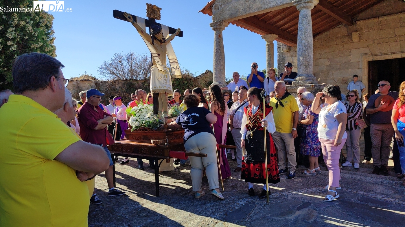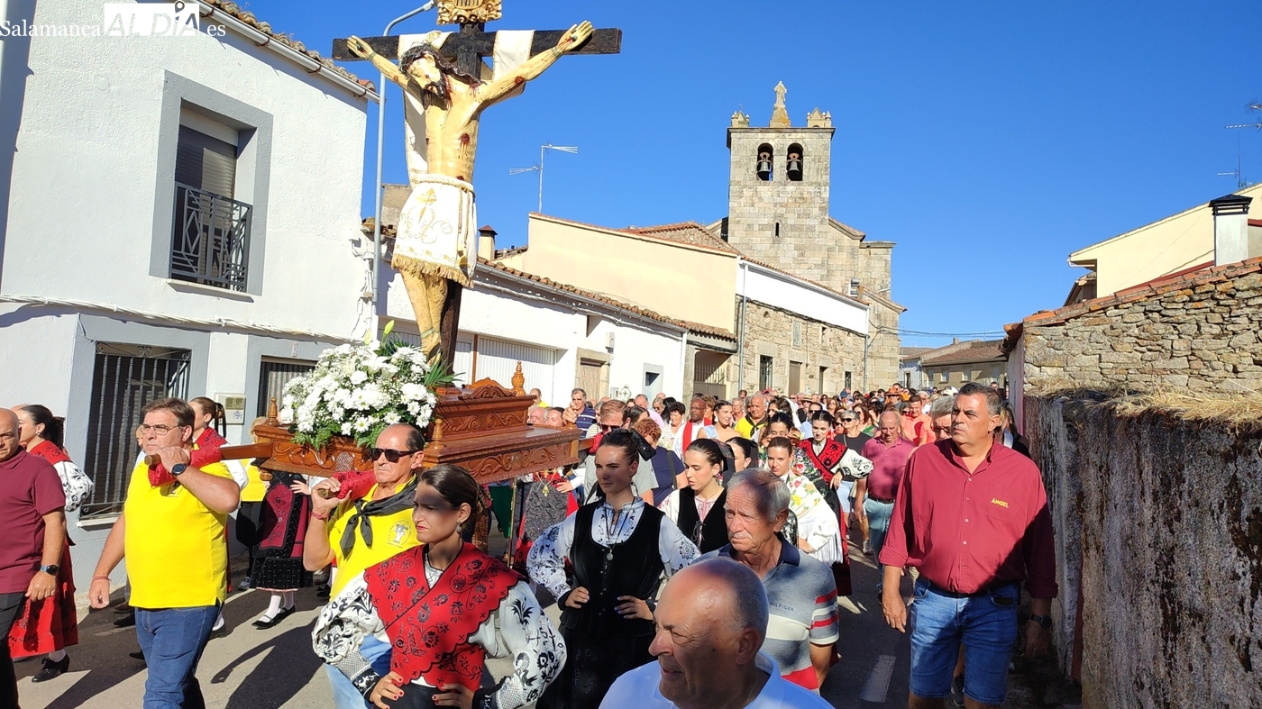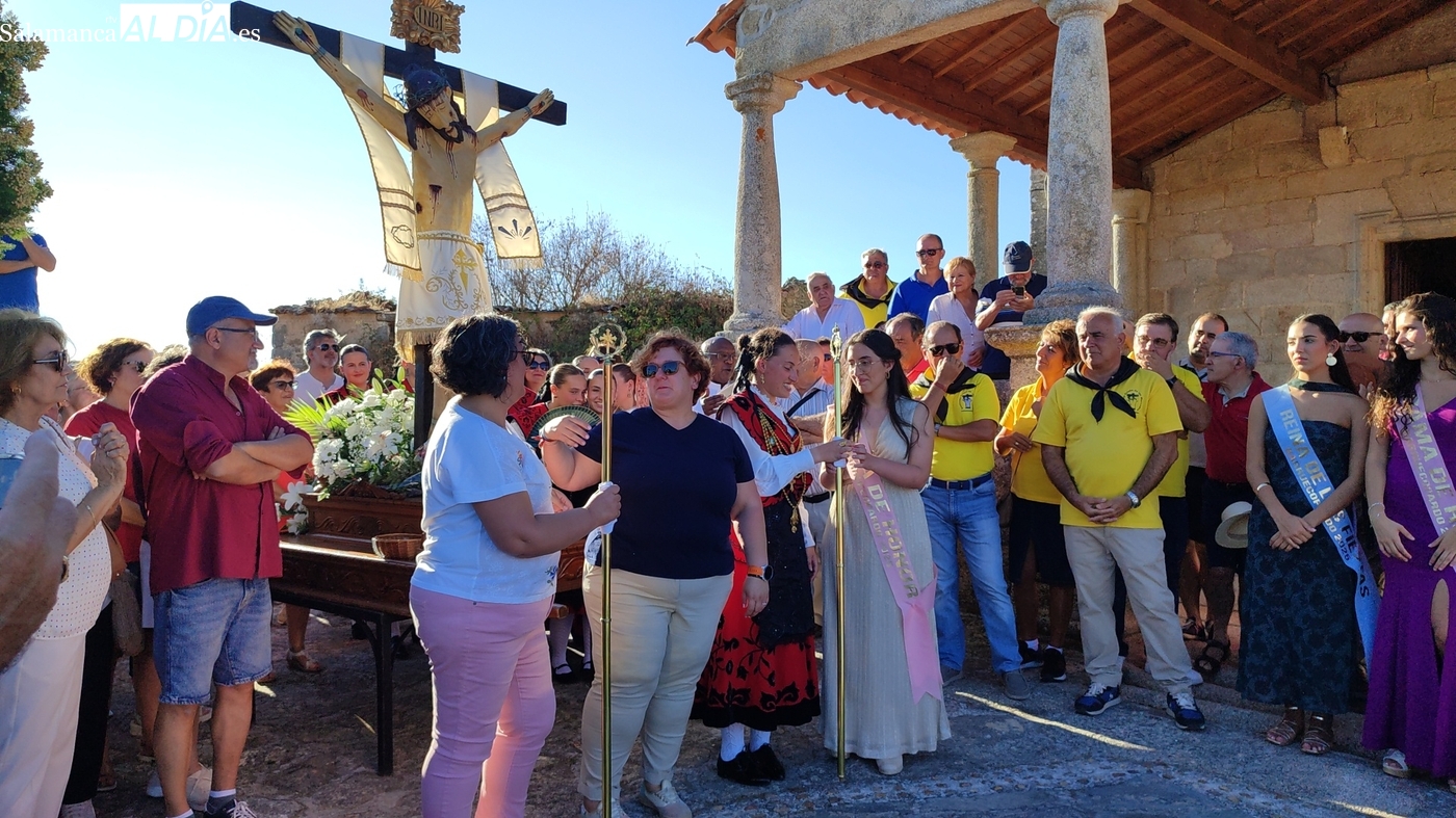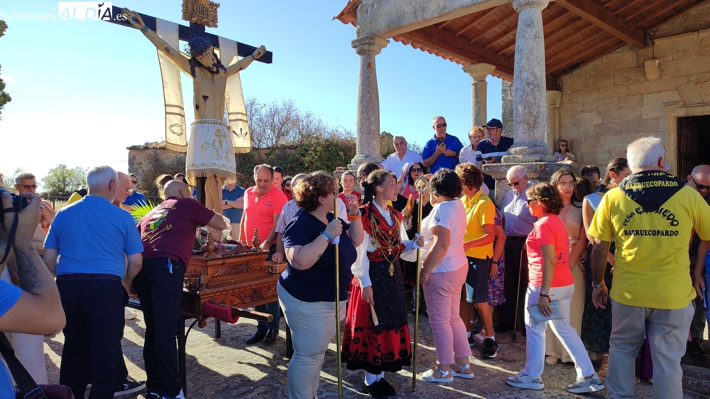 Como cada 14 de septiembre, vecinos e hijos de Barruecopardo acudieron un año más a la cita con el Cristo de las Mercedes para expresarle su devoción, patrón de la localidad y por el que desde el pasado miércoles vienen celebrando distintos eventos y actividades festivas. Este domingo, día grande de las fiestas, tocaban los actos en su honor, que comenzaban por la mañana con una misa y el convite ofrecido por las mayordomas, que lo han sido en el último año y hasta esta tarde, María José Bustillo y María Santamaría Vicente.