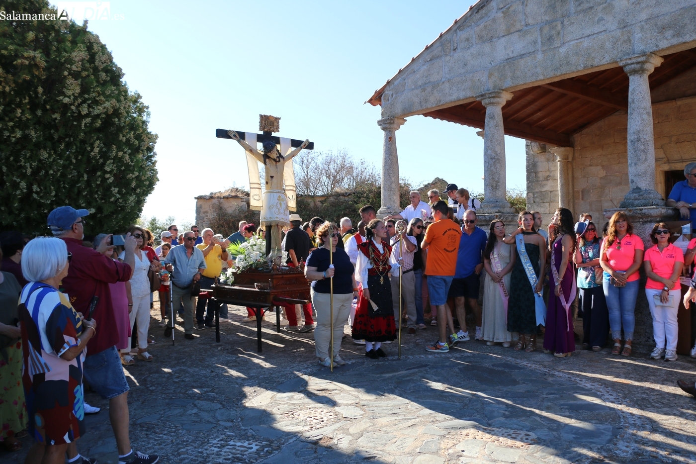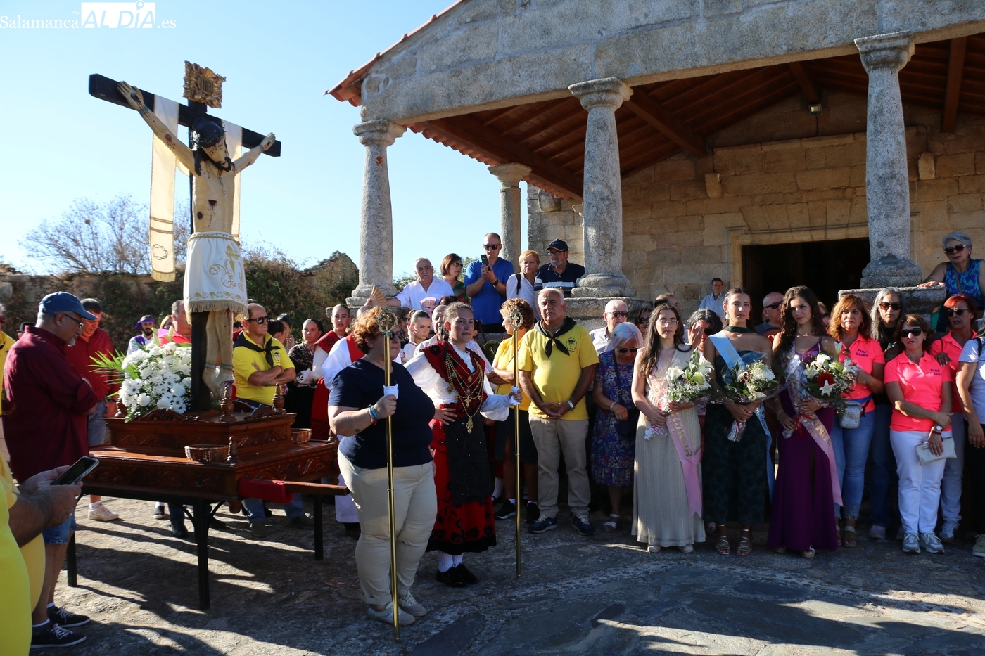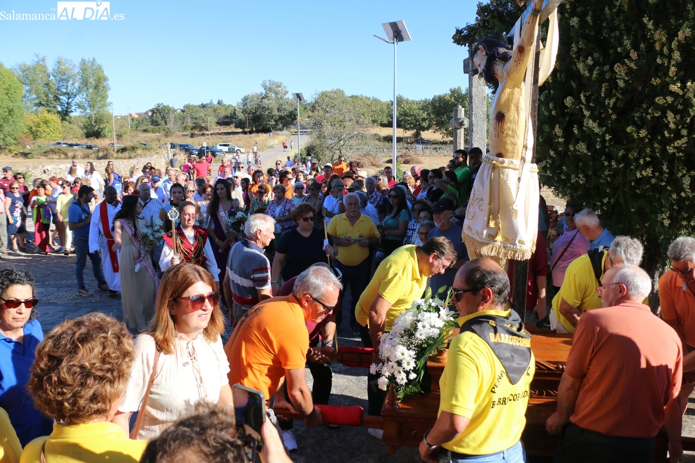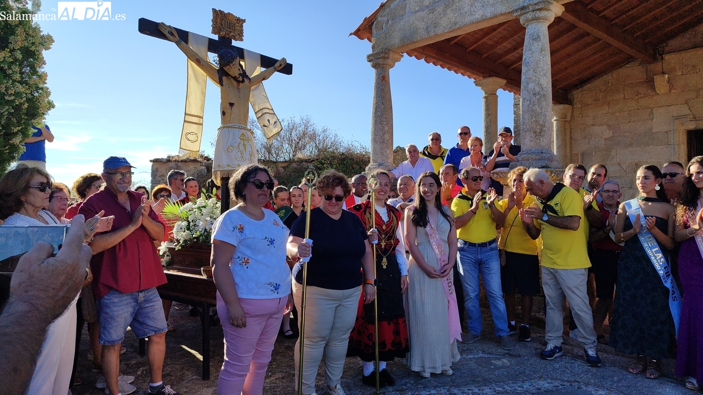 Como cada 14 de septiembre, vecinos e hijos de Barruecopardo acudieron un año más a la cita con el Cristo de las Mercedes para expresarle su devoción, patrón de la localidad y por el que desde el pasado miércoles vienen celebrando distintos eventos y actividades festivas. Este domingo, día grande de las fiestas, tocaban los actos en su honor, que comenzaban por la mañana con una misa y el convite ofrecido por las mayordomas, que lo han sido en el último año y hasta esta tarde, María José Bustillo y María Santamaría Vicente.