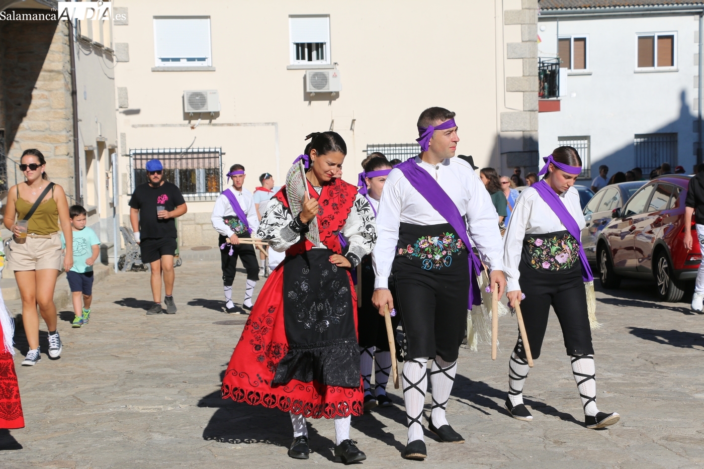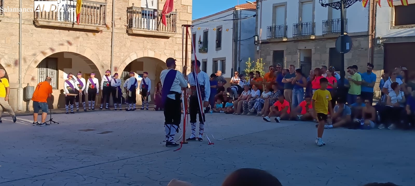 De este modo, la fiesta se trasladaba a la plaza, donde tendría lugar una bonita actuación del nuevo grupo local de folclore, que realizaría un excelente exhibición, por un lado el grupo de paleo, con nuevas danzas, y por ortro, las chicas del cordón, que interpretaron este popular baile charro, todo bajo los sones de ‘Leo’.
