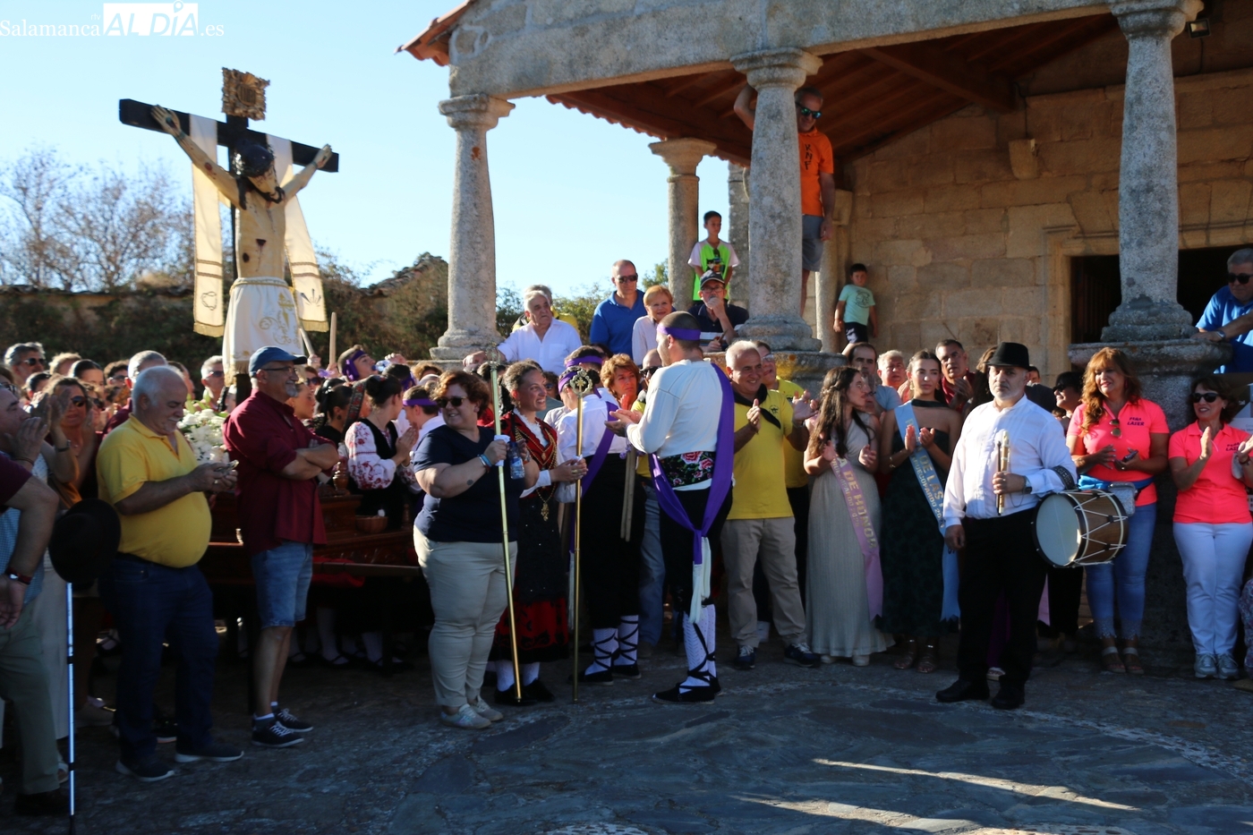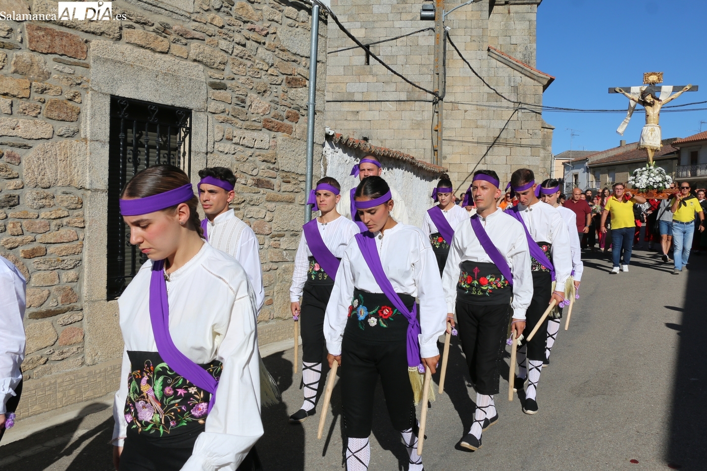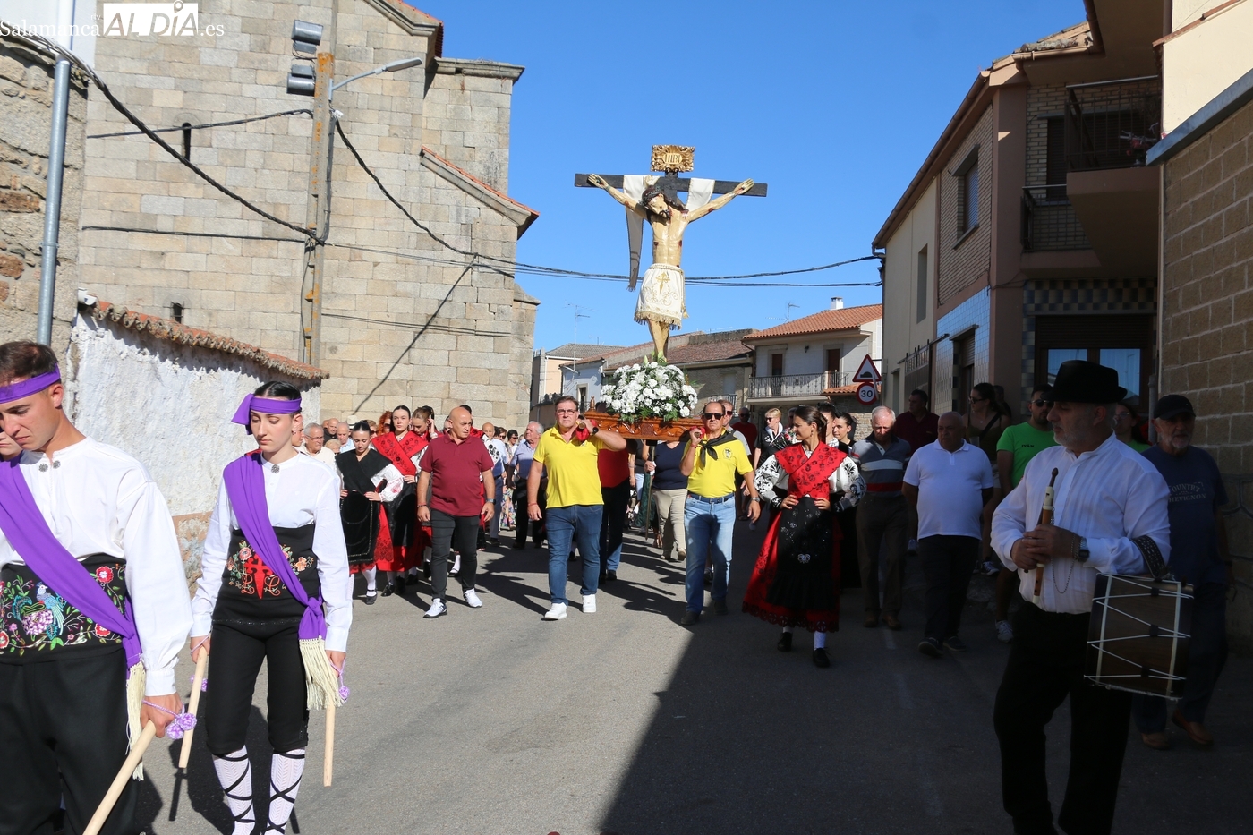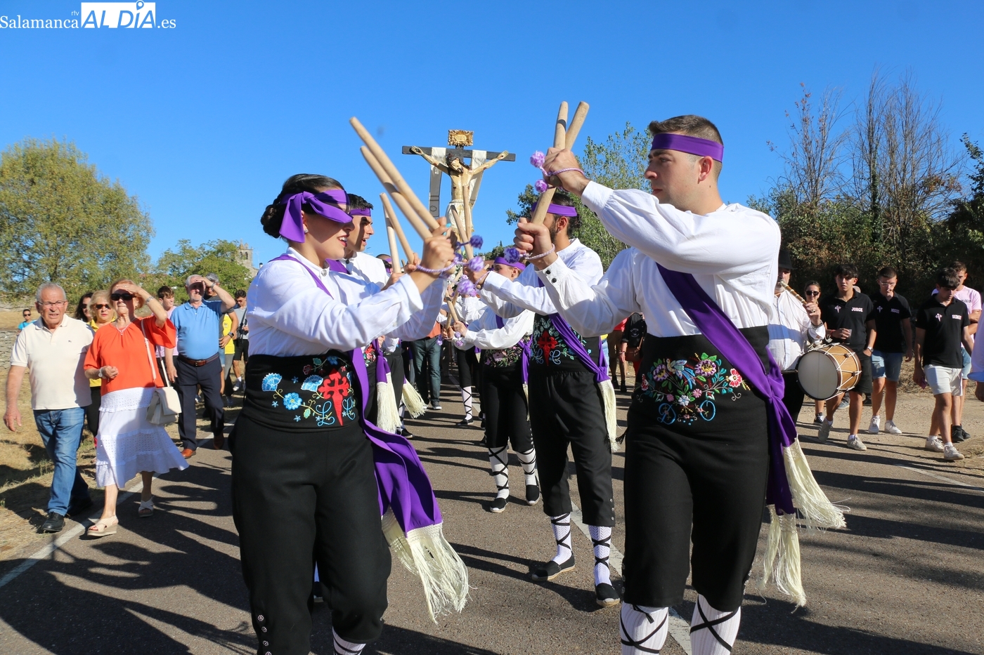 Ya en la tarde, se presentaba 'en sociedad' el grupo local de folclore, un reto en los tiempos que corren, sin jóvenes en los pueblos, y que ha surgido de la mano del tamborilero local Leonardo Alburquerque, como reconocía el alcalde Jesús María Ortiz finalizados los actos en honor al Cristo, por lo que le daba las gracias de manera expresa, también a los chicos y chicas que lo integran y que este 14 de septiembre ponían la nota tradicional en la procesión del patrón camino de su ermita, un acto que fue seguido por decenas de vecinos que no quisieron perderse este extraordinario momento presidido por las mayordomas María José Bustillo y María Santamaría Vicente.