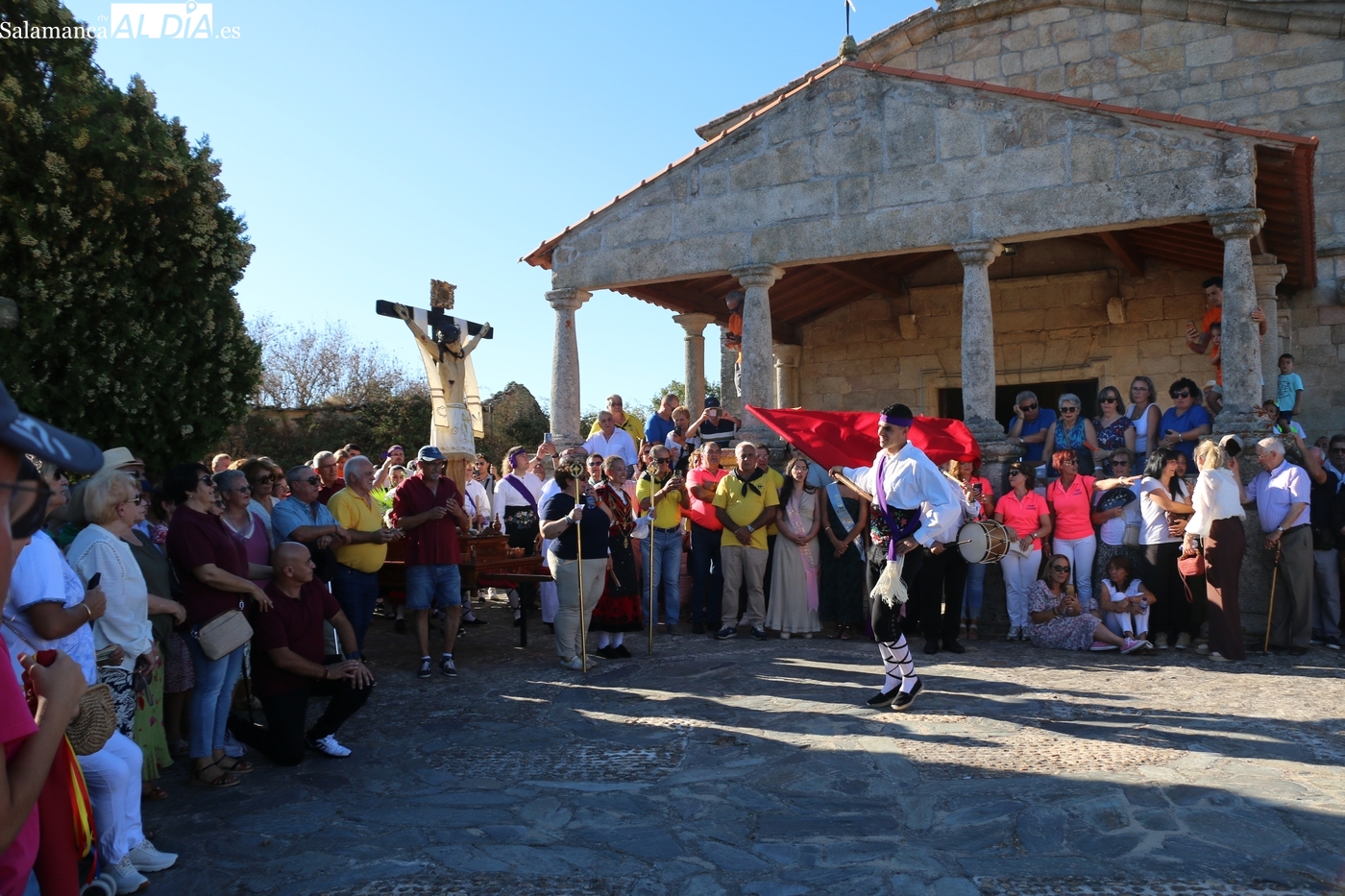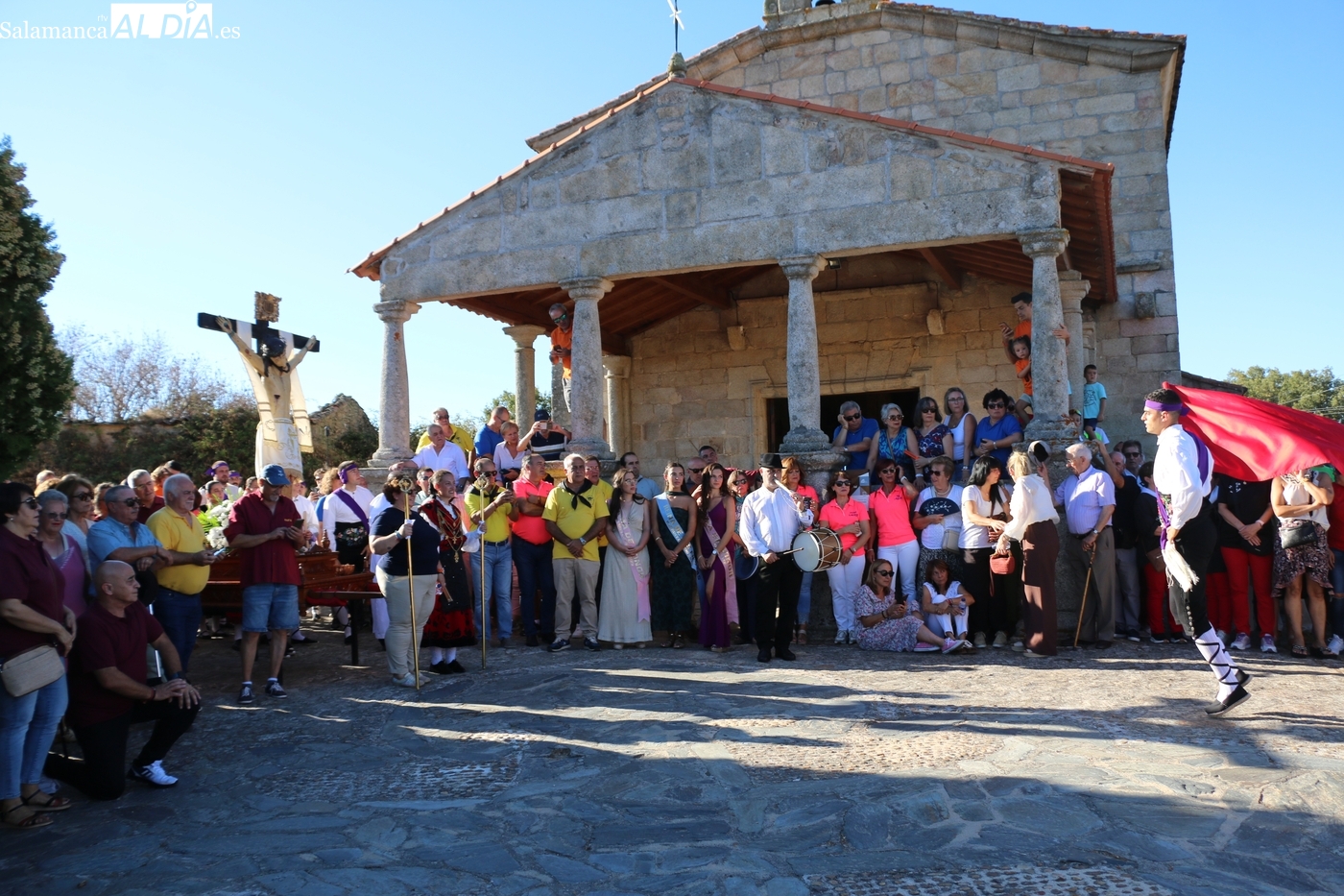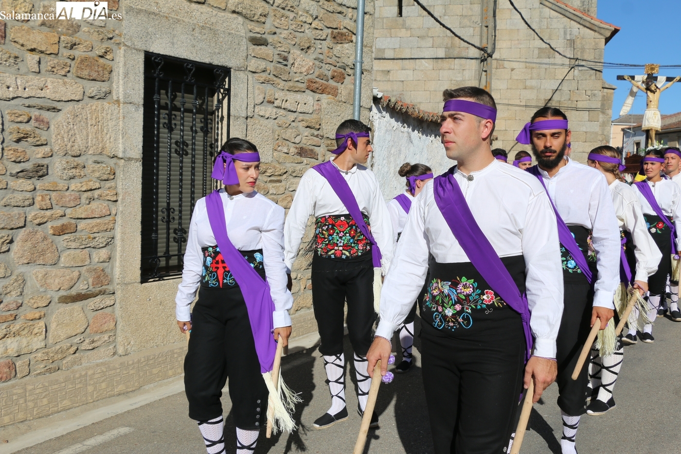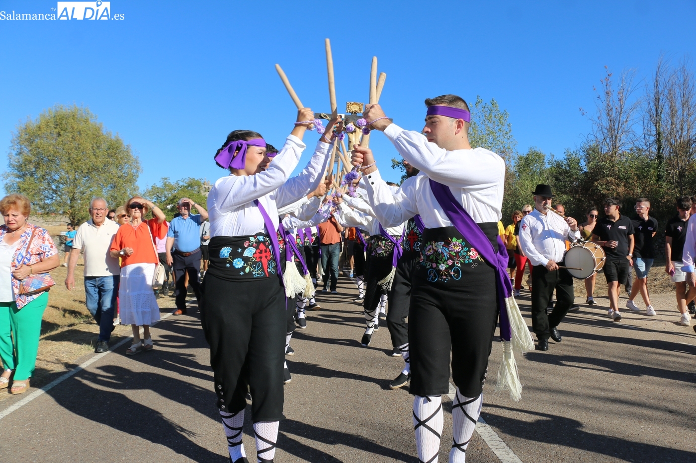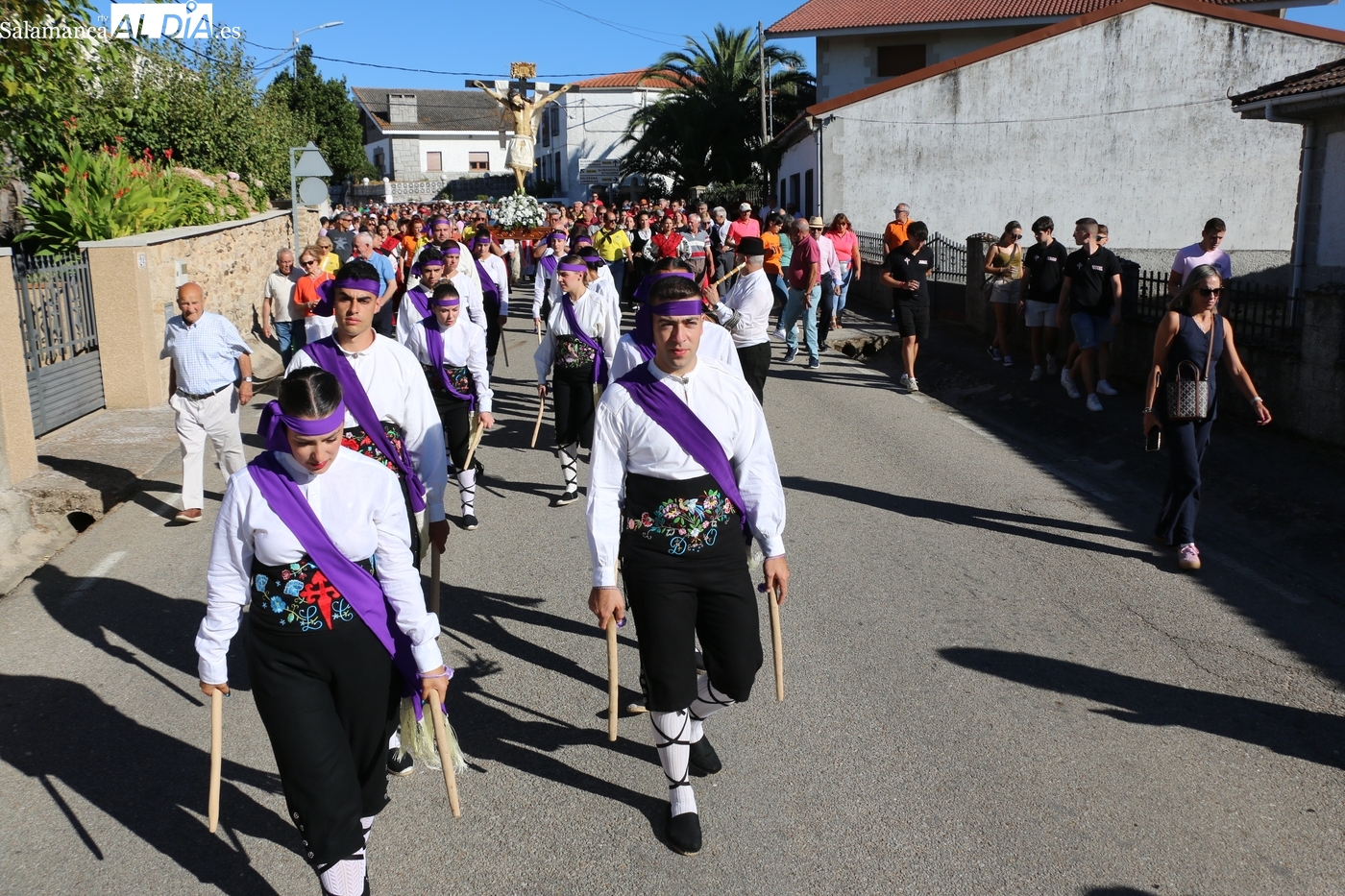 Ya en la tarde, se presentaba 'en sociedad' el grupo local de folclore, un reto en los tiempos que corren, sin jóvenes en los pueblos, y que ha surgido de la mano del tamborilero local Leonardo Alburquerque, como reconocía el alcalde Jesús María Ortiz finalizados los actos en honor al Cristo, por lo que le daba las gracias de manera expresa, también a los chicos y chicas que lo integran y que este 14 de septiembre ponían la nota tradicional en la procesión del patrón camino de su ermita, un acto que fue seguido por decenas de vecinos que no quisieron perderse este extraordinario momento presidido por las mayordomas María José Bustillo y María Santamaría Vicente.