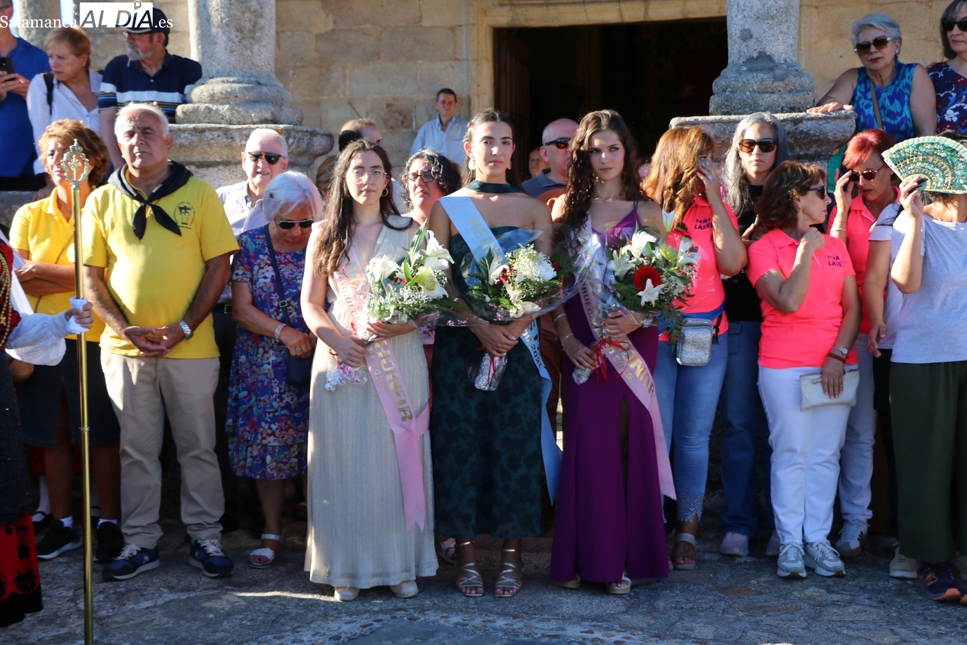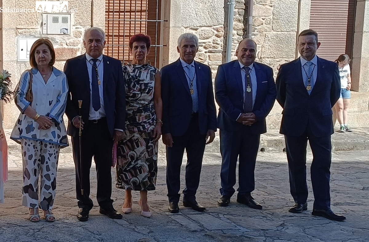 A los actos religiosos de la mañana asistían, además de las autoridades locales, con el alcalde Jesús María Ortiz al frente, la subdelegada del Gobierno, Rosa López, una comitiva que completaban la pregonera de estas fiestas, Queti Prieto, y la Corte de Honor encabezada por la reina Violeta Mellado Sánchez y las damas Sonsoles Santamaría Vicente y Laura Sánchez Alburquerque.