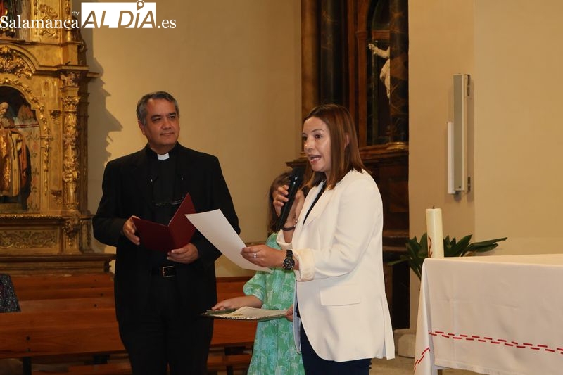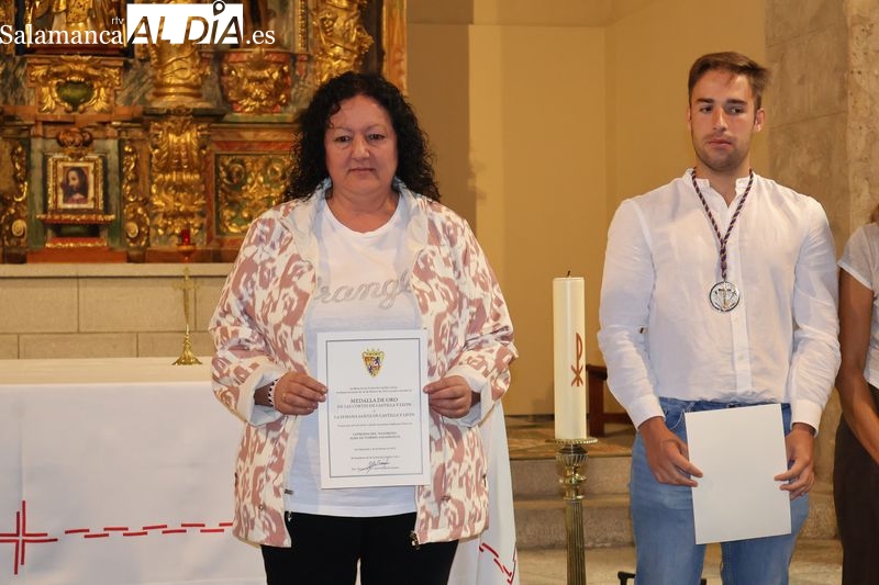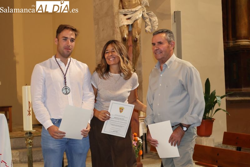 A continuación se llevó a cabo la entrega de diplomas a las cofradías de la Semana Santa de Alba de Tormes, en reconocimiento a su labor de difusión de la fe y custodia de la tradición. La secretaria de las Cortes de Castilla y León, Rosa María Esteban, acompañada del párroco, fue la encargada de hacer entrega de las distinciones.