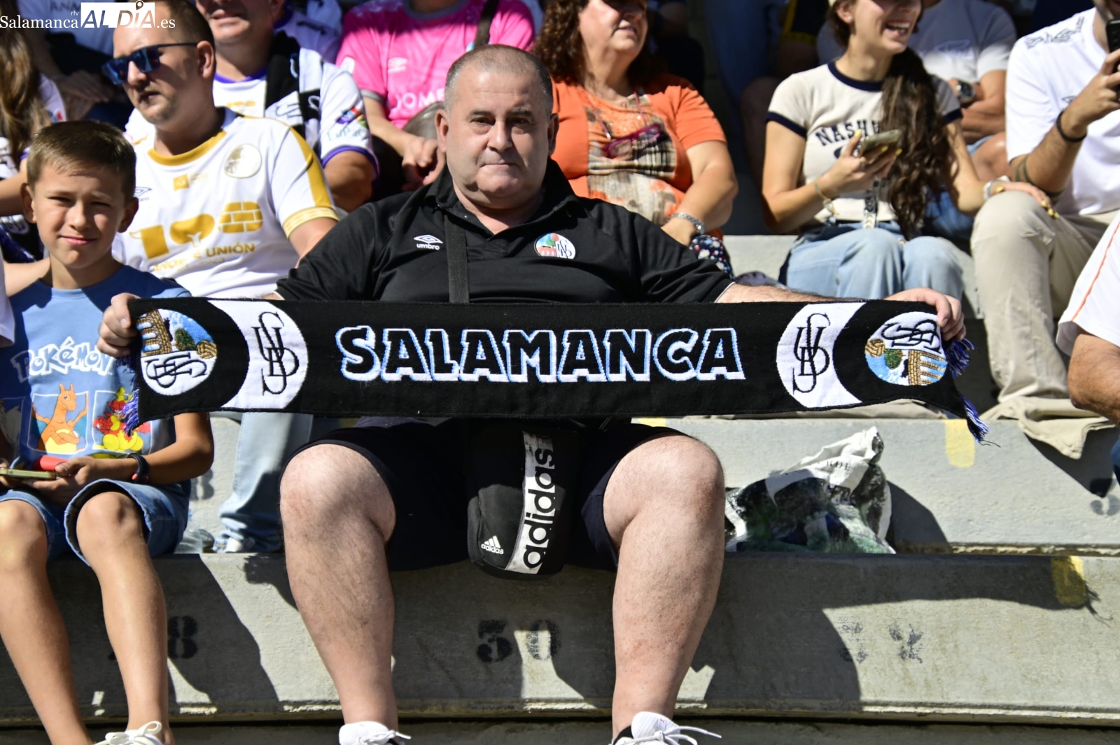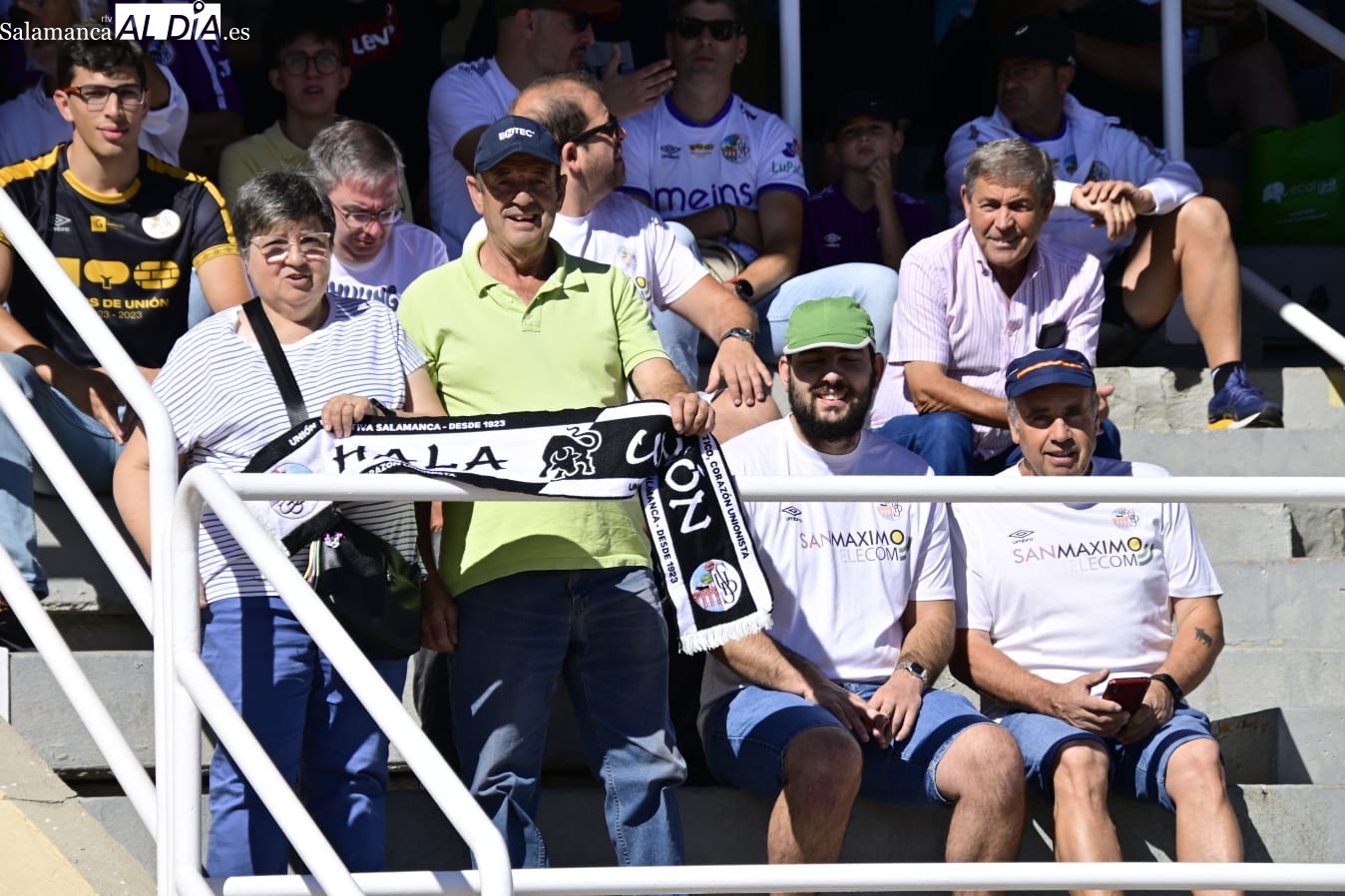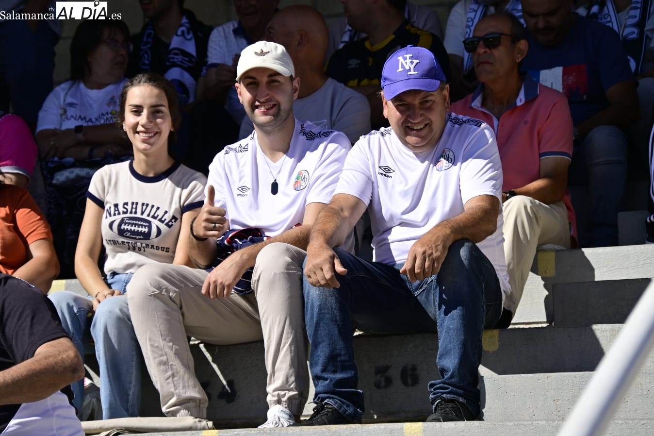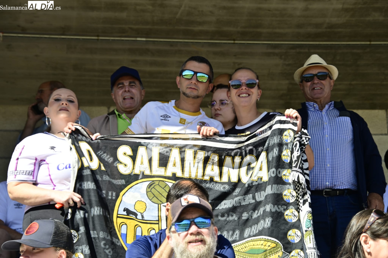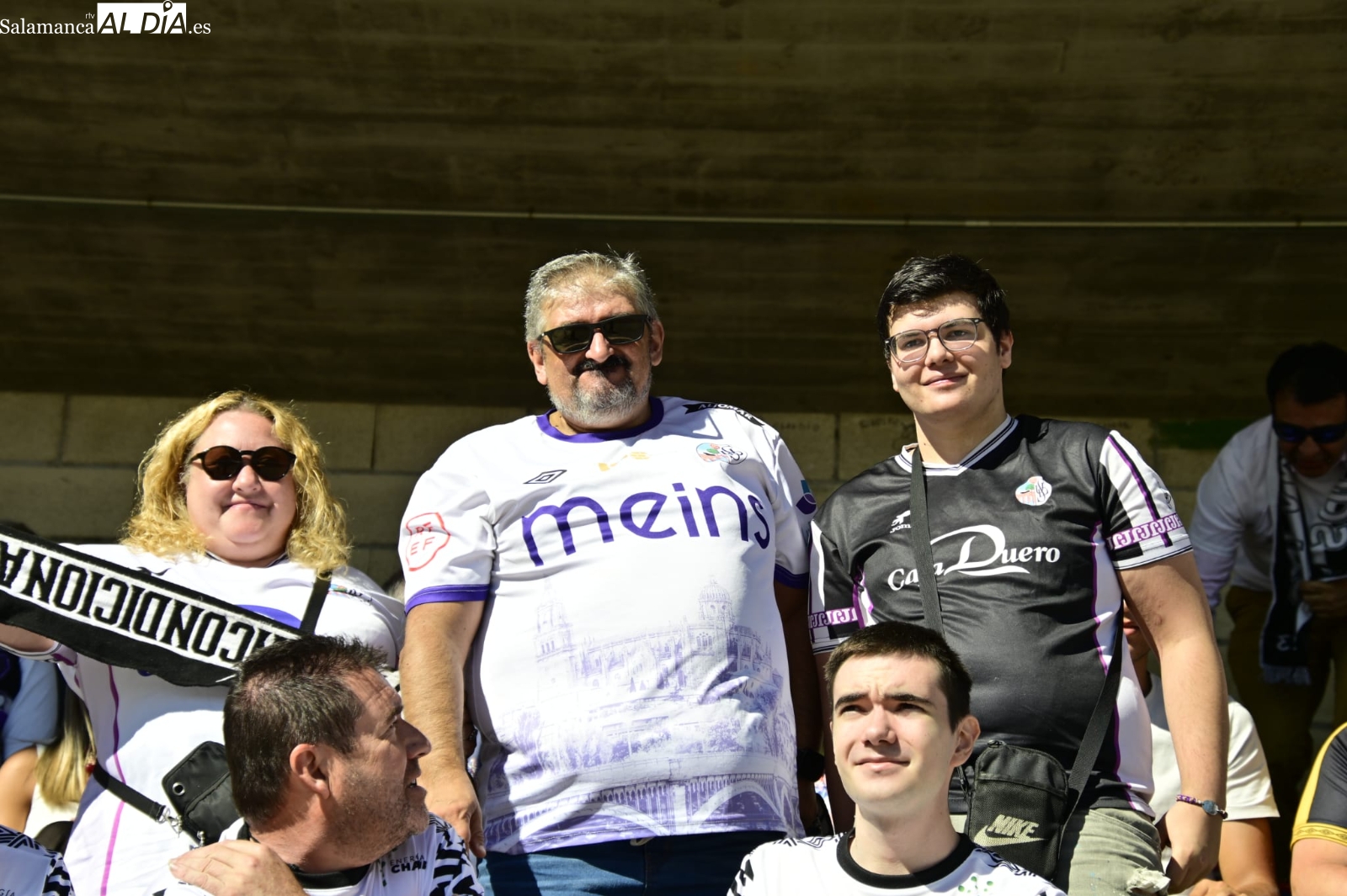 La afición del Salamanca UDS también ha debutado en Las Pistas este fin de semana. Asimismo, los seguidores blanquinegros han acudido a escasos metros del Helmántico para ver el primer partido de los suyos como locales.