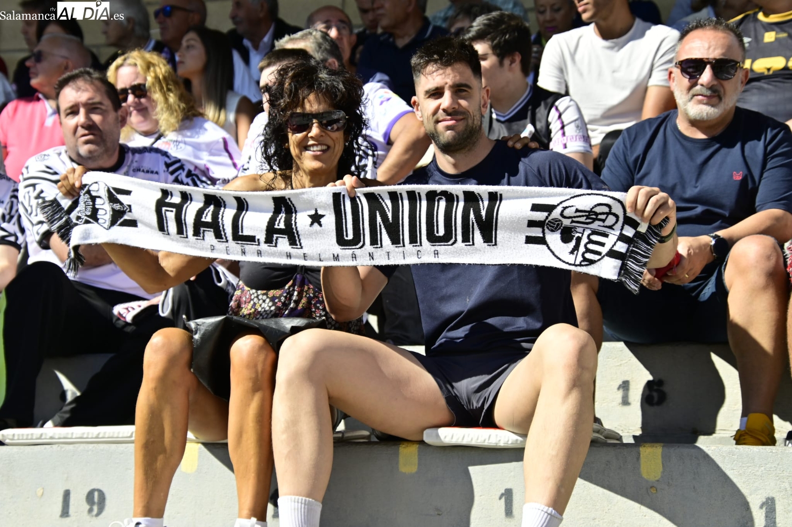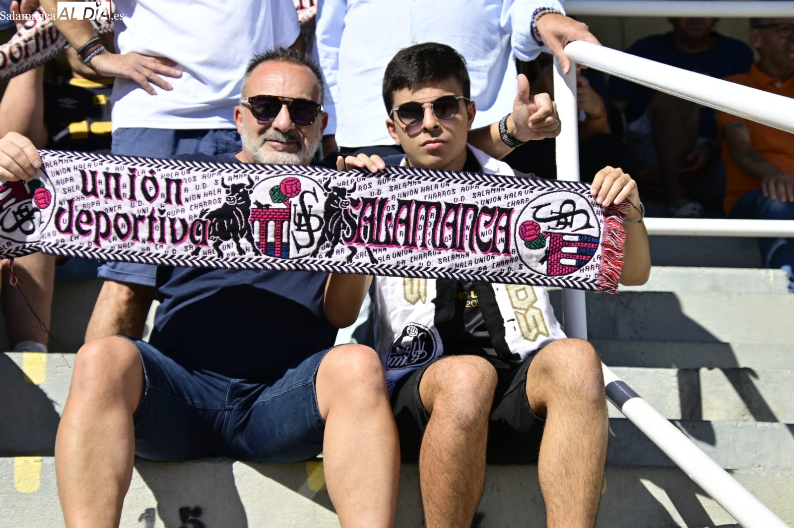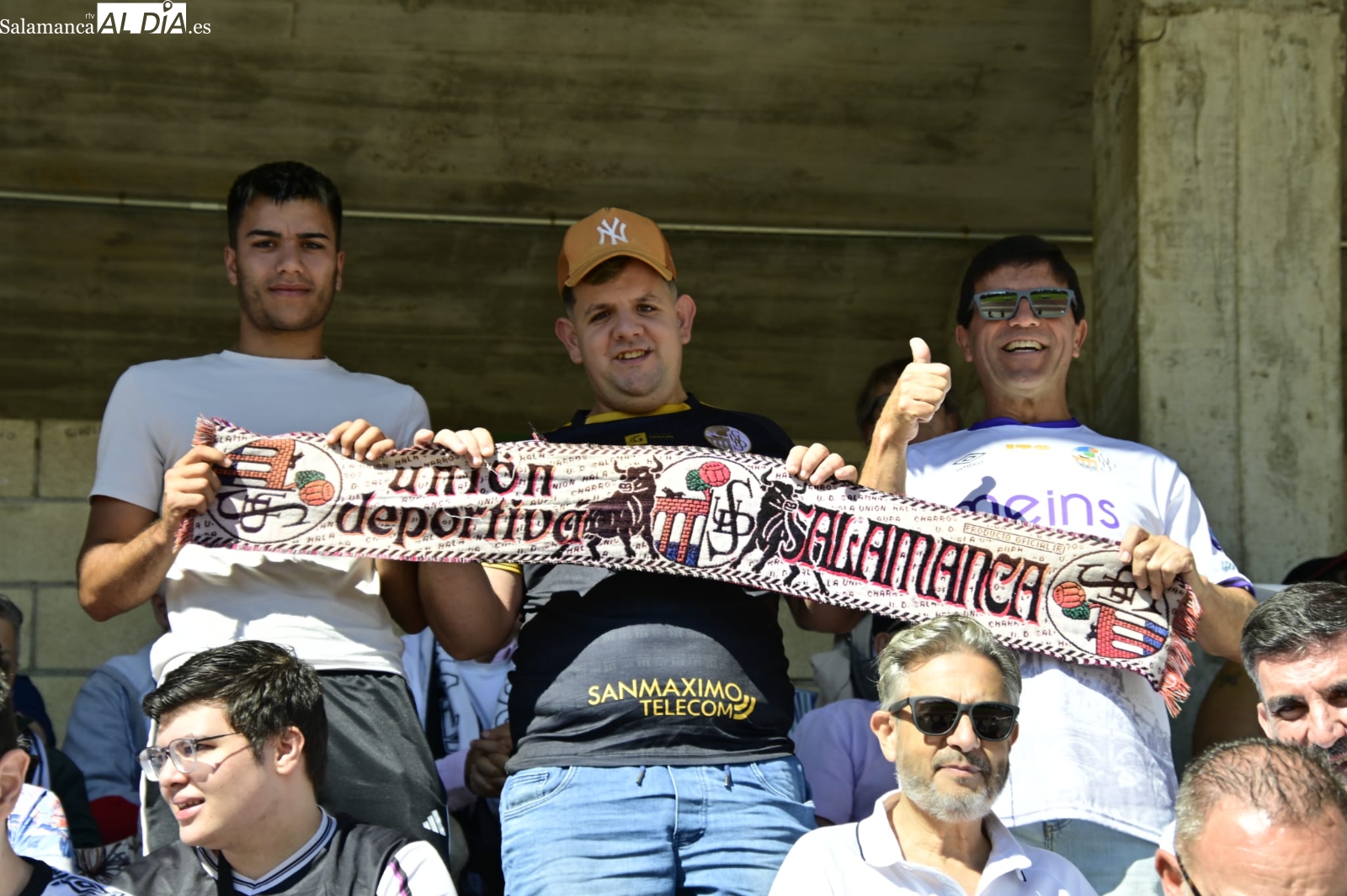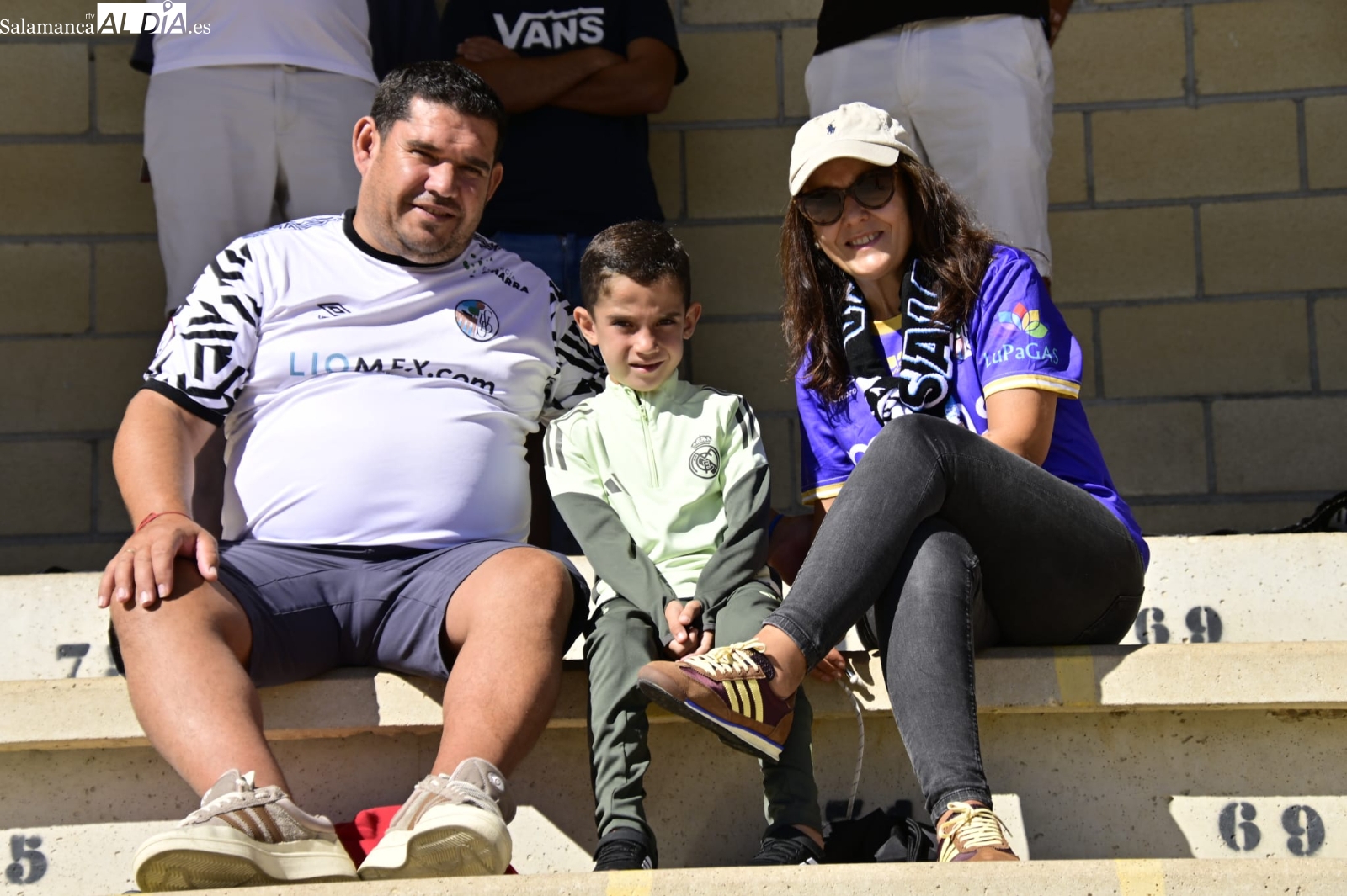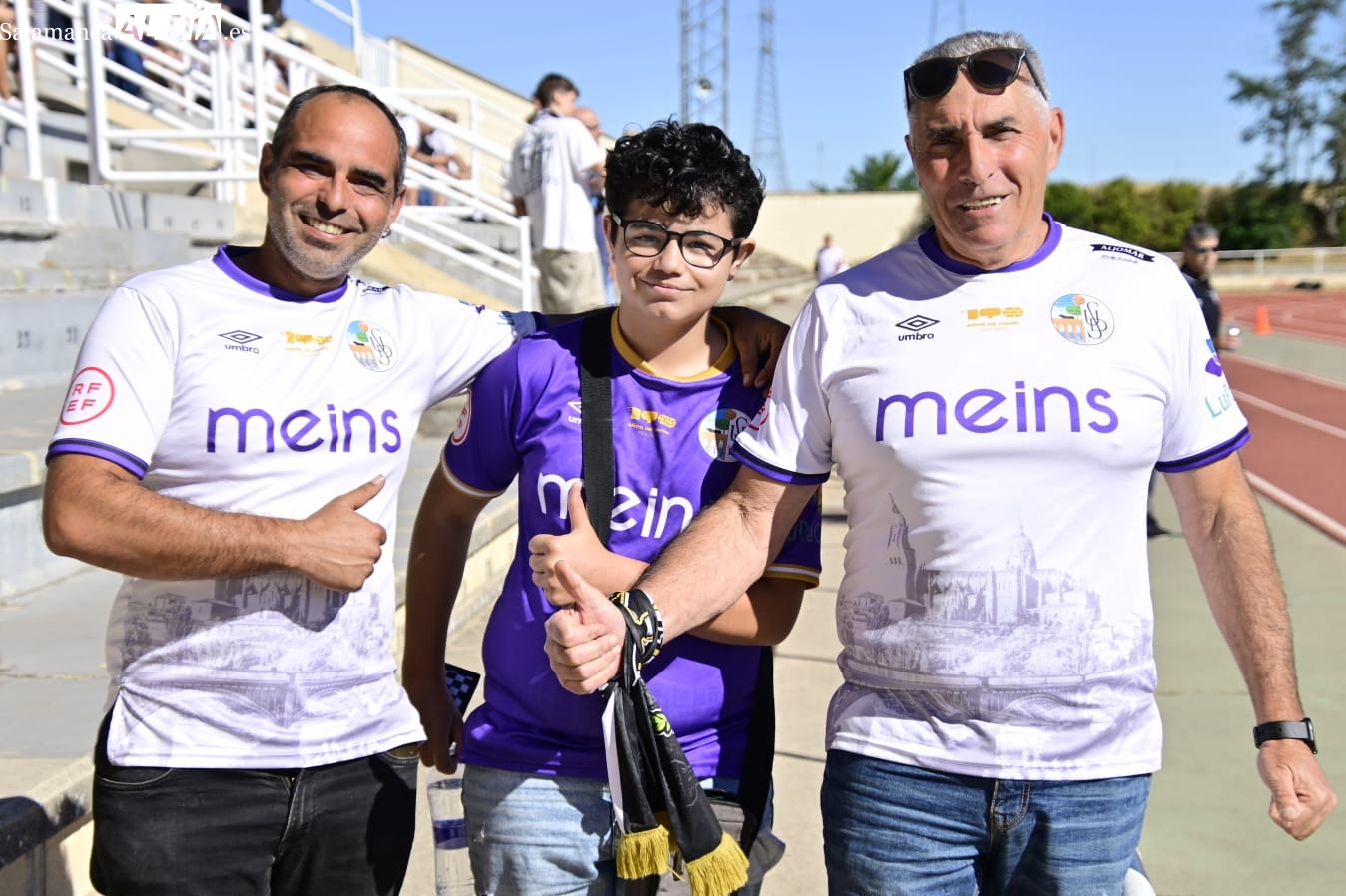 La afición del Salamanca UDS también ha debutado en Las Pistas este fin de semana. Asimismo, los seguidores blanquinegros han acudido a escasos metros del Helmántico para ver el primer partido de los suyos como locales.