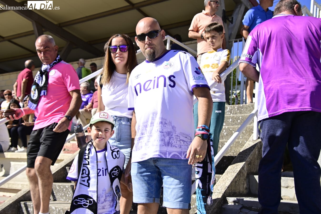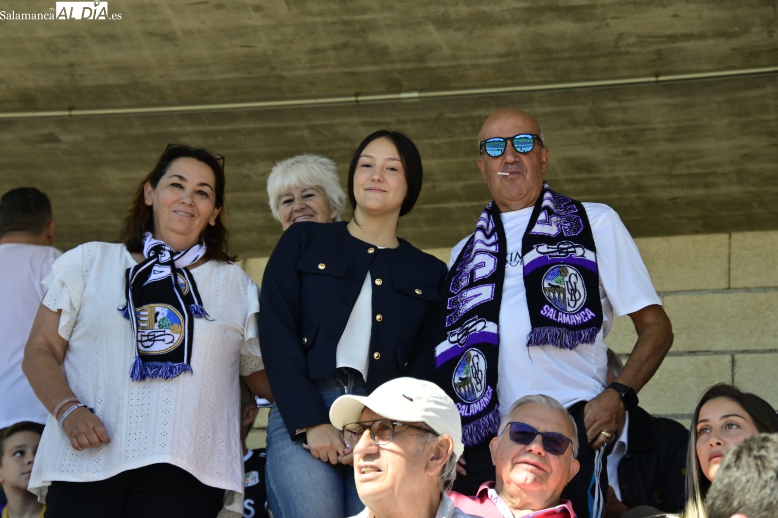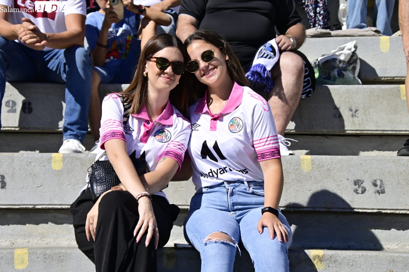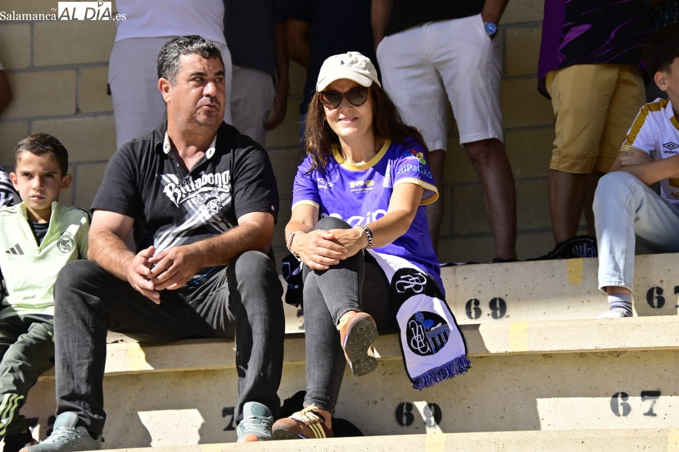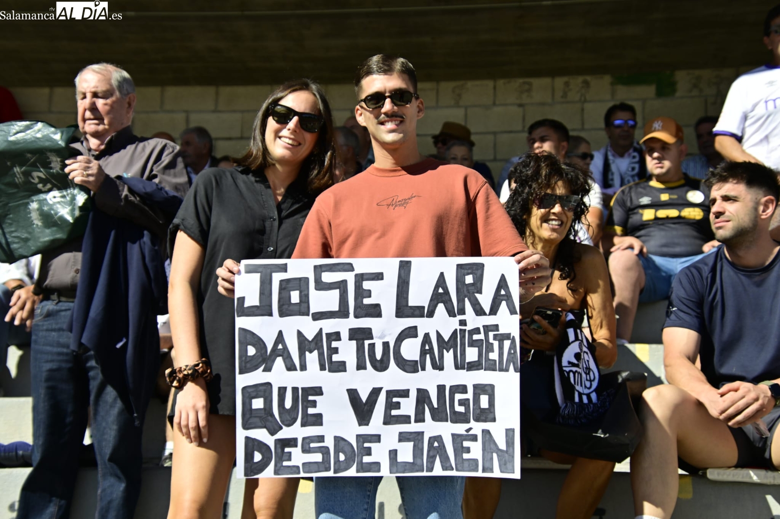La afición del Salamanca UDS también ha debutado en Las Pistas este fin de semana. Asimismo, los seguidores blanquinegros han acudido a escasos metros del Helmántico para ver el primer partido de los suyos como locales.