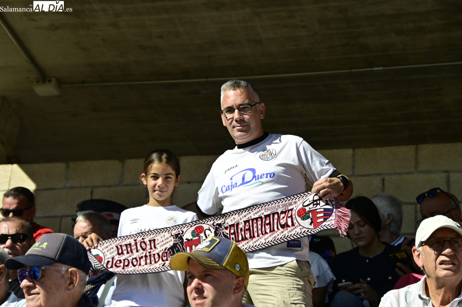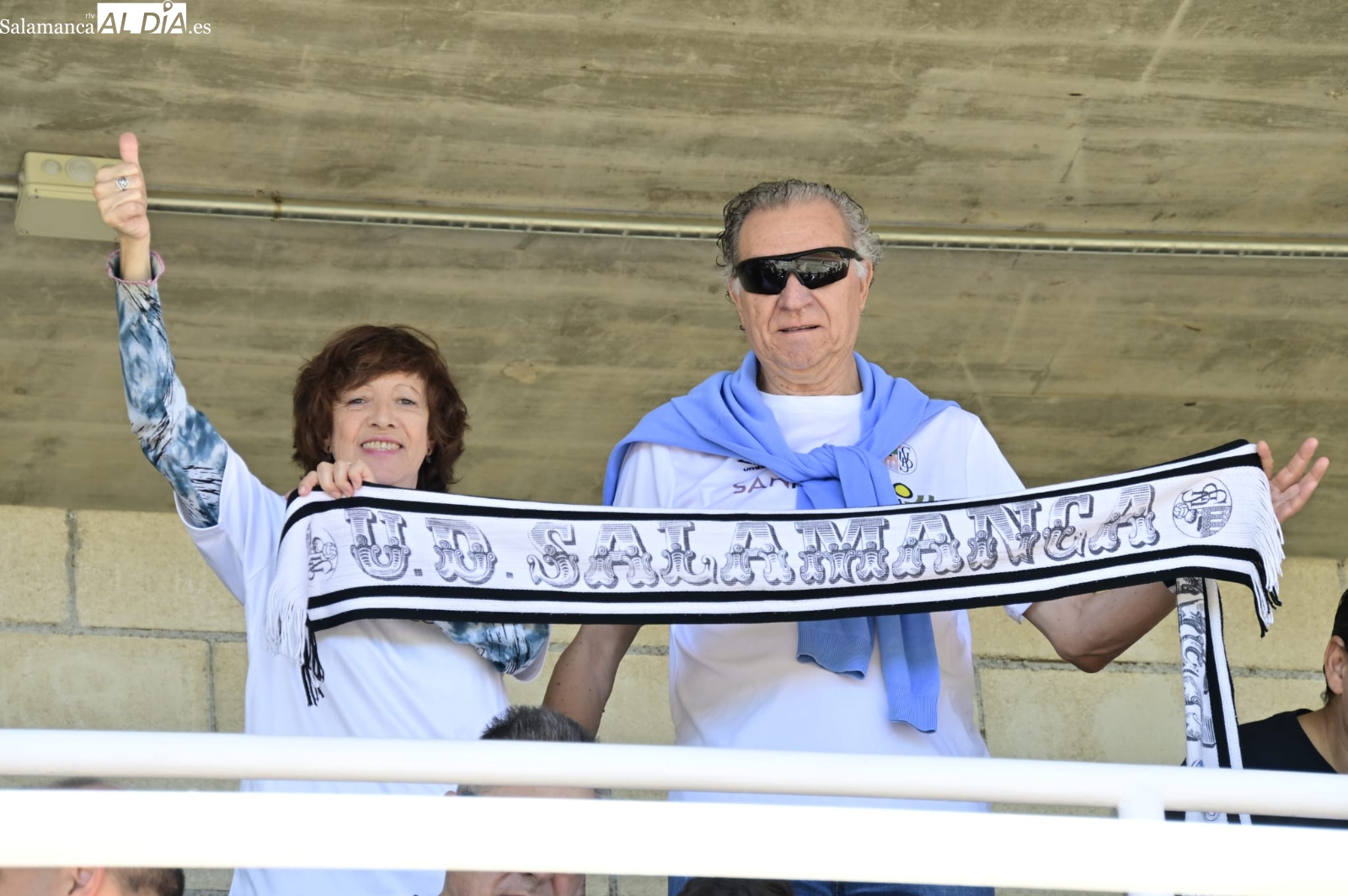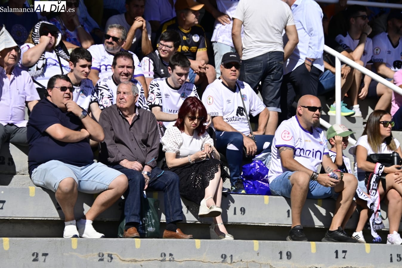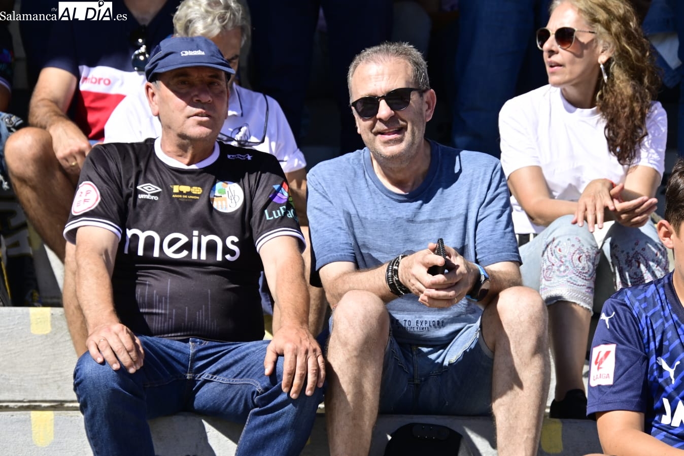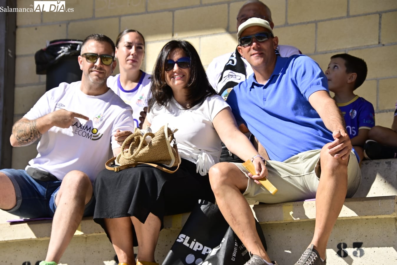 La afición del Salamanca UDS también ha debutado en Las Pistas este fin de semana. Asimismo, los seguidores blanquinegros han acudido a escasos metros del Helmántico para ver el primer partido de los suyos como locales.