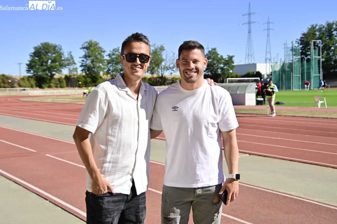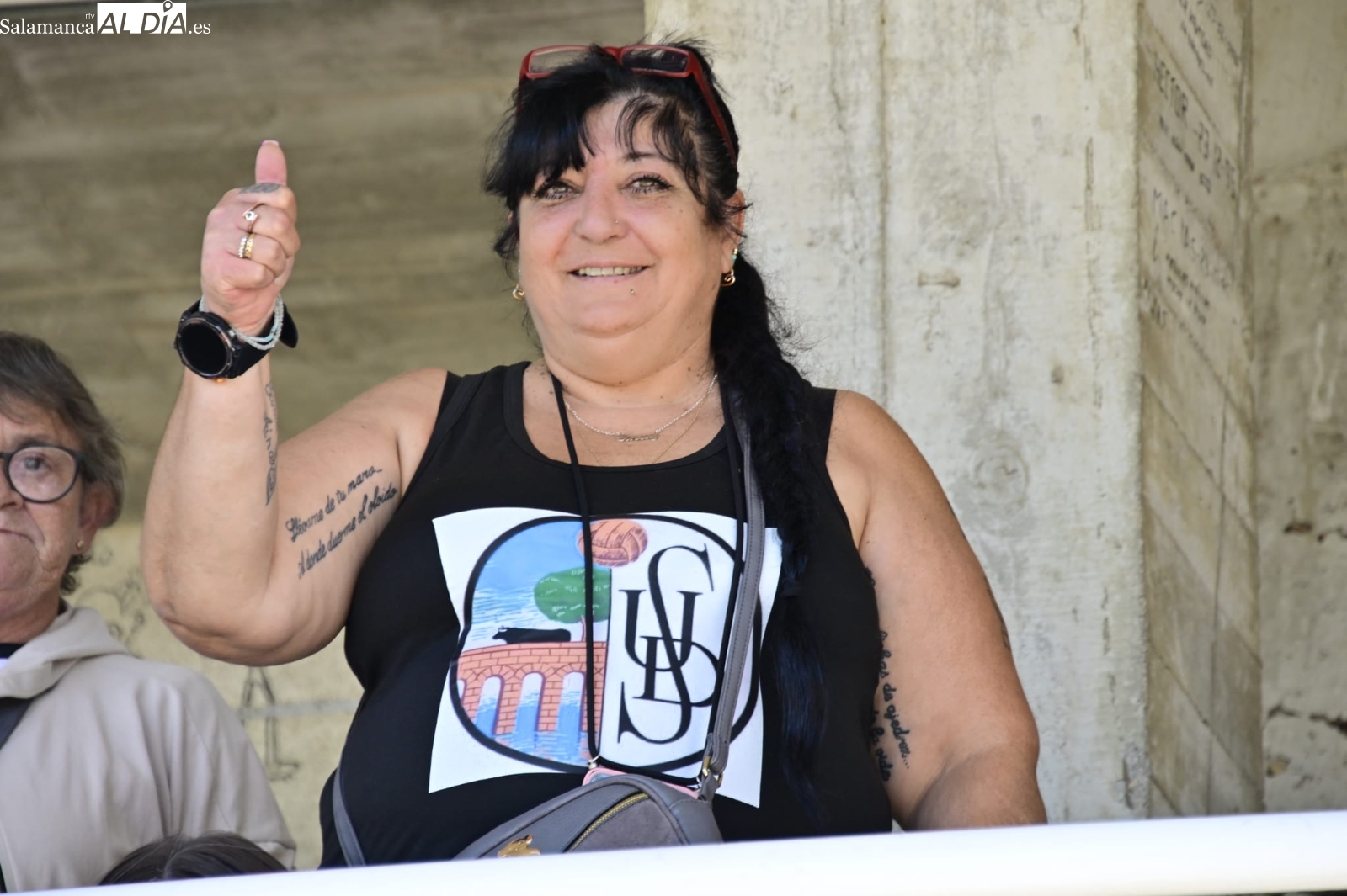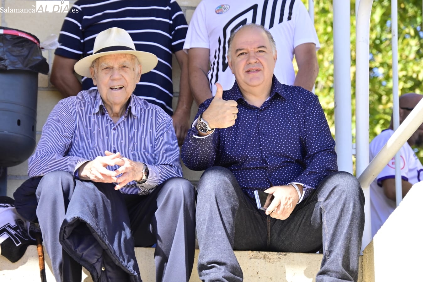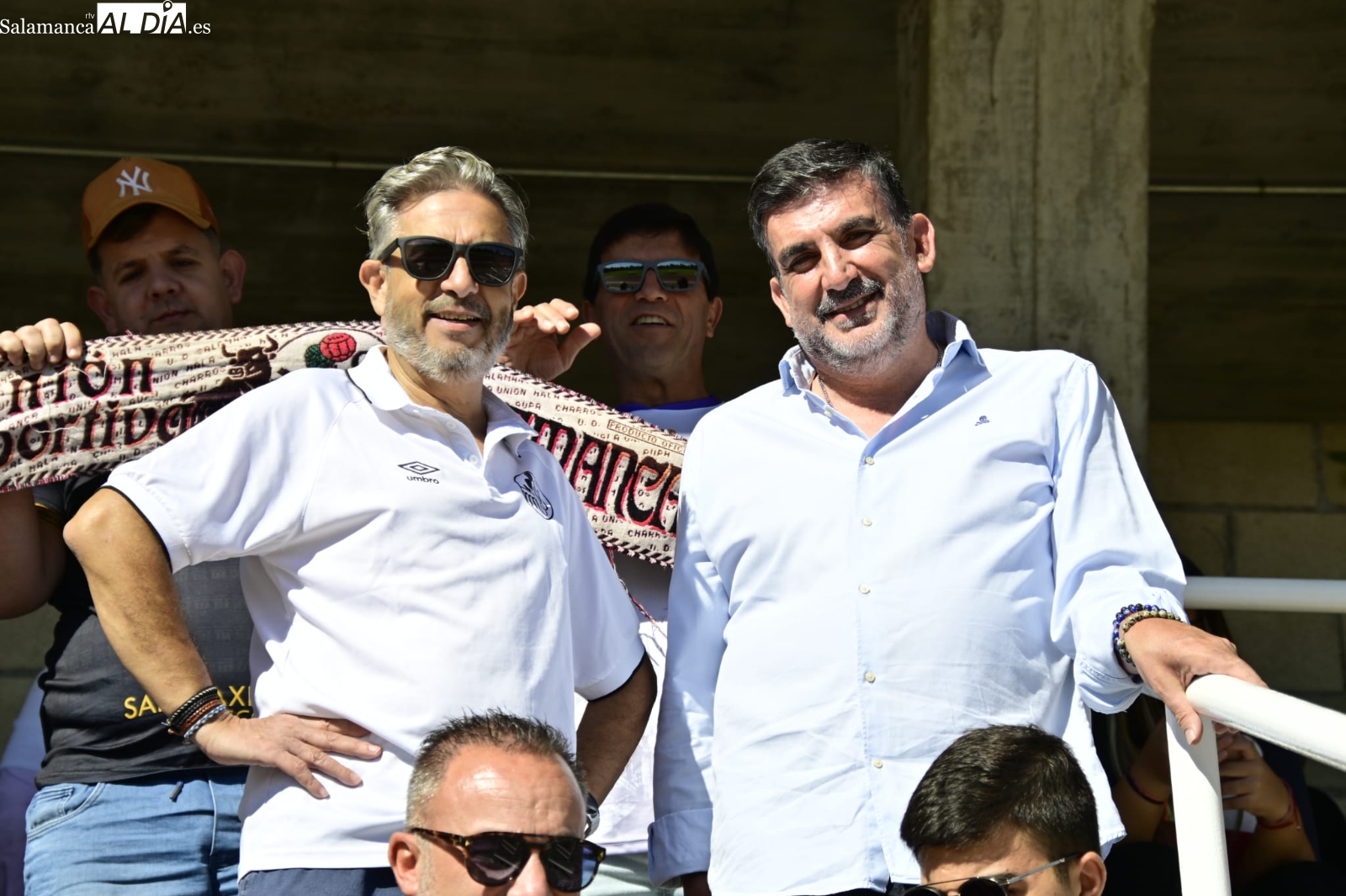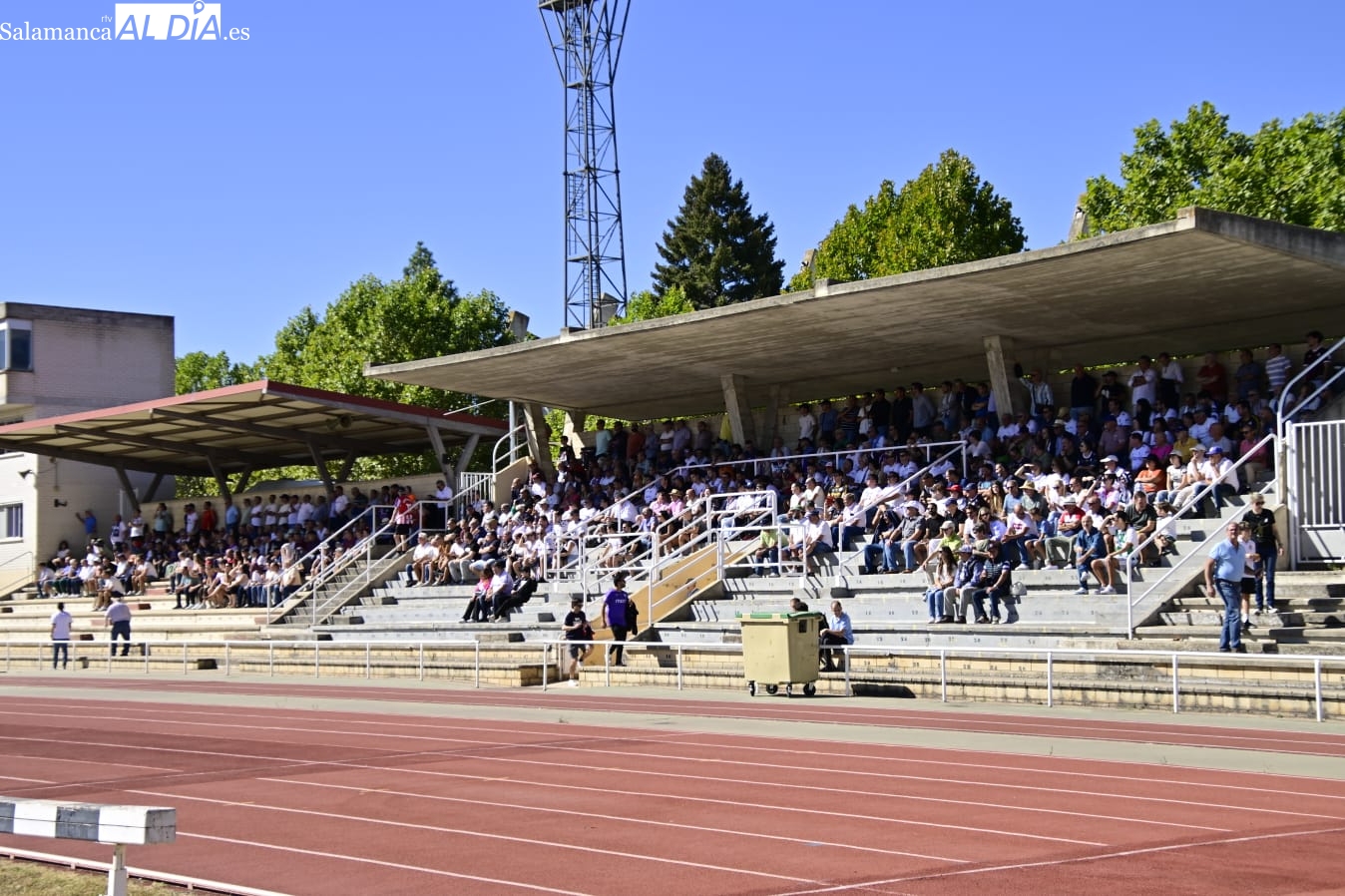 La afición del Salamanca UDS también ha debutado en Las Pistas este fin de semana. Asimismo, los seguidores blanquinegros han acudido a escasos metros del Helmántico para ver el primer partido de los suyos como locales.