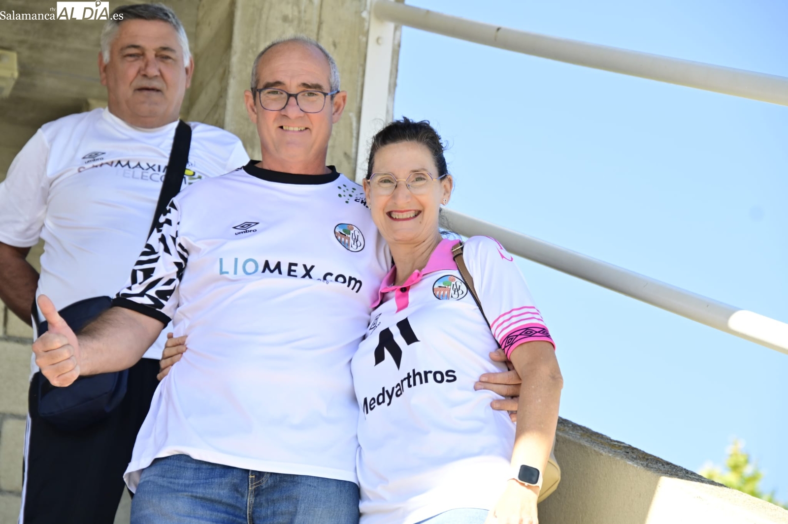 Los seguidores blanquinegros han acudido a escasos metros del Helmántico para ver el primer partido de los suyos como locales