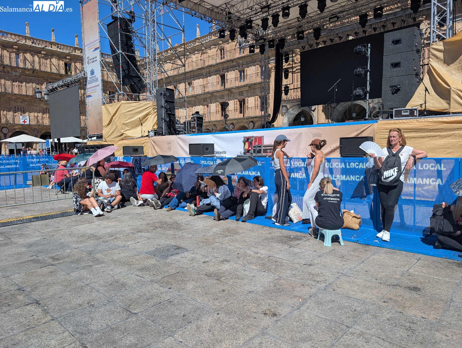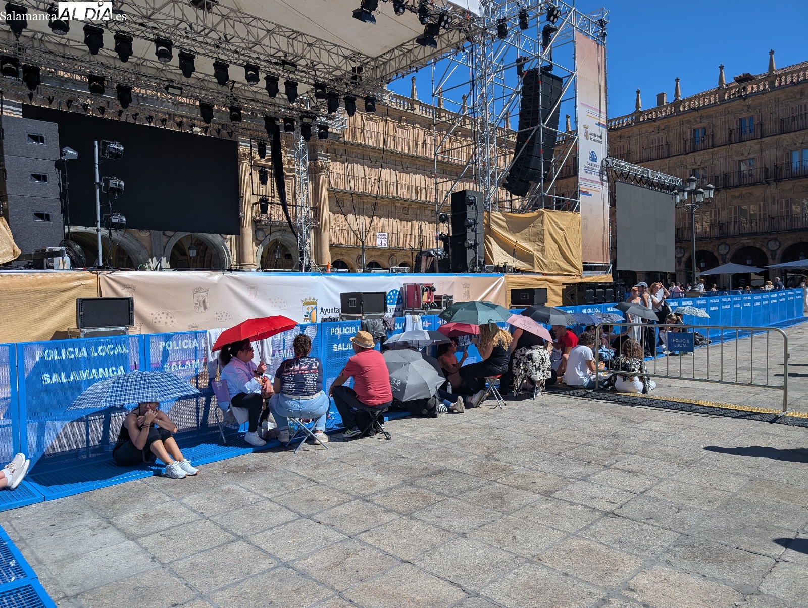 A pesar de que el concierto no comenzará hasta las 22:00 horas, grupos de admiradores ya se han instalado en las primeras filas frente al escenario, una estampa que evidencia la gran expectación que ha despertado la visita del músico a la capital charra.