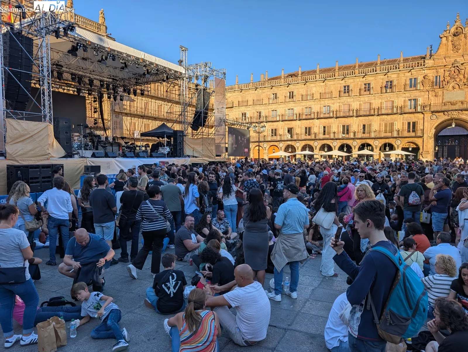 La Plaza Mayor de Salamanca ya respira ambiente de concierto a varias horas de que comience la actuación. Desde primera hora de esta mañana de este domingo, 14 de septiembre, los primeros seguidores del la banda Europe han comenzado a congregarse en el ágora salmantina para asegurarse una ubicación privilegiada de cara al esperado recital, como es el caso de Laura, una salmantina que lleva desde las 8 de la mañana y con la que hemos hablado.