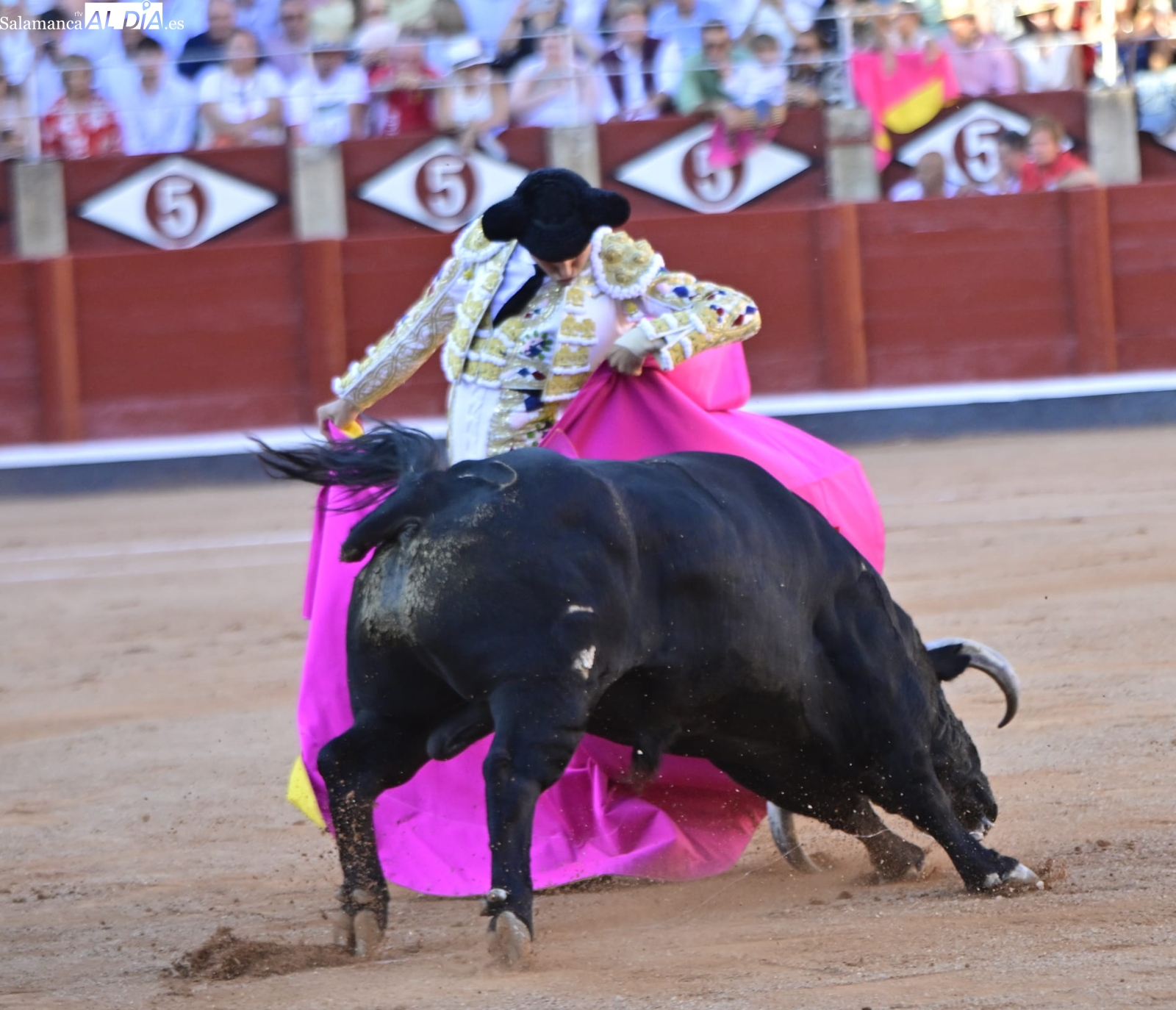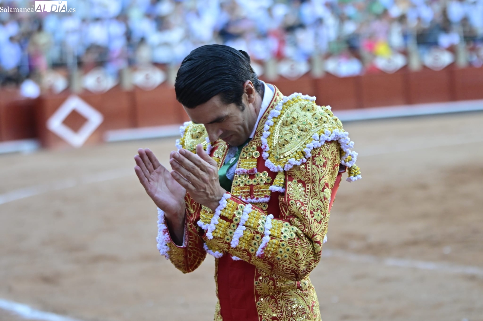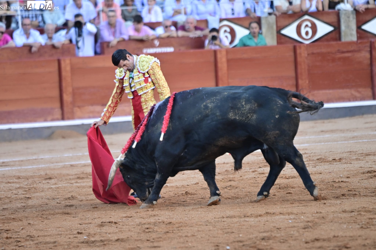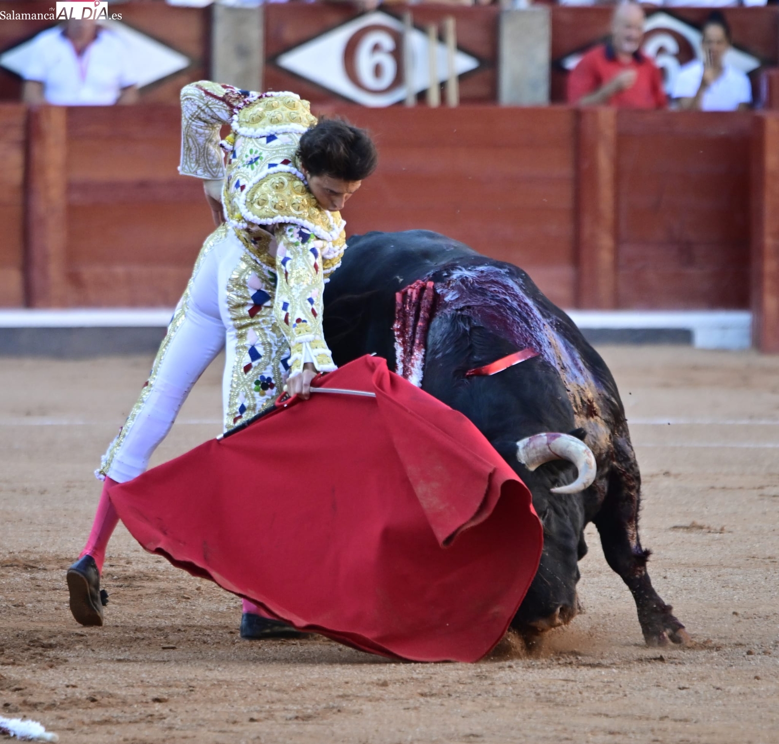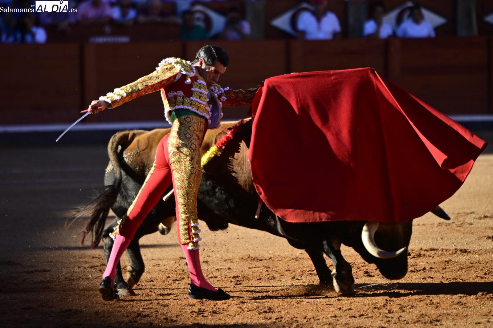 Ese fue el momento álgido de la función. El otro fue la faena de Juan Ortega al segundo de la tarde. Una obra delicada y primorosa frente a una embestida de dulce. Paró el tiempo el trianero en varios muletazos, sobre todo al natural, frente a un 'Afrutado' que fue el toro ideal para Ortega. El inicio de faena, que será recordado durante tiempo, comenzó con la muleta plegada, para dibujar un molinete y seguir toreando con ayudados por abajo antes de un cambio de mano delicatessen. Oreja de peso en su presentación en Salamanca. Frente al quinto dejó detalles en una faena demasiado larga frente al peor del envío de Garcigrande en la que intentó hacer todo siempre con verdad y muy despacio.