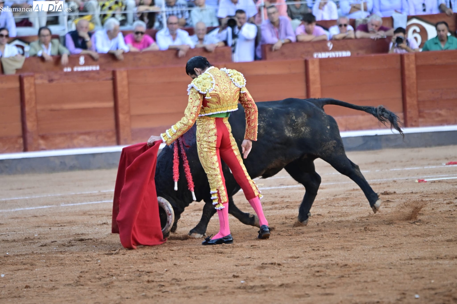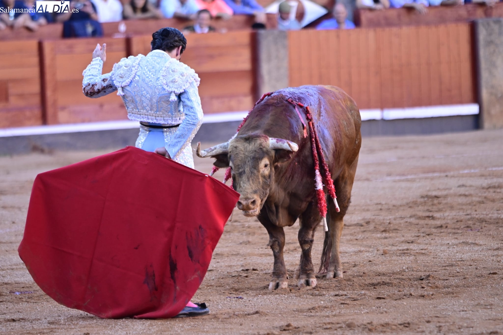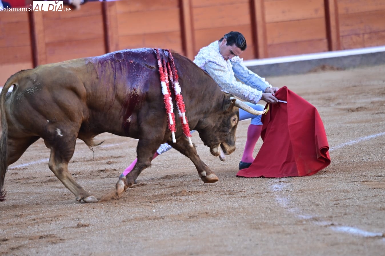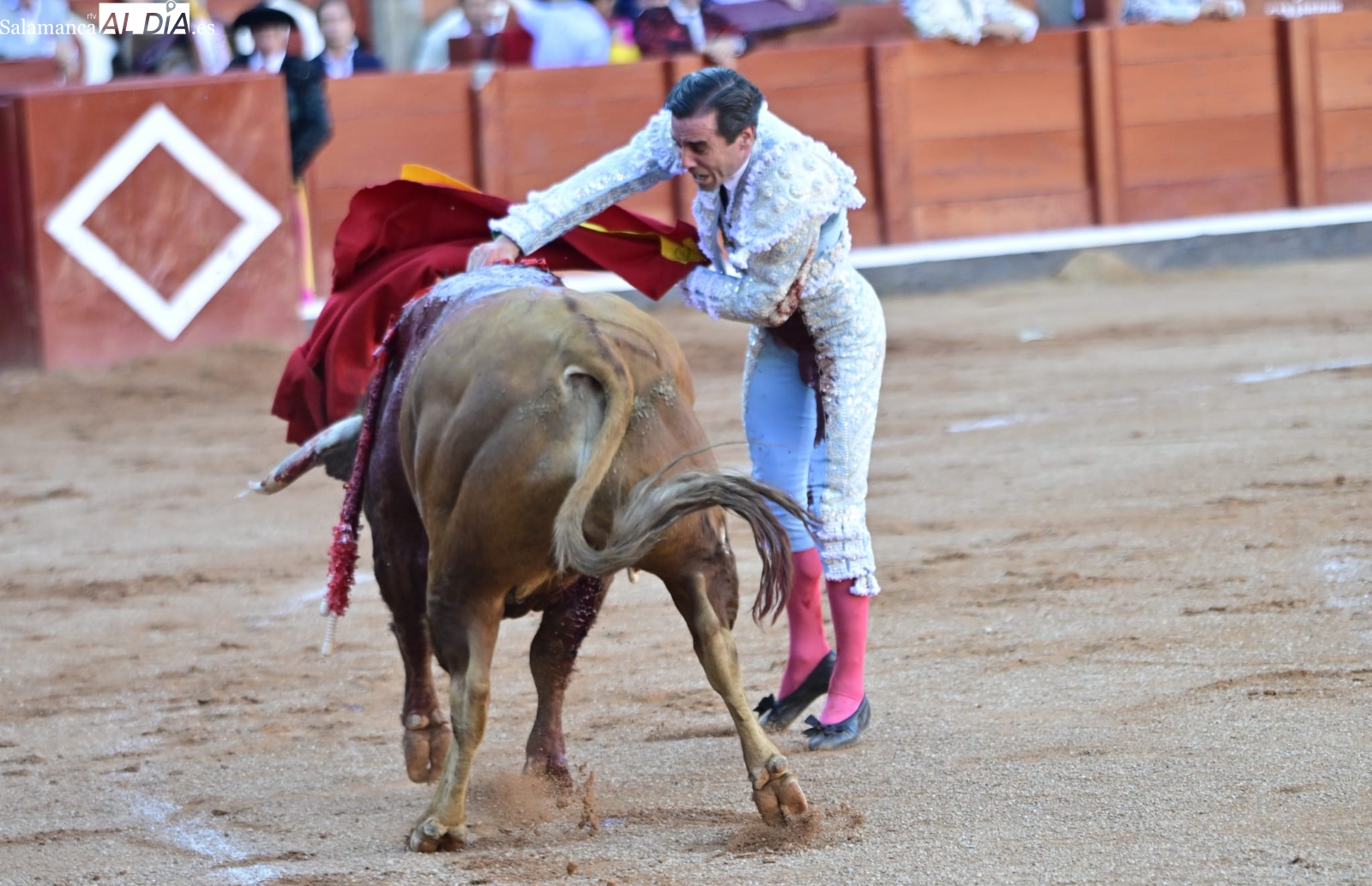 Ese fue el momento álgido de la función. El otro fue la faena de Juan Ortega al segundo de la tarde. Una obra delicada y primorosa frente a una embestida de dulce. Paró el tiempo el trianero en varios muletazos, sobre todo al natural, frente a un 'Afrutado' que fue el toro ideal para Ortega. El inicio de faena, que será recordado durante tiempo, comenzó con la muleta plegada, para dibujar un molinete y seguir toreando con ayudados por abajo antes de un cambio de mano delicatessen. Oreja de peso en su presentación en Salamanca. Frente al quinto dejó detalles en una faena demasiado larga frente al peor del envío de Garcigrande en la que intentó hacer todo siempre con verdad y muy despacio.