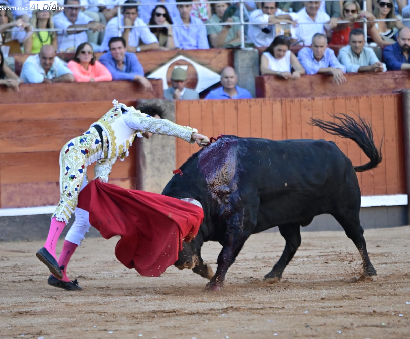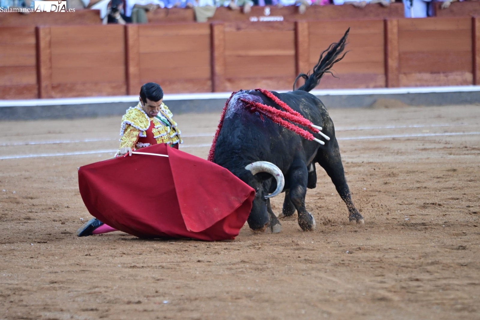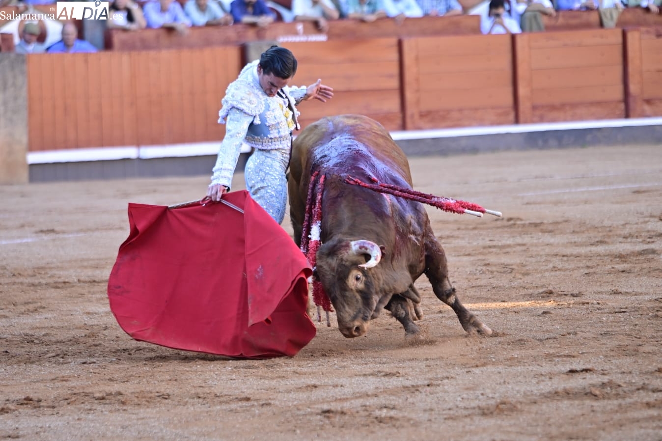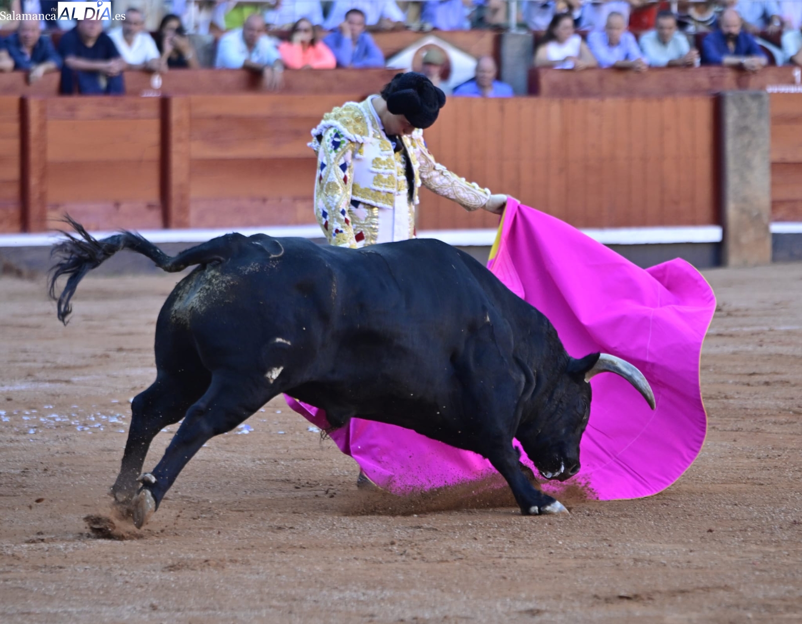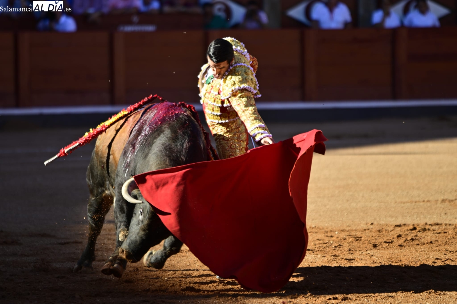 Ese fue el momento álgido de la función. El otro fue la faena de Juan Ortega al segundo de la tarde. Una obra delicada y primorosa frente a una embestida de dulce. Paró el tiempo el trianero en varios muletazos, sobre todo al natural, frente a un 'Afrutado' que fue el toro ideal para Ortega. El inicio de faena, que será recordado durante tiempo, comenzó con la muleta plegada, para dibujar un molinete y seguir toreando con ayudados por abajo antes de un cambio de mano delicatessen. Oreja de peso en su presentación en Salamanca. Frente al quinto dejó detalles en una faena demasiado larga frente al peor del envío de Garcigrande en la que intentó hacer todo siempre con verdad y muy despacio.