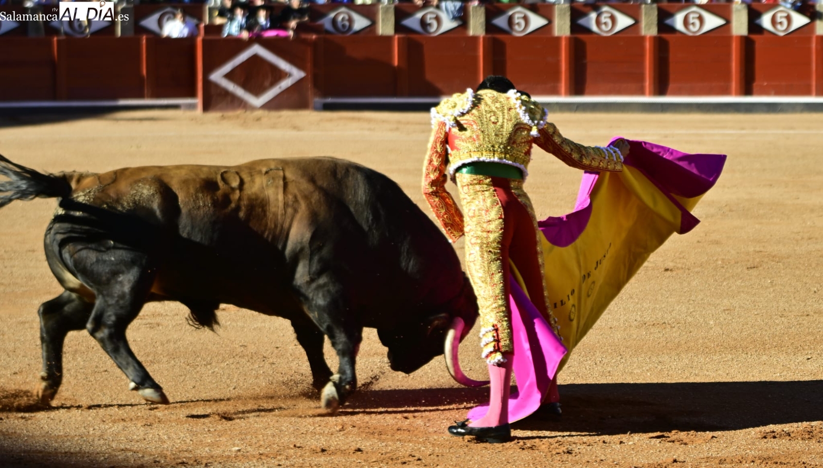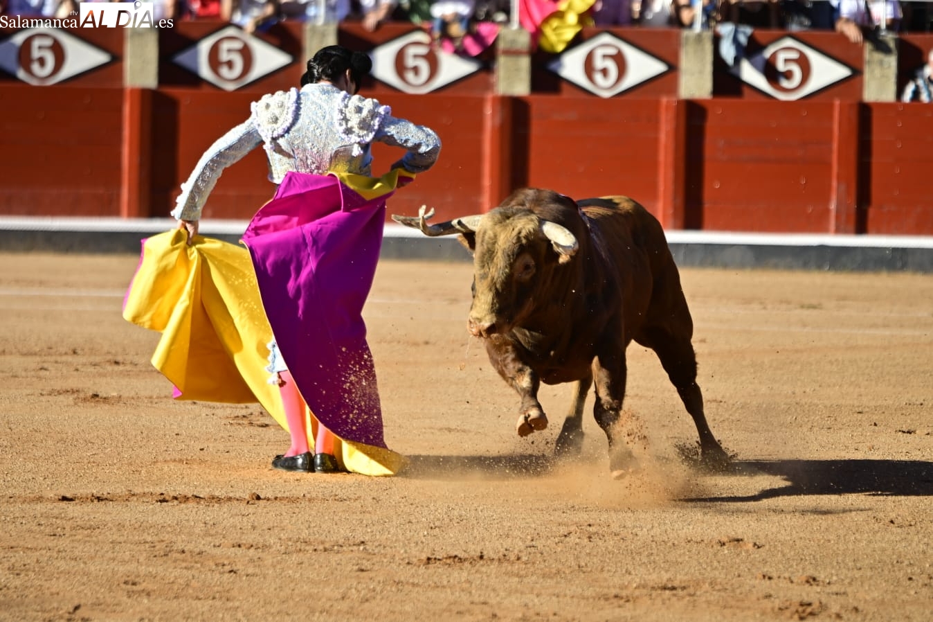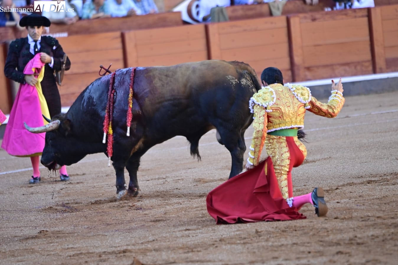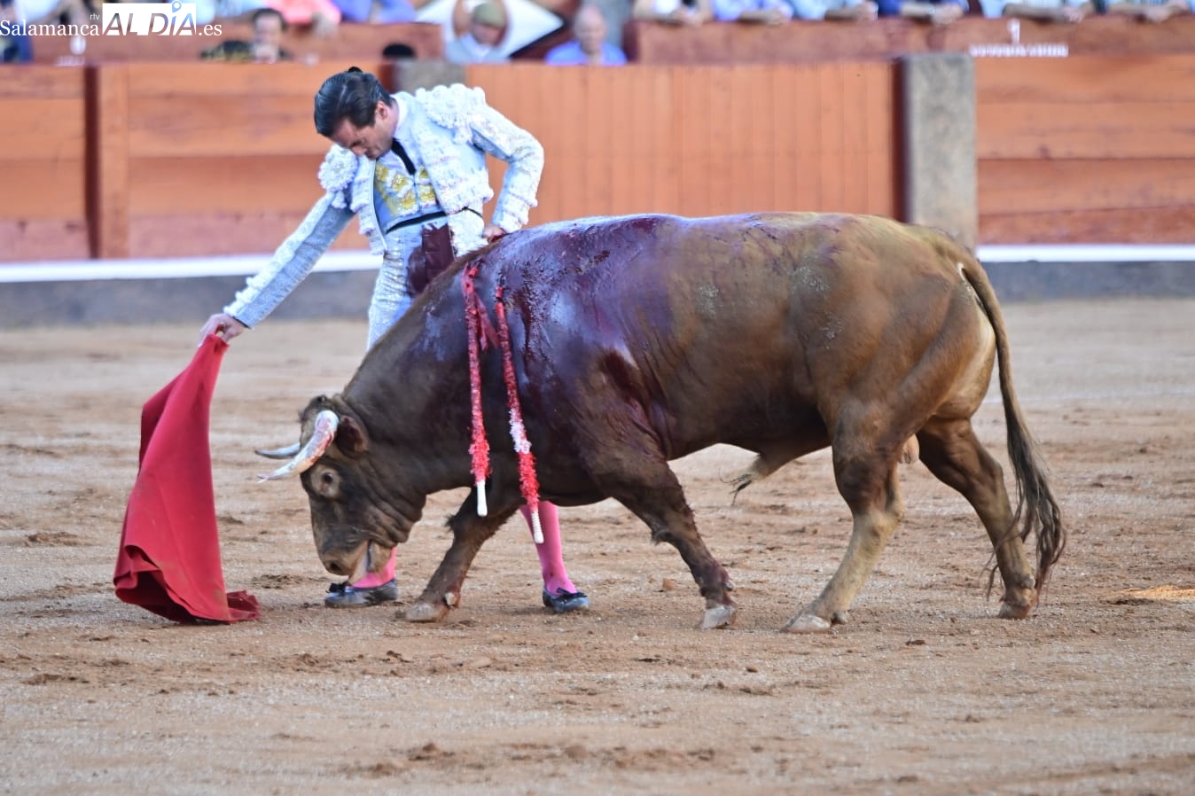 Ese fue el momento álgido de la función. El otro fue la faena de Juan Ortega al segundo de la tarde. Una obra delicada y primorosa frente a una embestida de dulce. Paró el tiempo el trianero en varios muletazos, sobre todo al natural, frente a un 'Afrutado' que fue el toro ideal para Ortega. El inicio de faena, que será recordado durante tiempo, comenzó con la muleta plegada, para dibujar un molinete y seguir toreando con ayudados por abajo antes de un cambio de mano delicatessen. Oreja de peso en su presentación en Salamanca. Frente al quinto dejó detalles en una faena demasiado larga frente al peor del envío de Garcigrande en la que intentó hacer todo siempre con verdad y muy despacio.