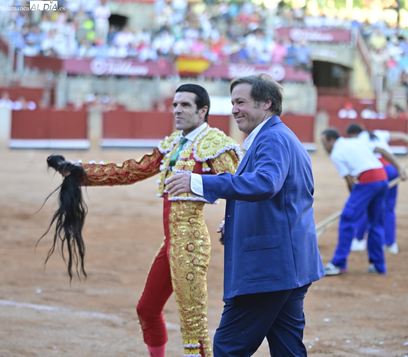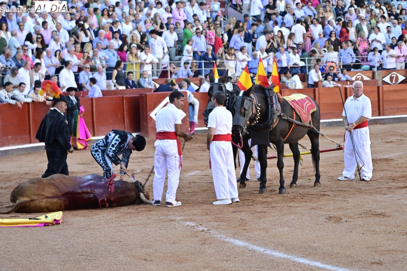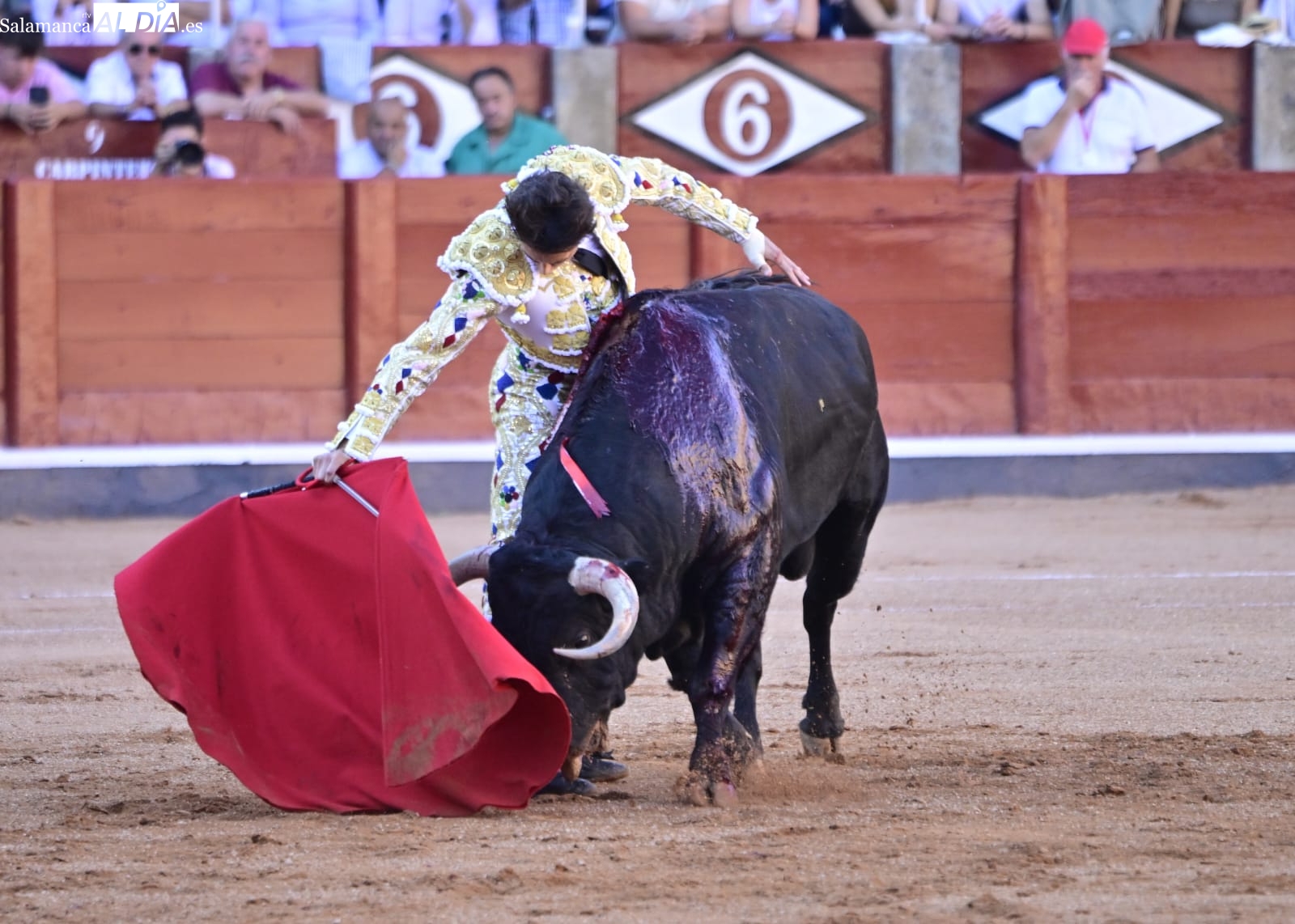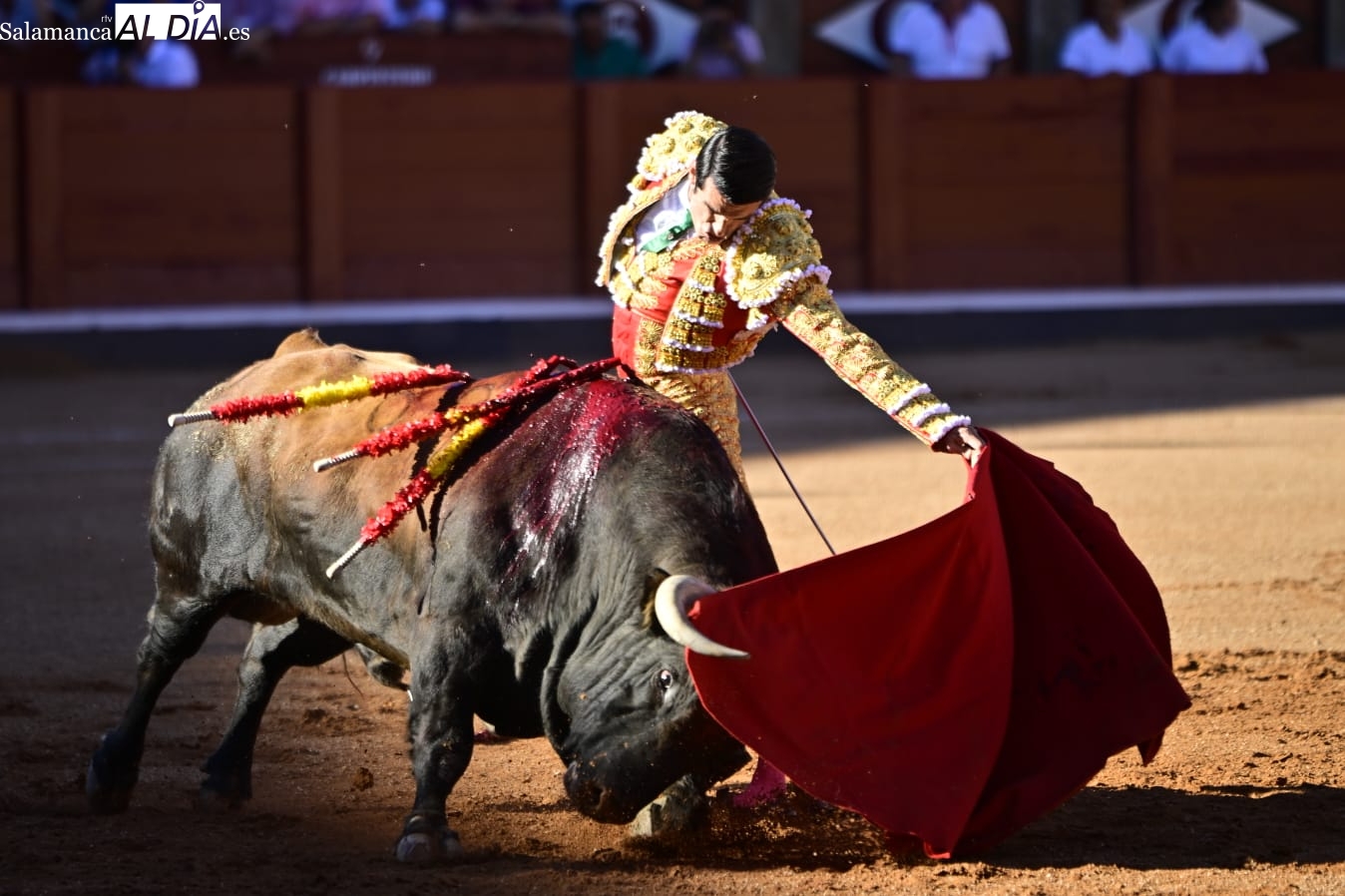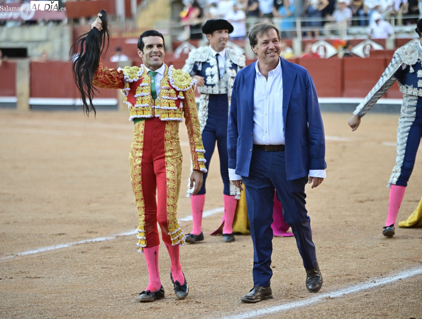 Ese fue el momento álgido de la función. El otro fue la faena de Juan Ortega al segundo de la tarde. Una obra delicada y primorosa frente a una embestida de dulce. Paró el tiempo el trianero en varios muletazos, sobre todo al natural, frente a un 'Afrutado' que fue el toro ideal para Ortega. El inicio de faena, que será recordado durante tiempo, comenzó con la muleta plegada, para dibujar un molinete y seguir toreando con ayudados por abajo antes de un cambio de mano delicatessen. Oreja de peso en su presentación en Salamanca. Frente al quinto dejó detalles en una faena demasiado larga frente al peor del envío de Garcigrande en la que intentó hacer todo siempre con verdad y muy despacio.